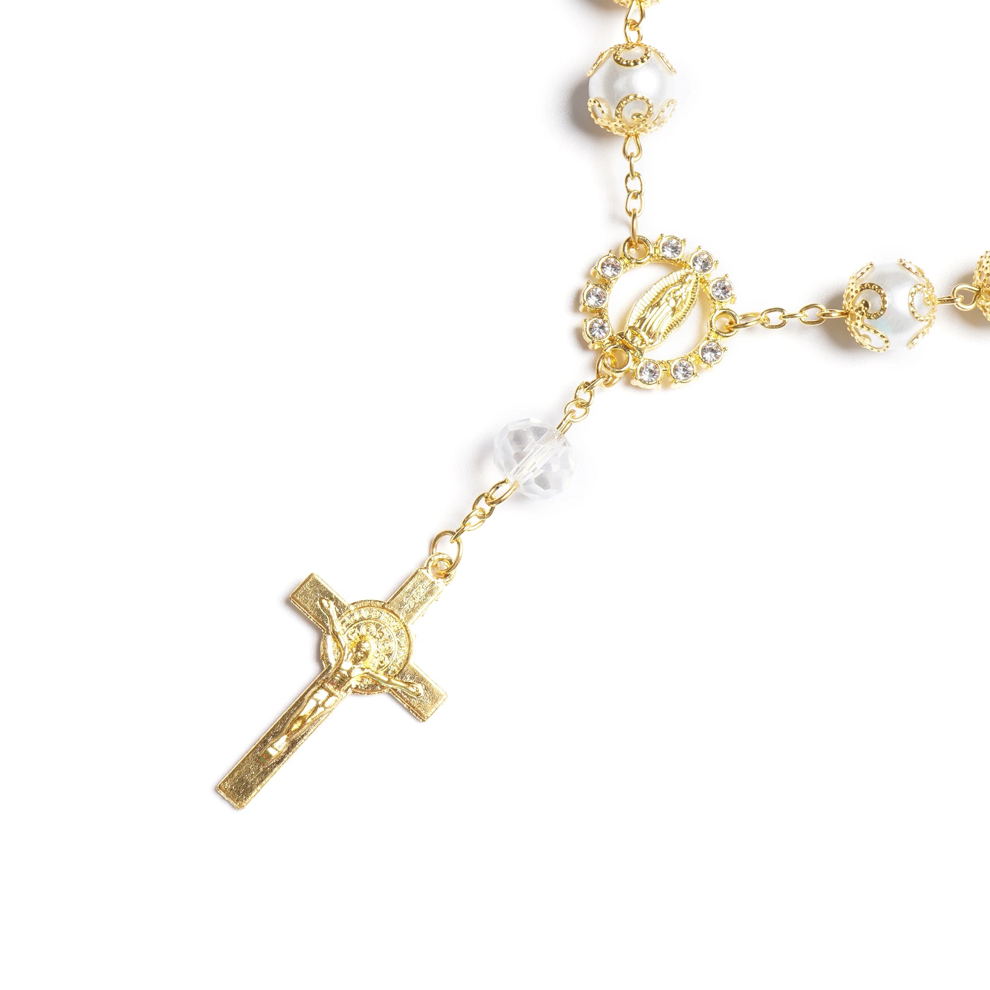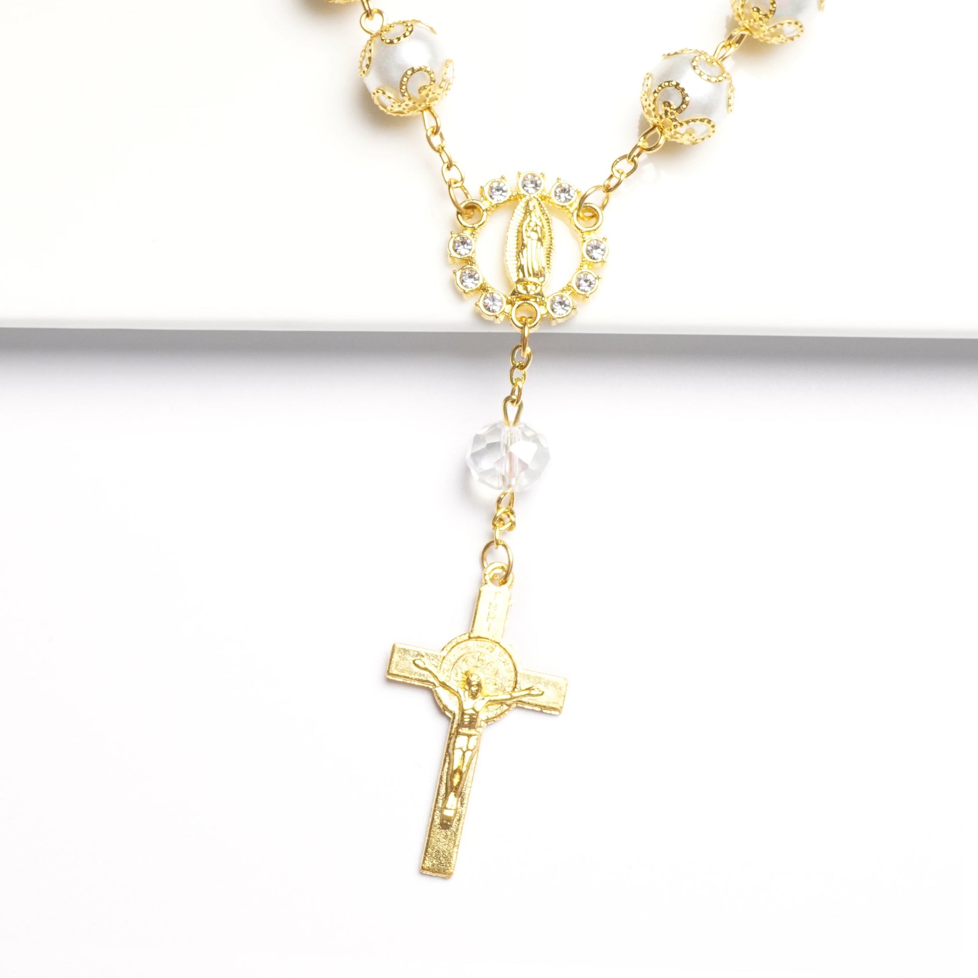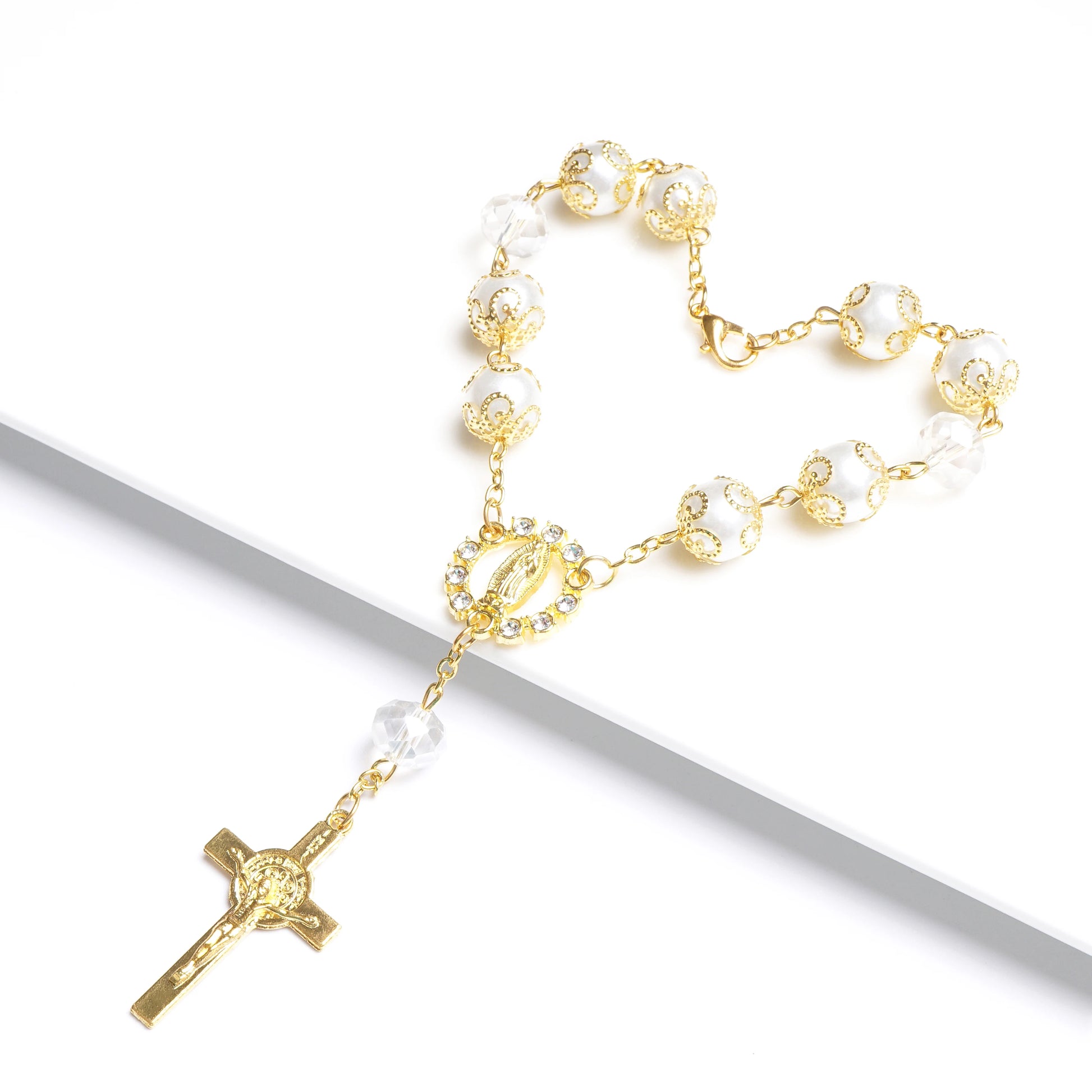 12 Pcs Pearl Bracelets Rosary for Girls Boys with Our Lady of Guadalupe Catholic Baptism Communion Christening