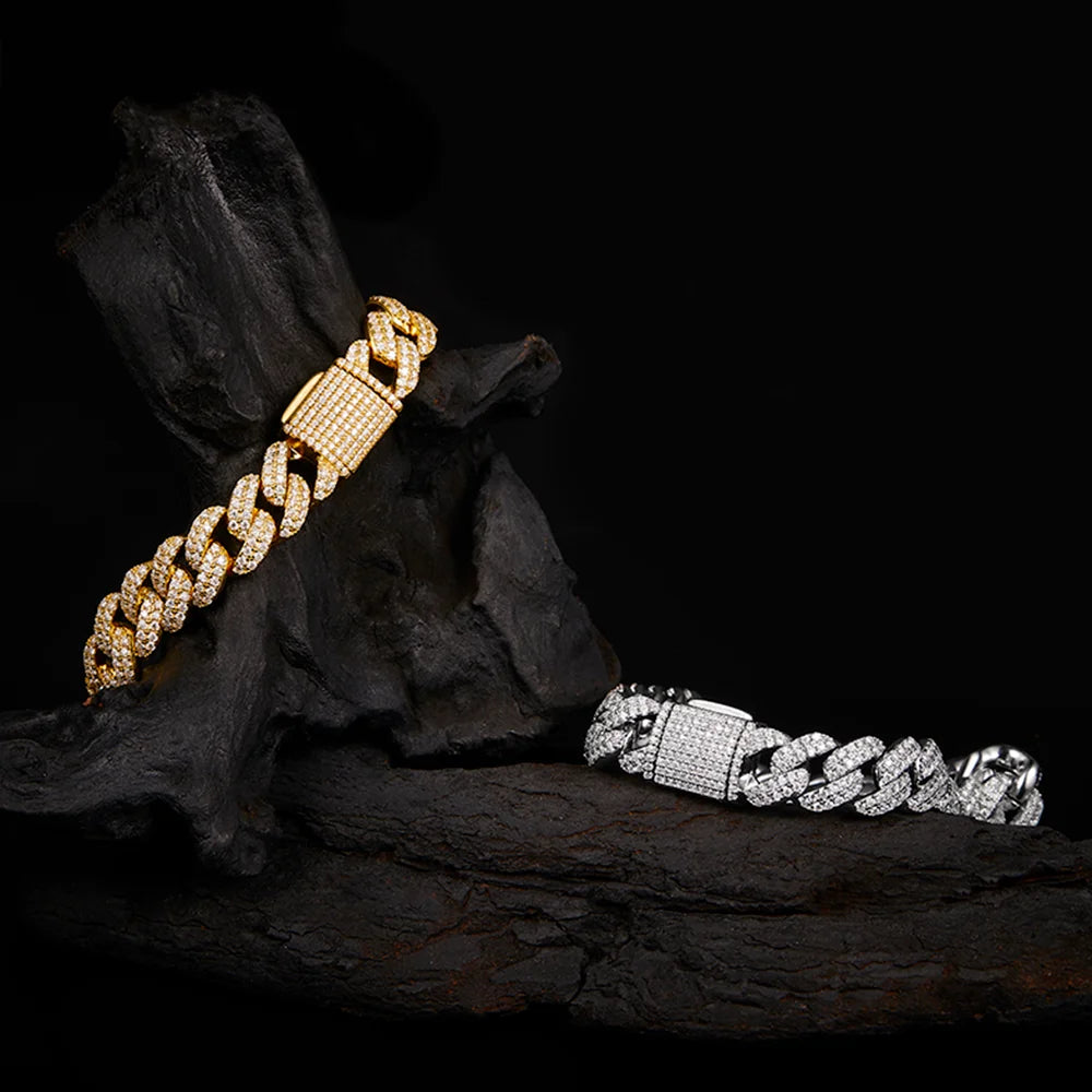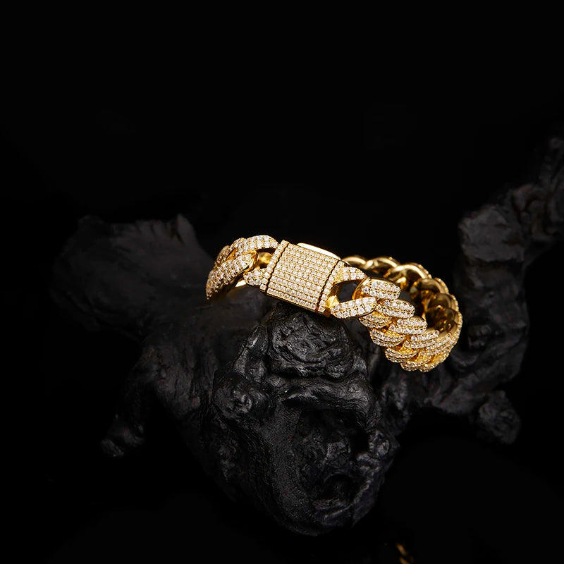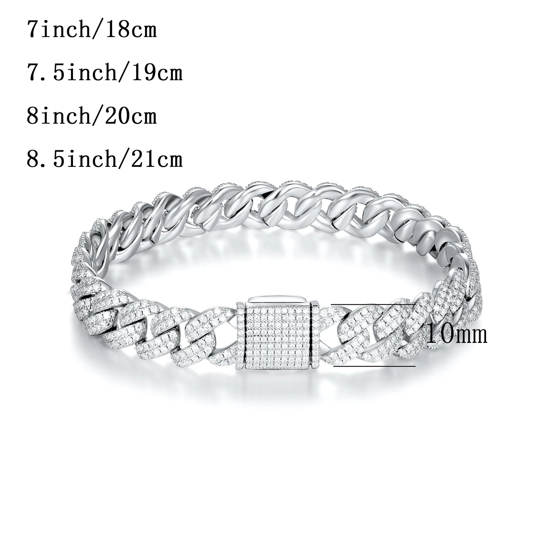 1pc S925 Sterling Silver with 10.4CT-15.3CT Moissanite Cuban Bracelet for Men and Women, Silver Weight: 32.4g | Gemstone Jewelry