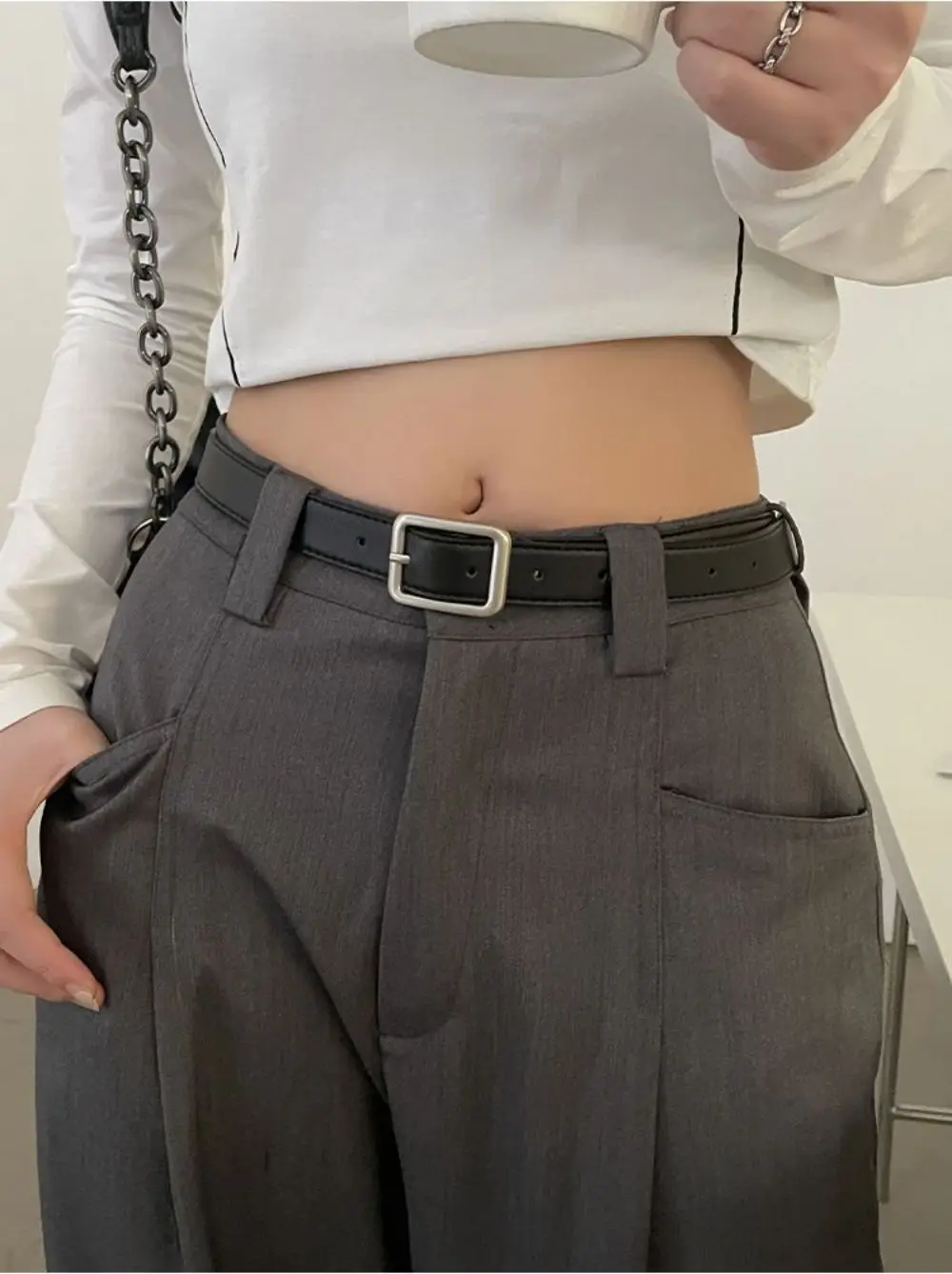1pc Women's Belt Trendy Square Buckle Belt High End Genuine Soft PU Leather Belt Paired with Skirt Work Pants Jeans Belt Unisex