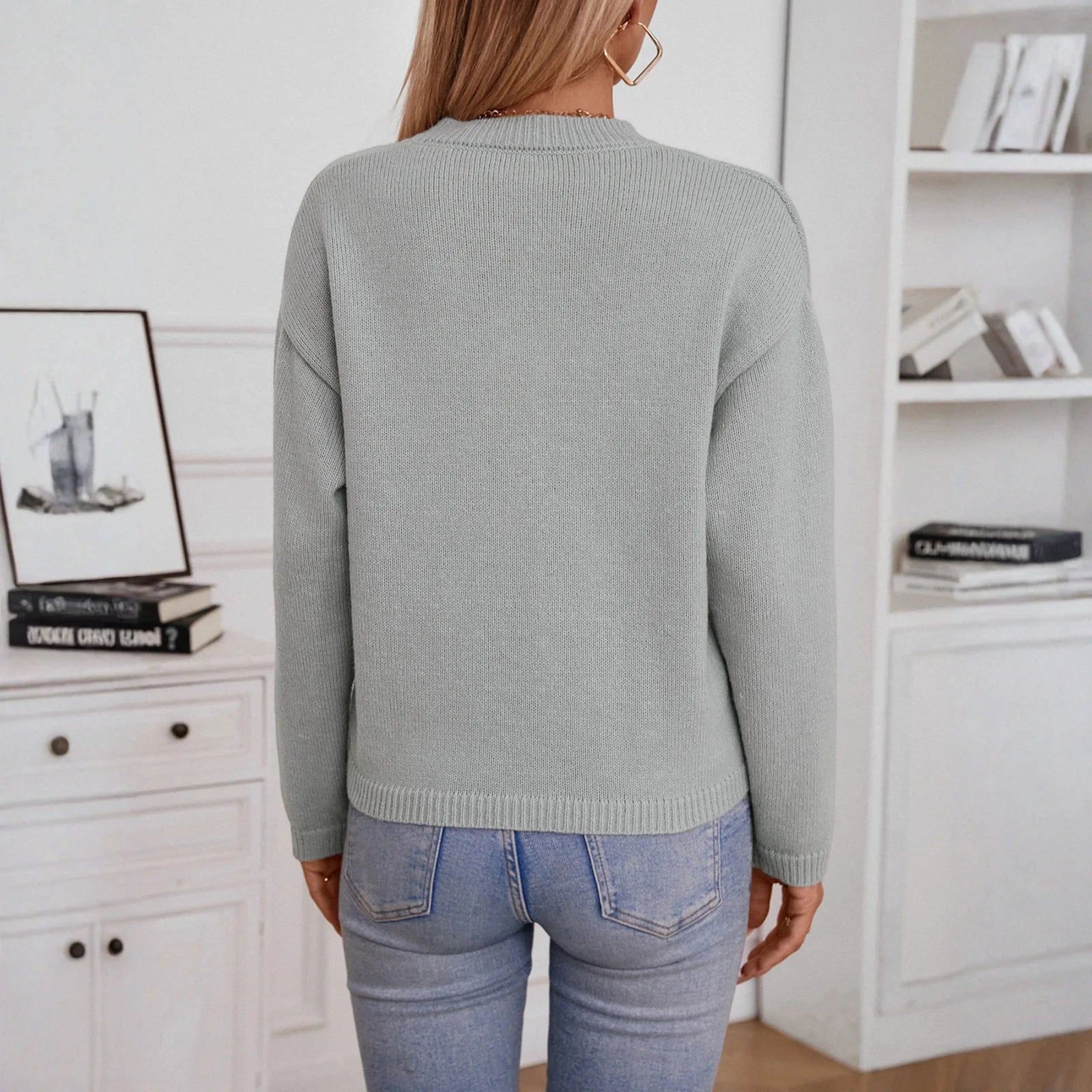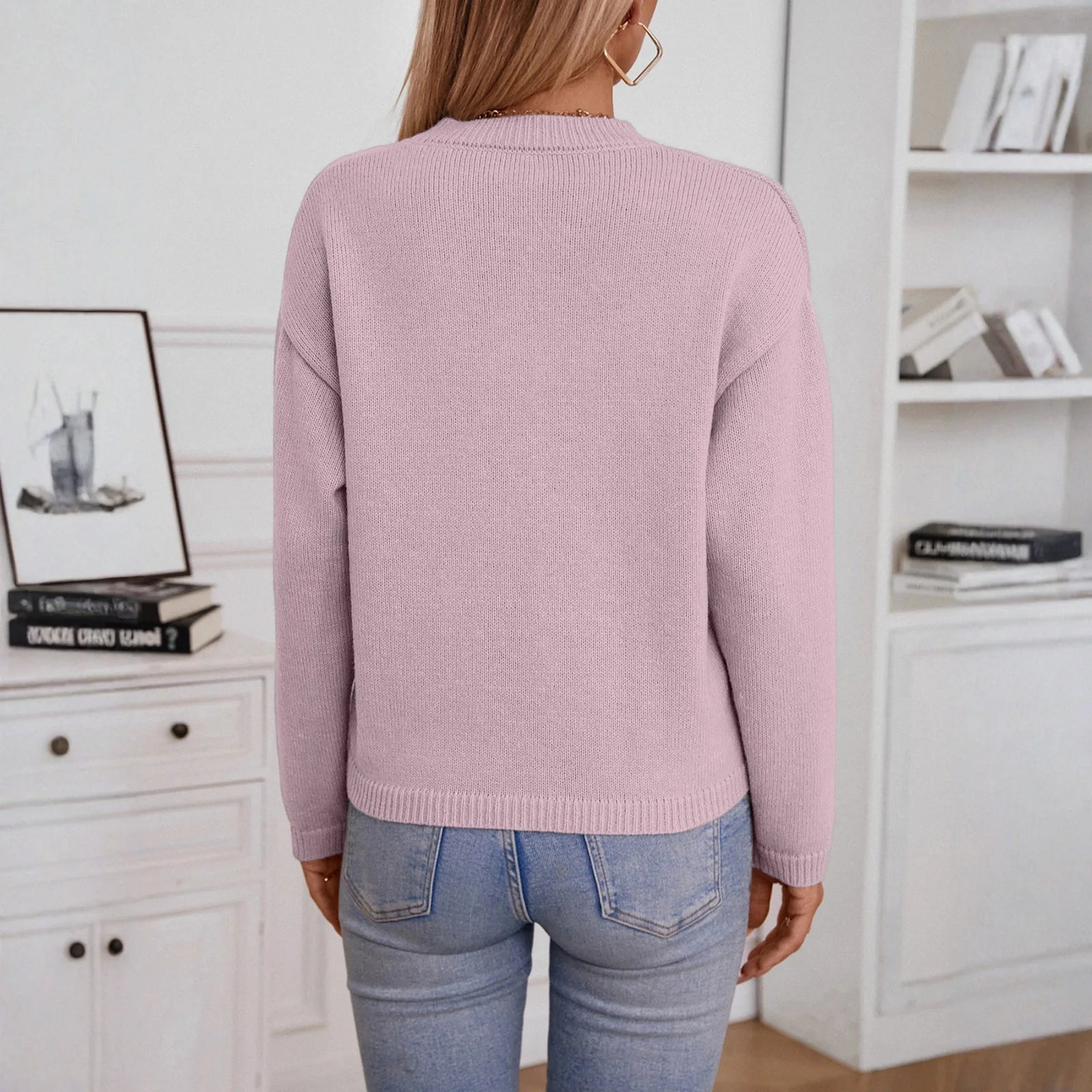 2025 Women'S Fashionable Casual Loose Open Collar Knitted Sweater Long Sleeved Comfortable Pocket Sweater Pullover Sweater