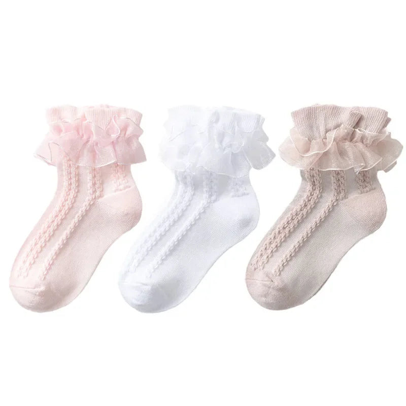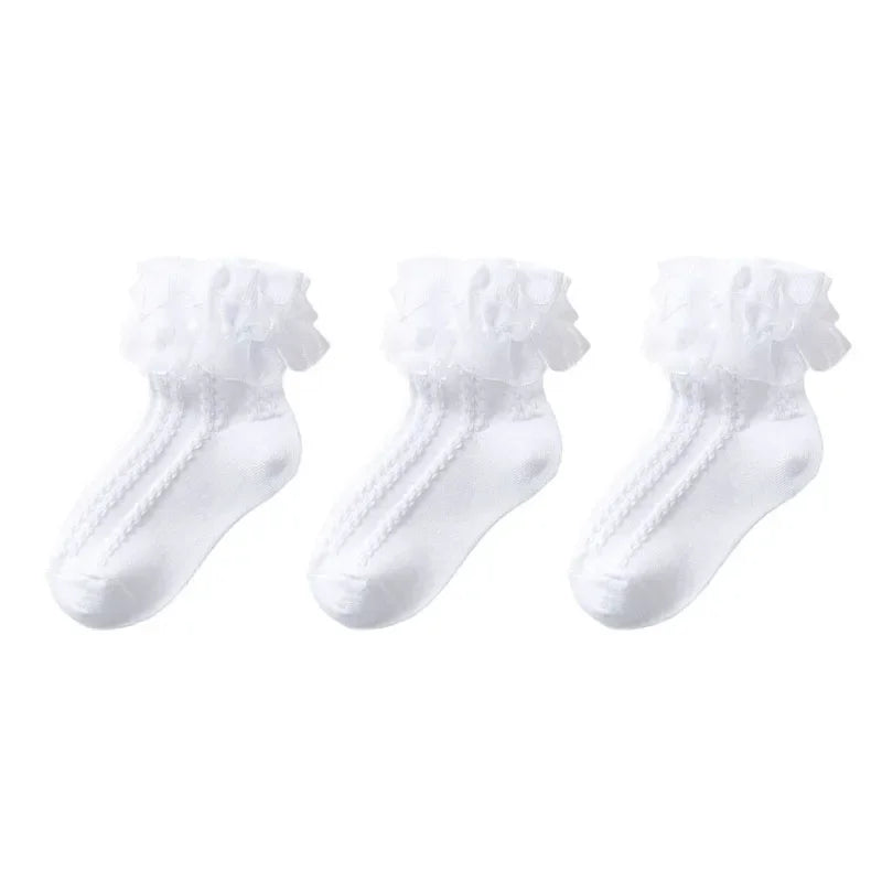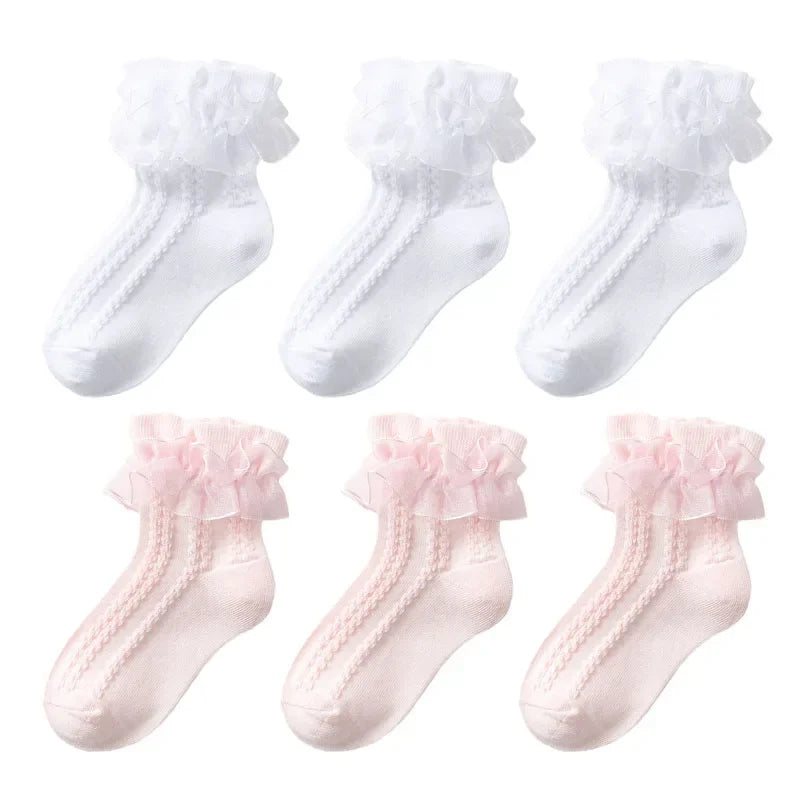 3/6 Pairs Girls Lace Ruffle Socks Cotton Breathable Comfy Adorable Princess-Style Kids Dance-Ready Socks with Frilly Trim