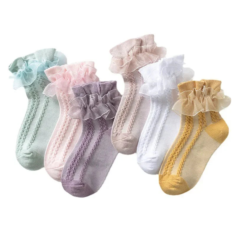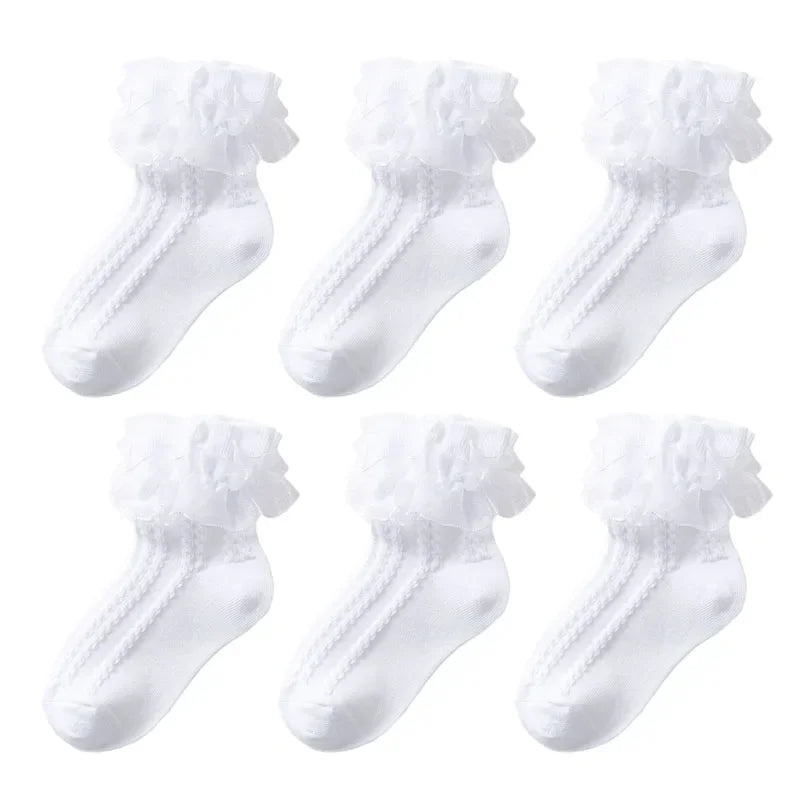 3/6 Pairs Girls Lace Ruffle Socks Cotton Breathable Comfy Adorable Princess-Style Kids Dance-Ready Socks with Frilly Trim