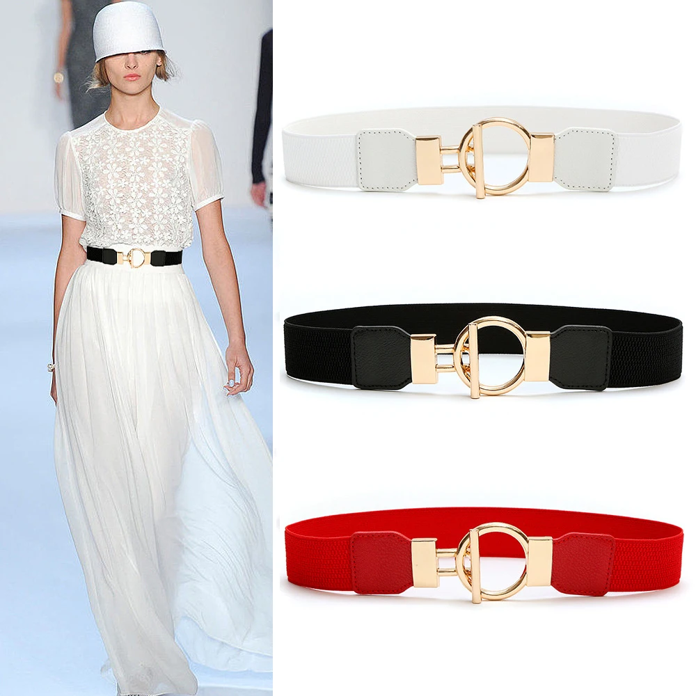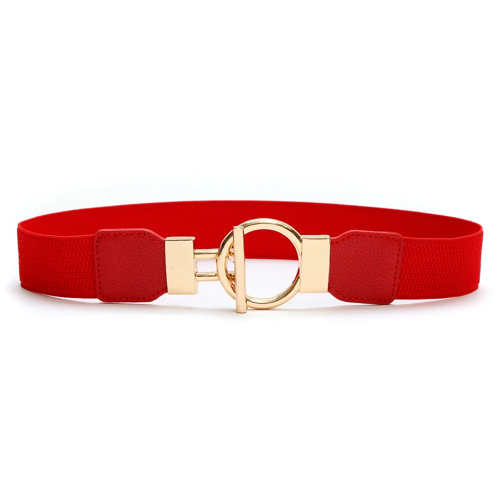 3 Pieces Women Waistbands Fashionable Elastic Cummerbunds with Metal Buckle Red Black Brown Color
