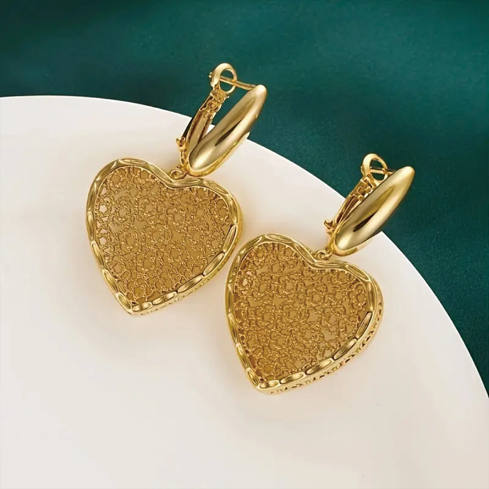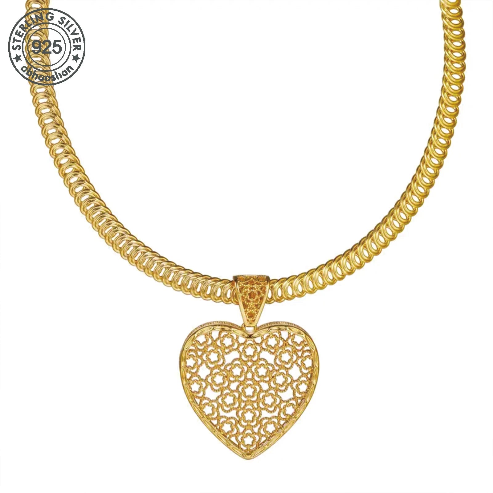 925 Silver, 2 Piece Elegant 18K Gold Plated Jewellery Set - Boho Chic Heart Pendant Necklace and Matching Earrings, Anti-Allergy