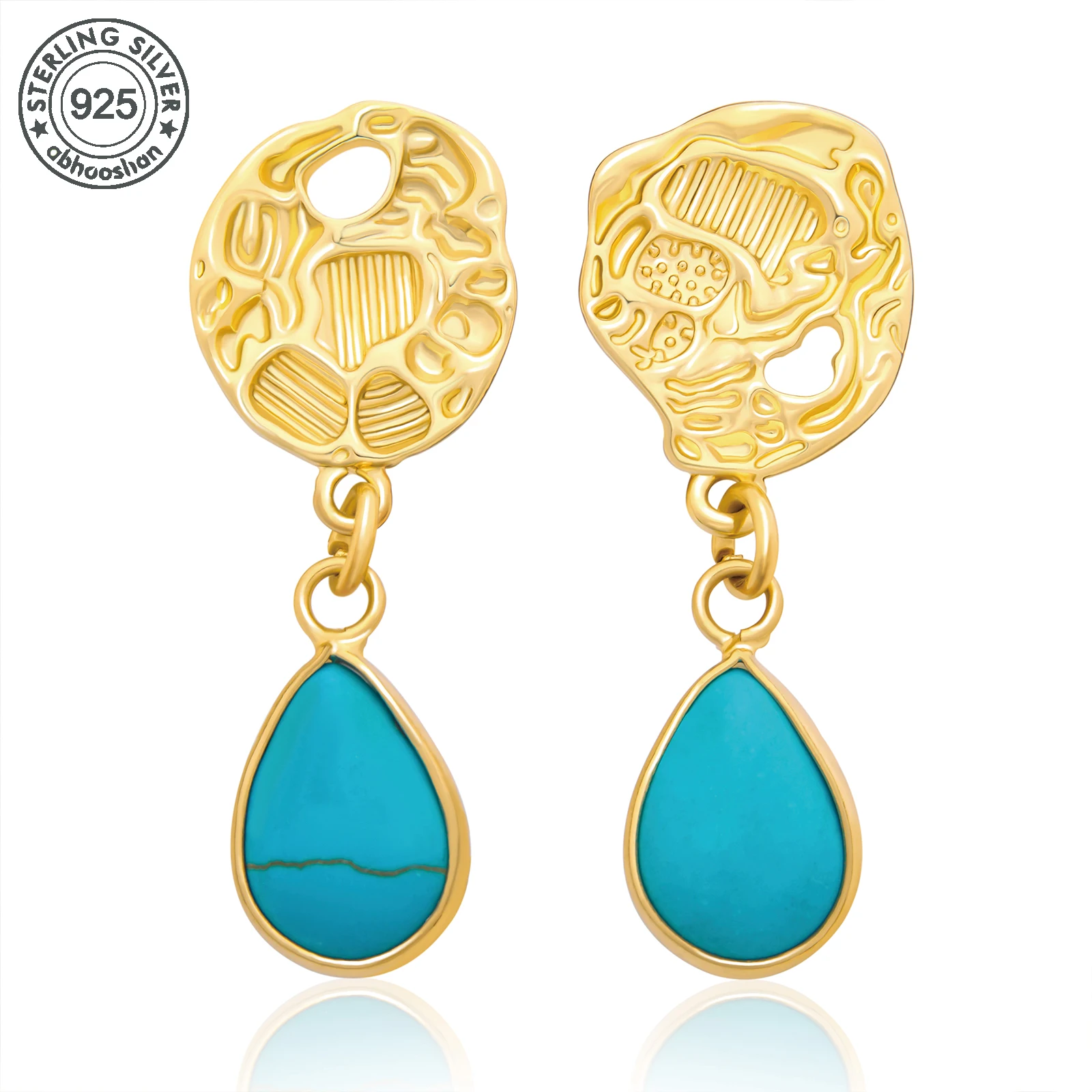 925 Silver, Teardrop Turquoise Earrings, Women's Earrings with Teardrop Turquoise, For Girls, Fashion, Luxury, Daily Wear, Datin