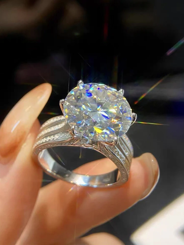 A luxurious 5-carat moissanite ring set with 18K white gold and 925 silver, perfect for a holiday gift.
