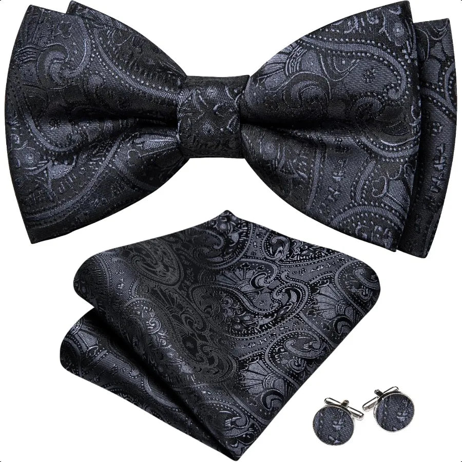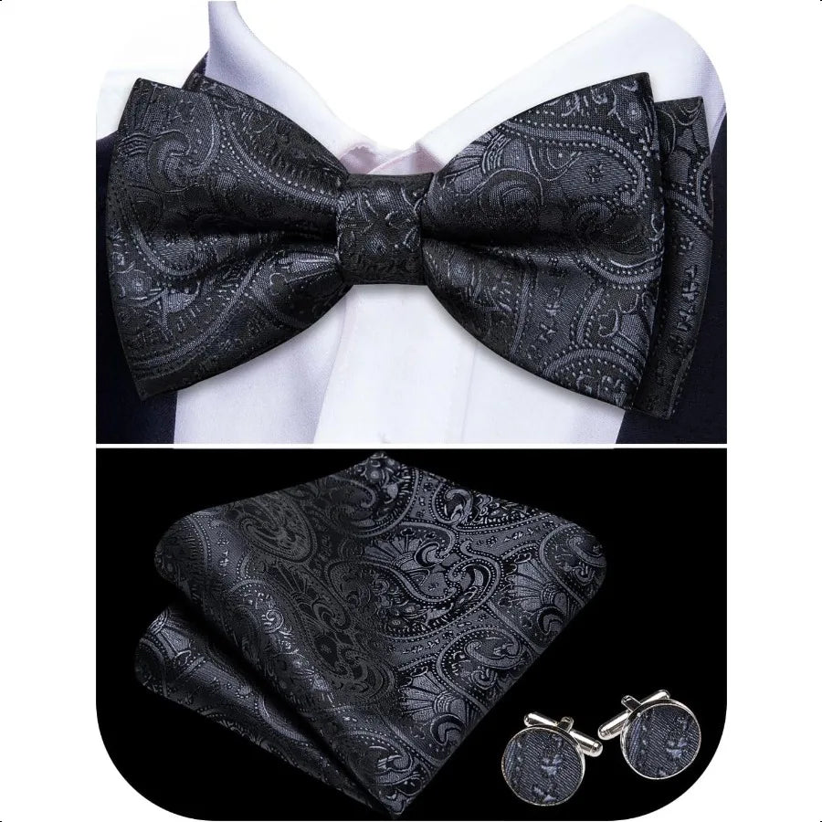 Barry.Wang Paisley Striped Bow Tie for Men Silk PreTied Bowtie Pocket Square Cufflinks Set Formal Wedding Party Prom