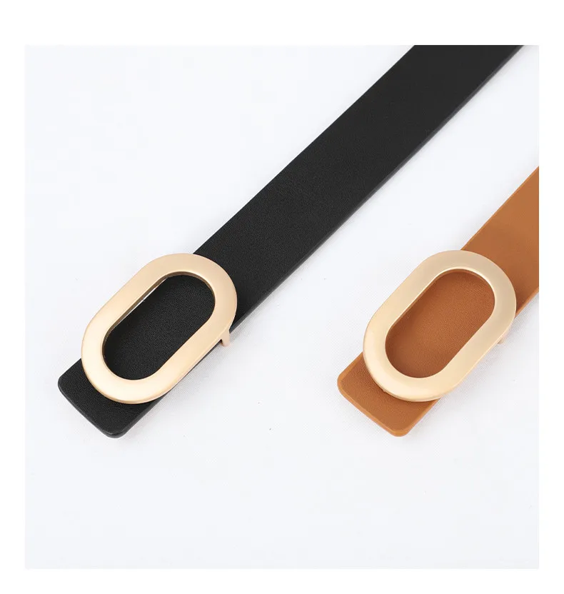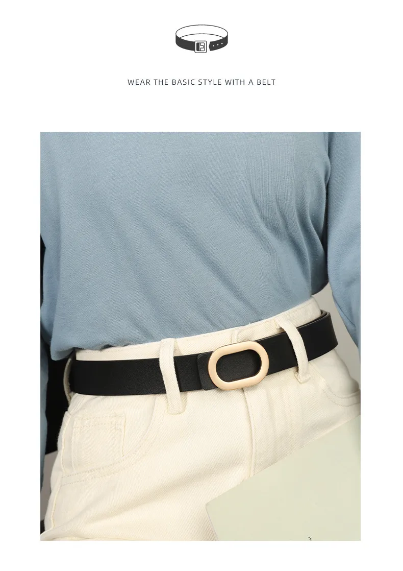 Belt For Women Round Square Buckle Pin Buckle Jeans Black Belt Chic Luxury Brand Designer Leather Belt Female