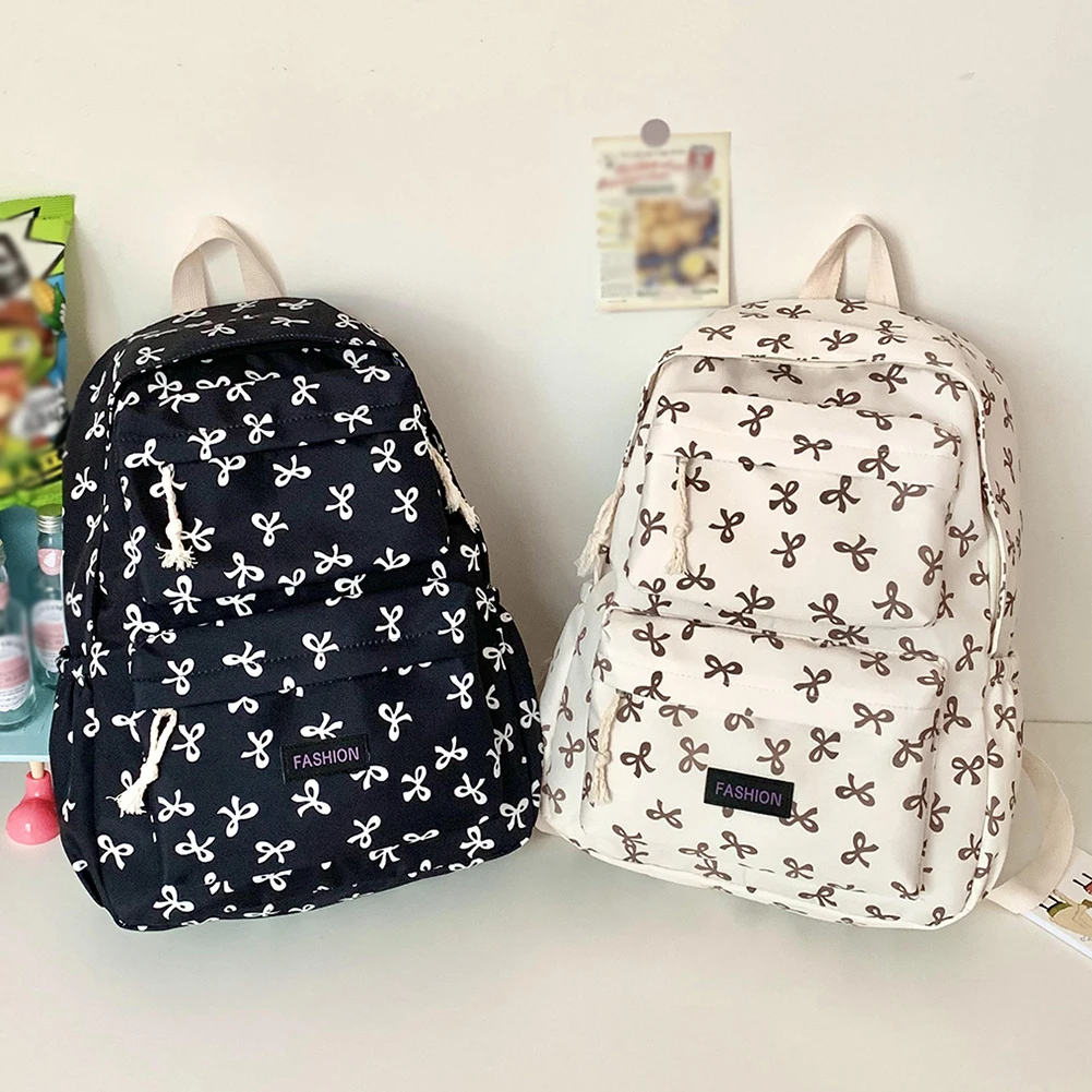Bow Print School Backpack Preppy College Backpack Middle School Bag for Teen Girls