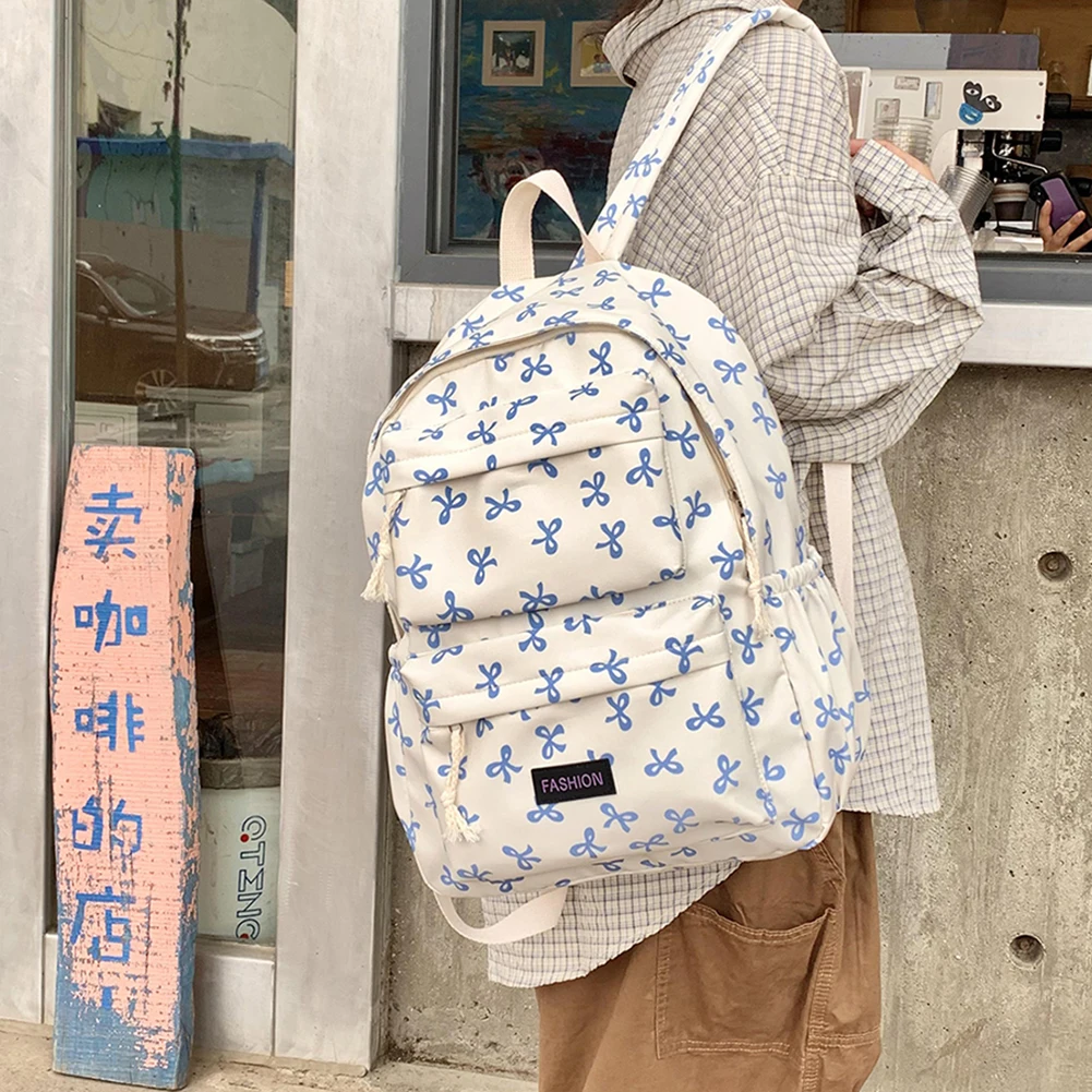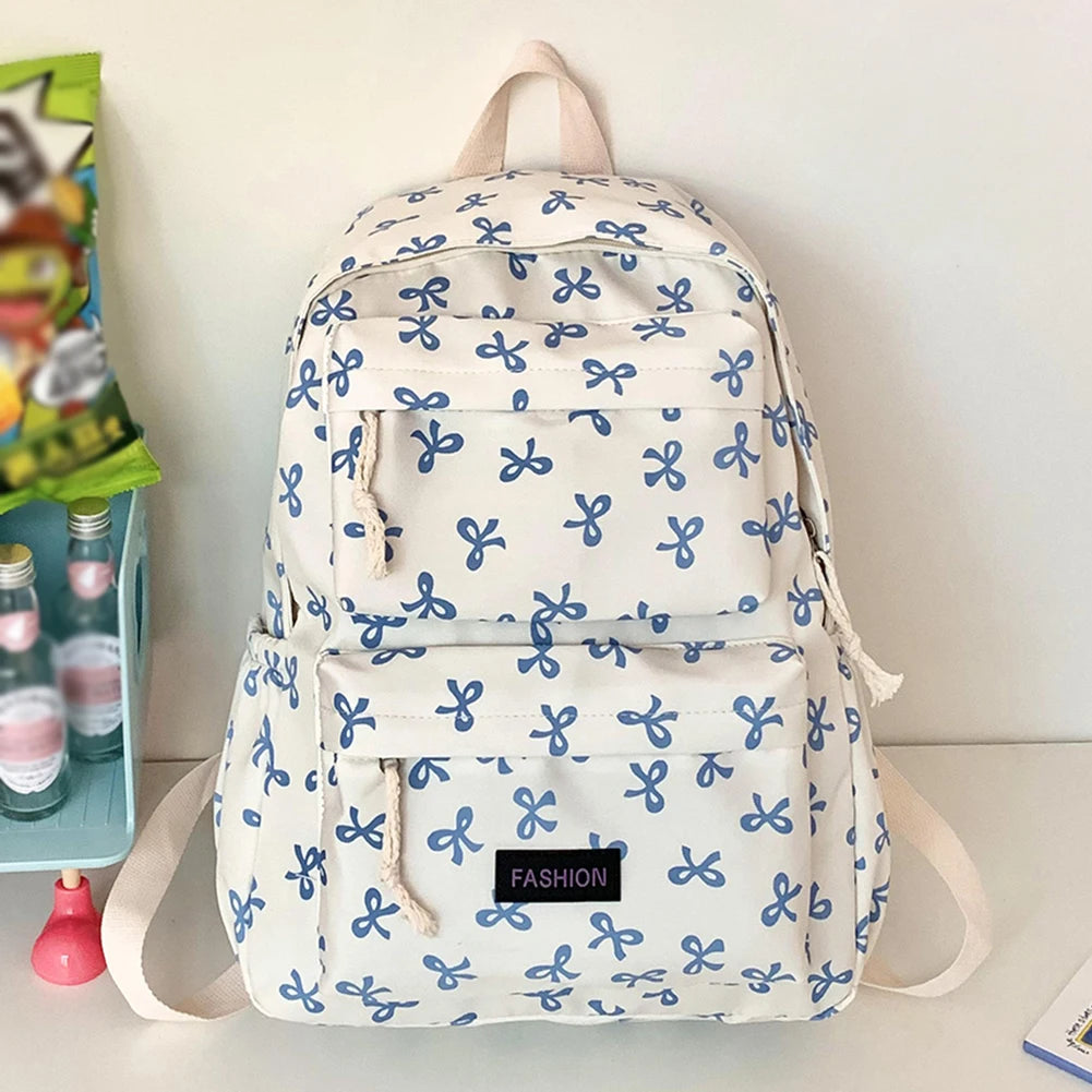 Bow Print Bookbag Preppy Travel Daypack Middle School Bag for Teen Girls