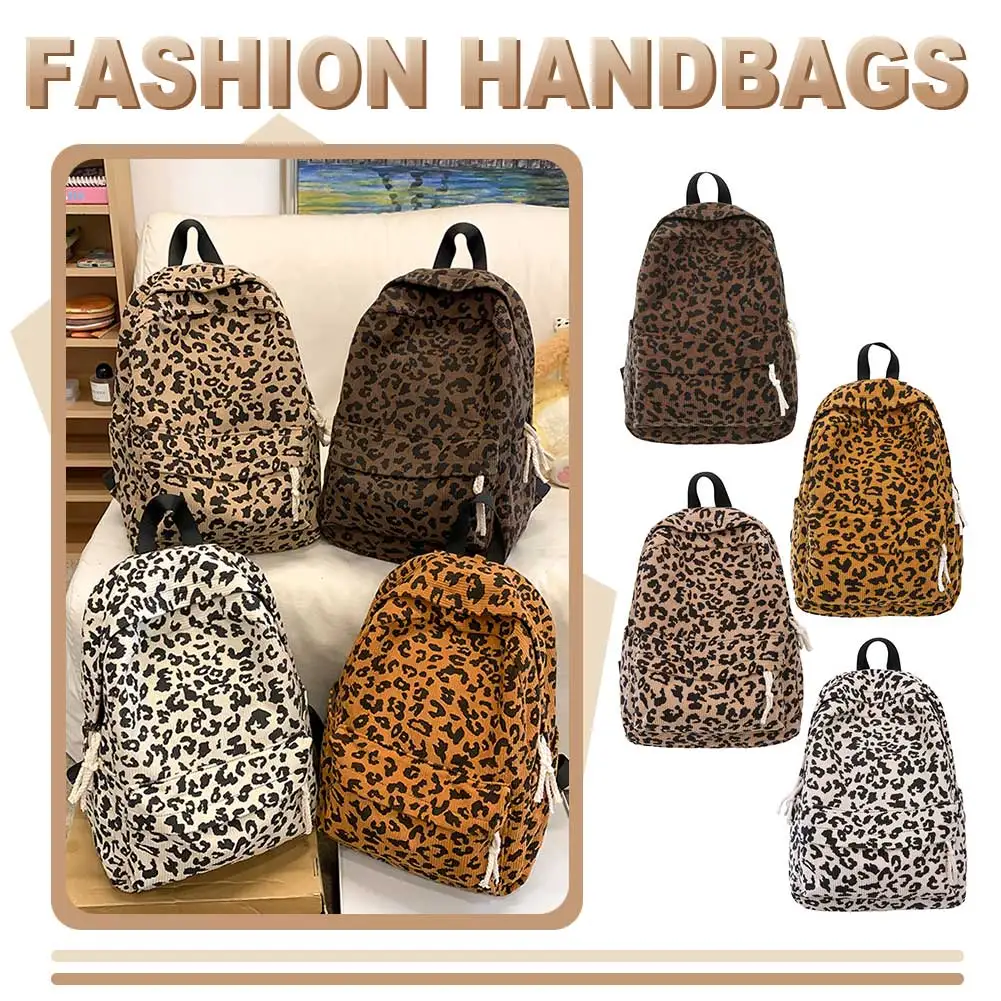 Corduroy Leopard Backpack Teenagers School Bag Large Capacity Casual Laptop Backpack Fashion Students Bookbag Outdoor Travel Bag