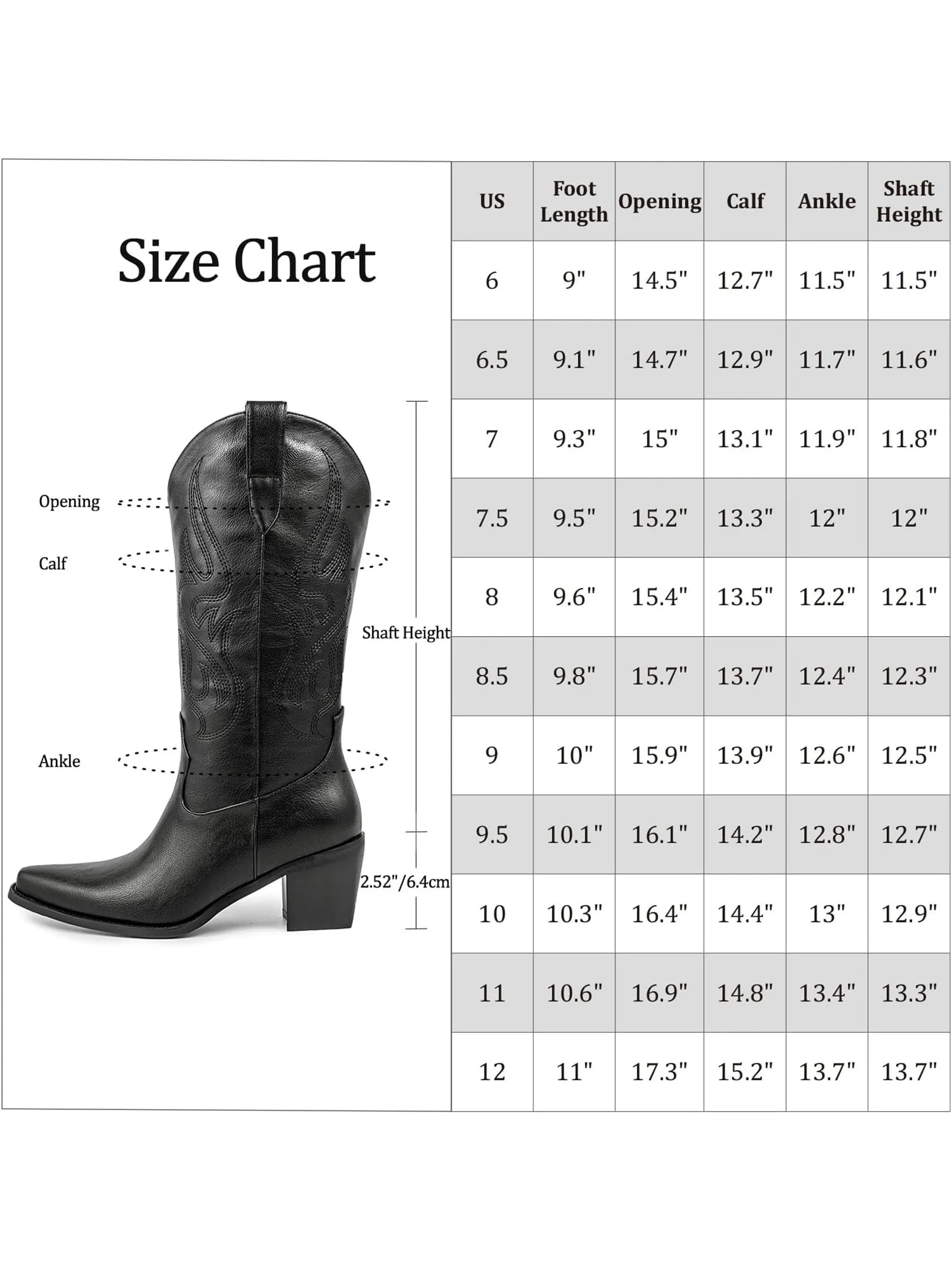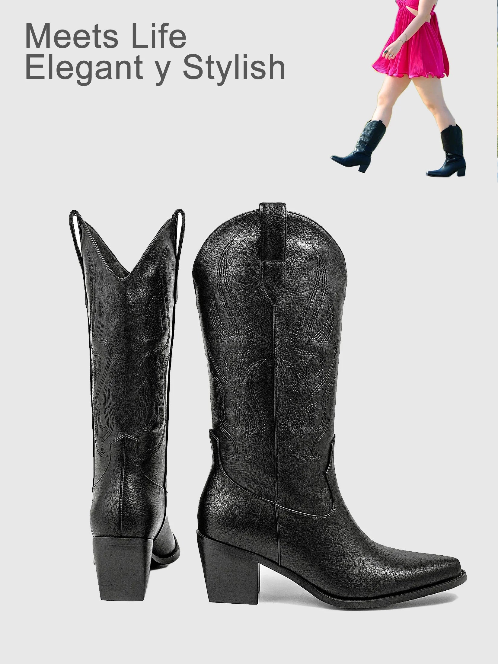 Cowboy Boots for Women - Cowgirl Western Mid Calf Boots with Embroidery, Pointed Toe Retro Chunky Heel Slip On Fashion Classic S