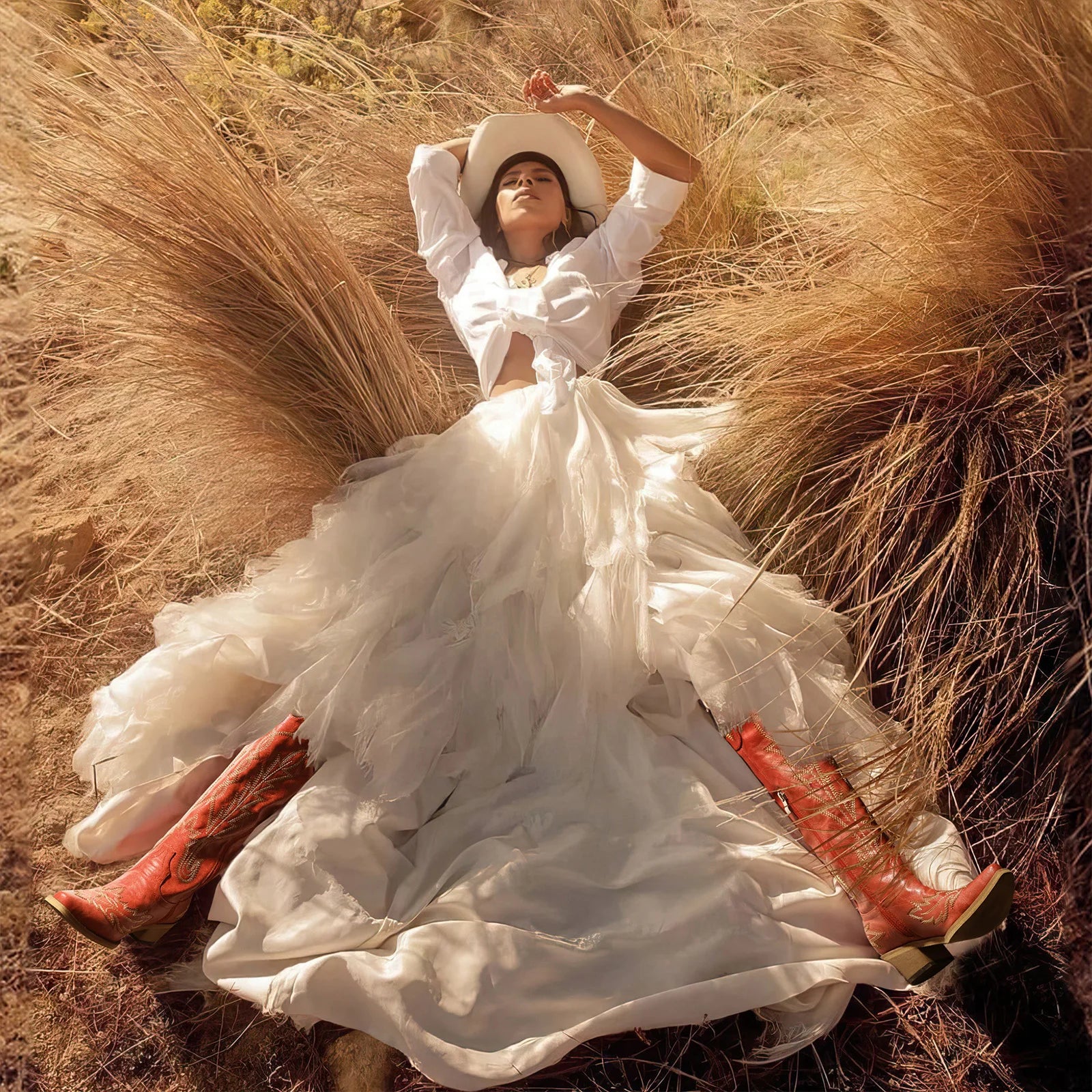 Cowboy Boots for Women - Knee High Embroidered Western Cowgirl Boots, Pointed Toe Chunky Heel Retro Country Boots, Red