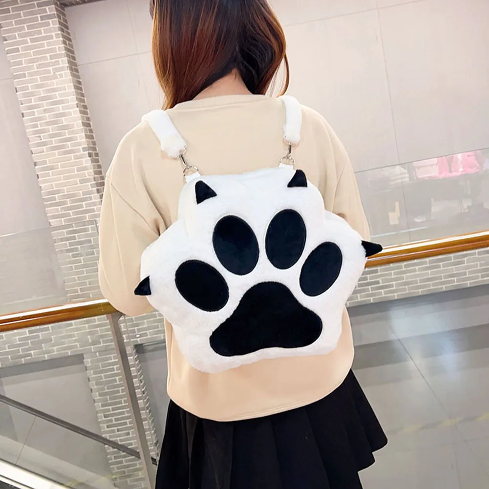 Cute Cat Paw Soft Furry Purse with Adjustable Straps Sweet School Bag with Zipper JK Girls Bag Cartoon Backpack for Women Girls