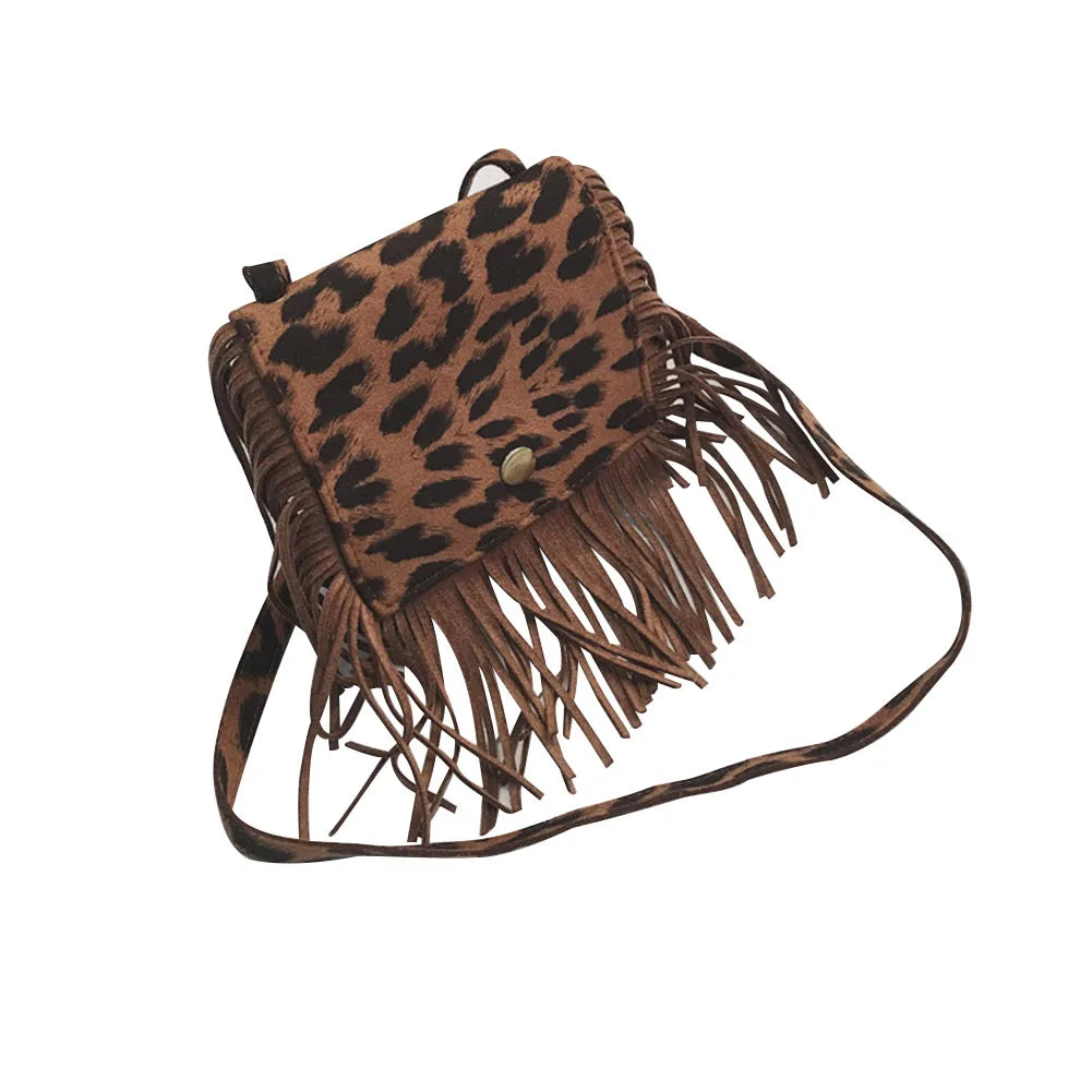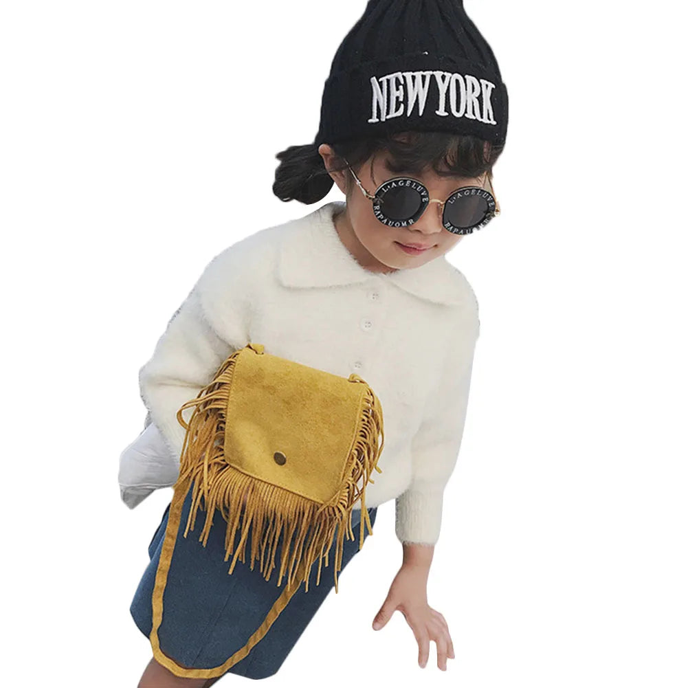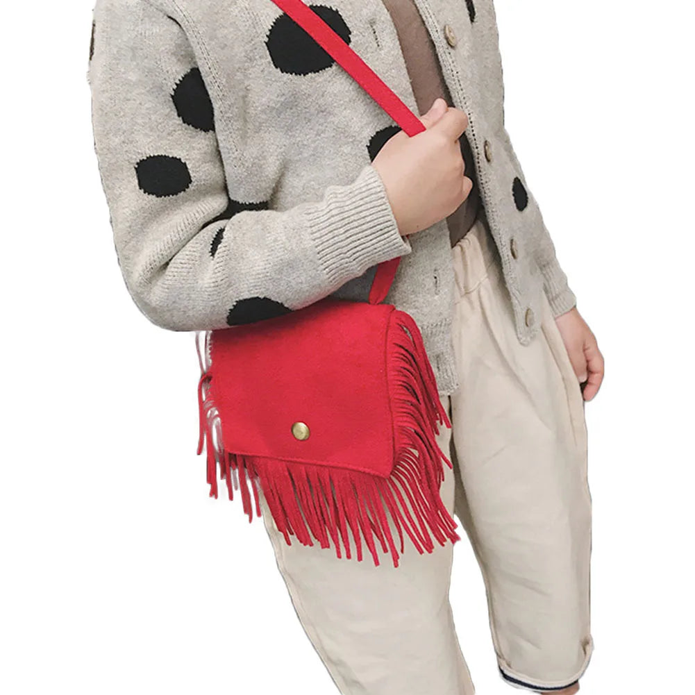 Baby Girls Small Square Bag, Solid Color/Leopard Printed Cross Body Shoulder Bag with TasselsMaintenance Method: