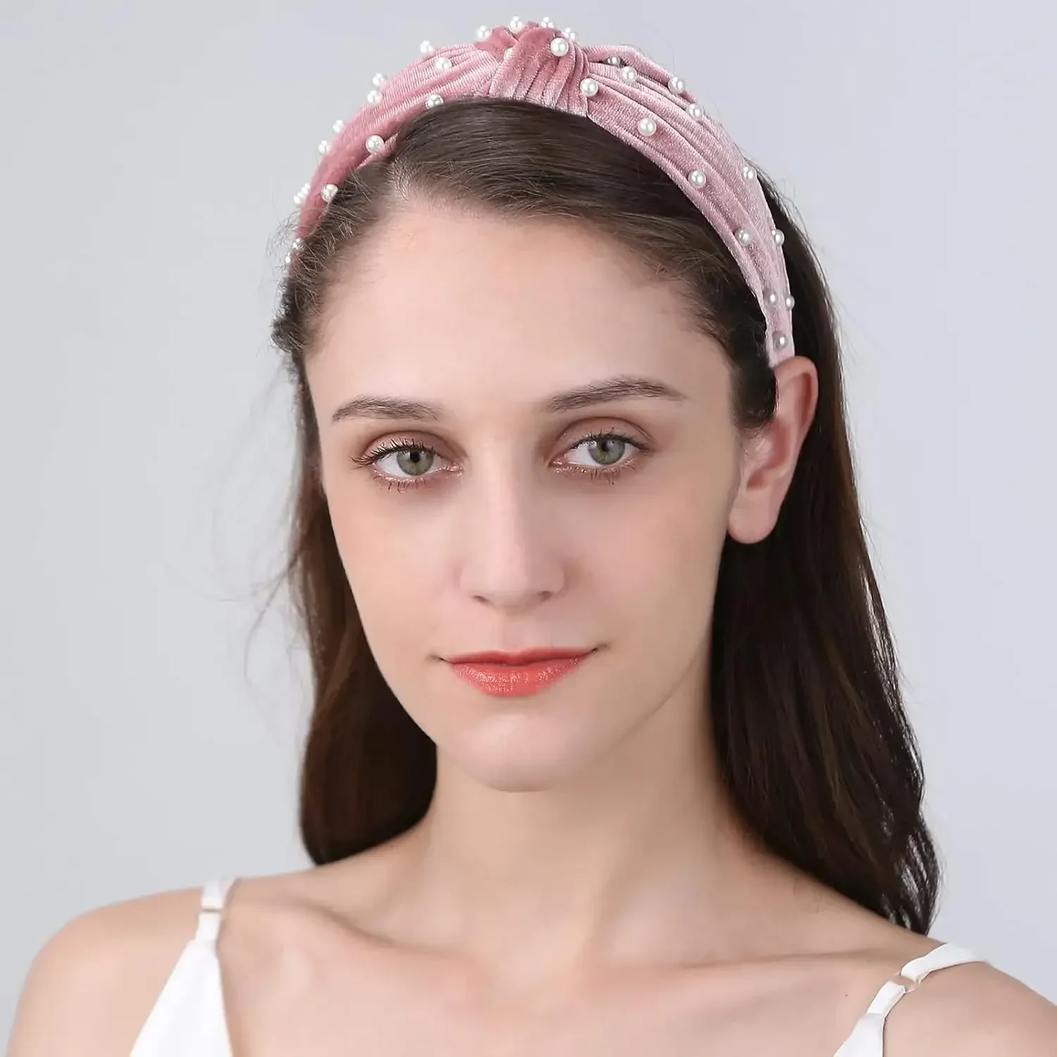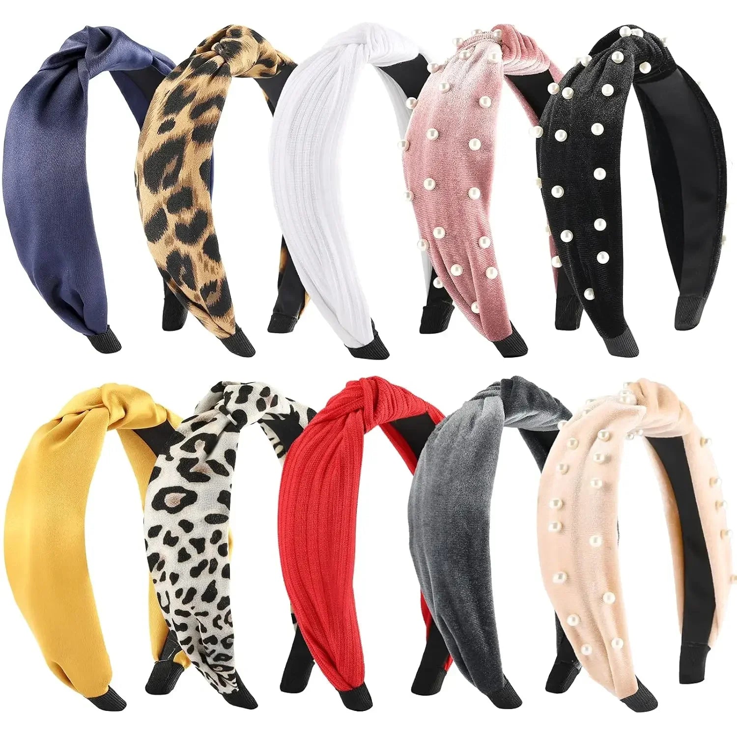 Fashion Headbands for Women Girls, 10 Pcs Knotted Pearl Wide Top Knot Turban Hair Bands/ Hoops Vintage Velvet Leopard Print
