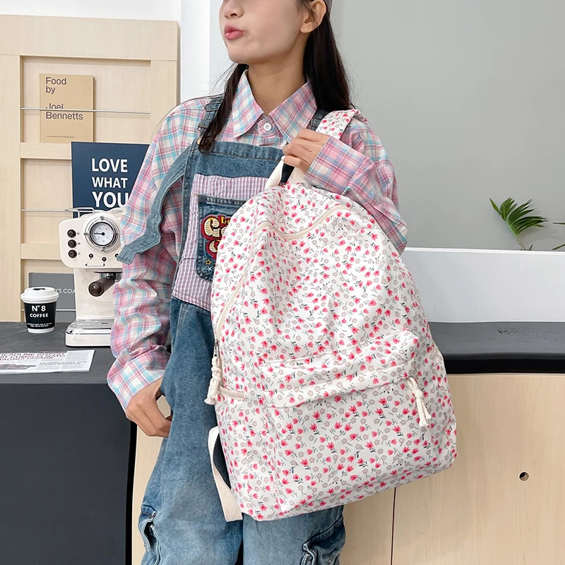 Floral Aesthetic Backpack Lightweight Casual Travel Daypack Fashion Student Backpack Nylon for Teen Girls Women School Kids Feature: