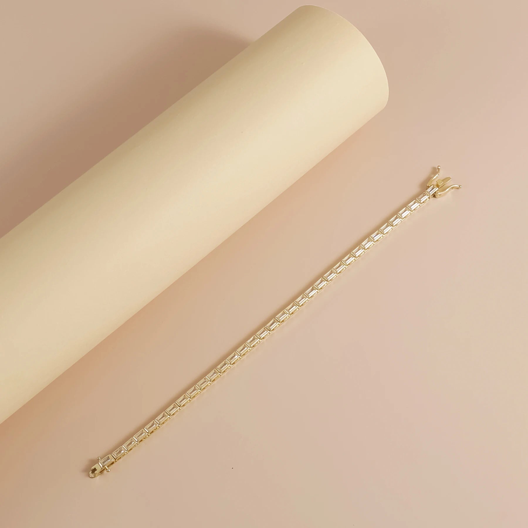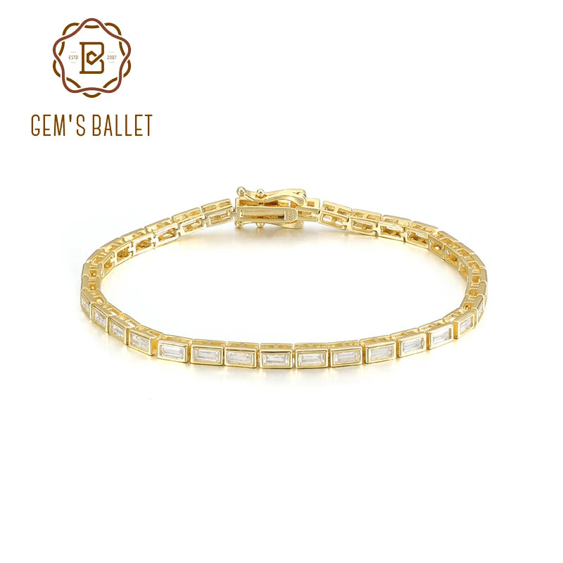 GEM'S BALLET Baguette Cut 2x4mm Eternity Bezel Moissanite Tennis Bracelet 925 Sterling Silver 14K Gold Bracelet Gift for Her