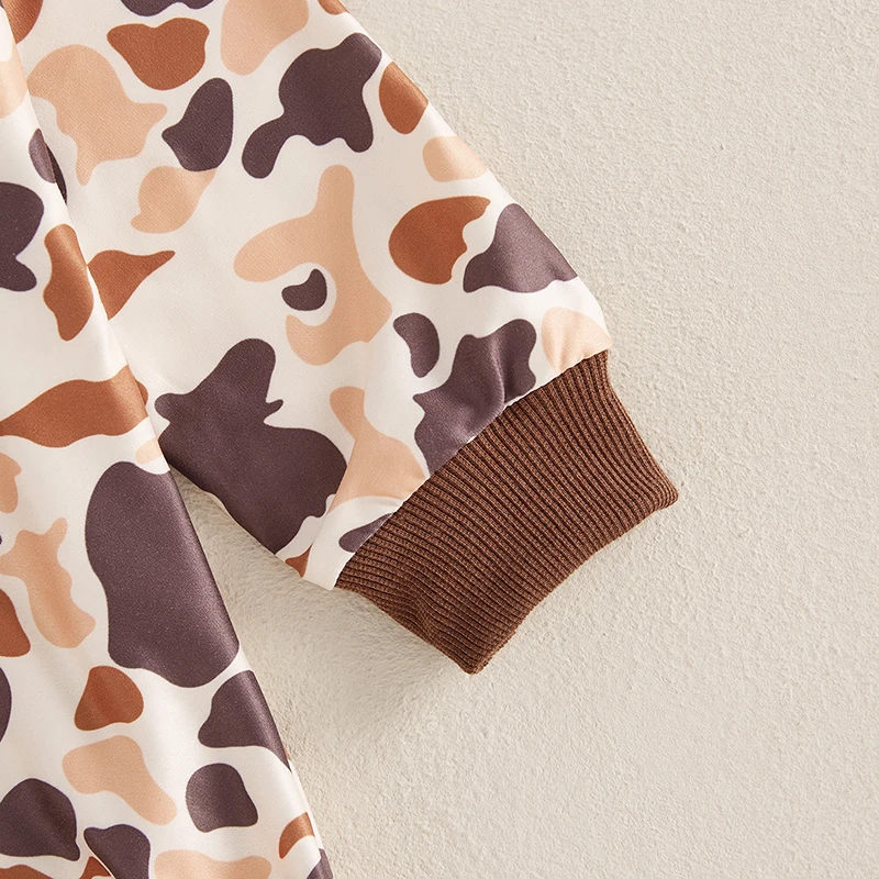 Infant Boys Fall Outfits Camouflage Letter Pattern Long Sleeve Crew Neck Rompers with Elastic Waist Pants 2 Pcs SetSize (cm)