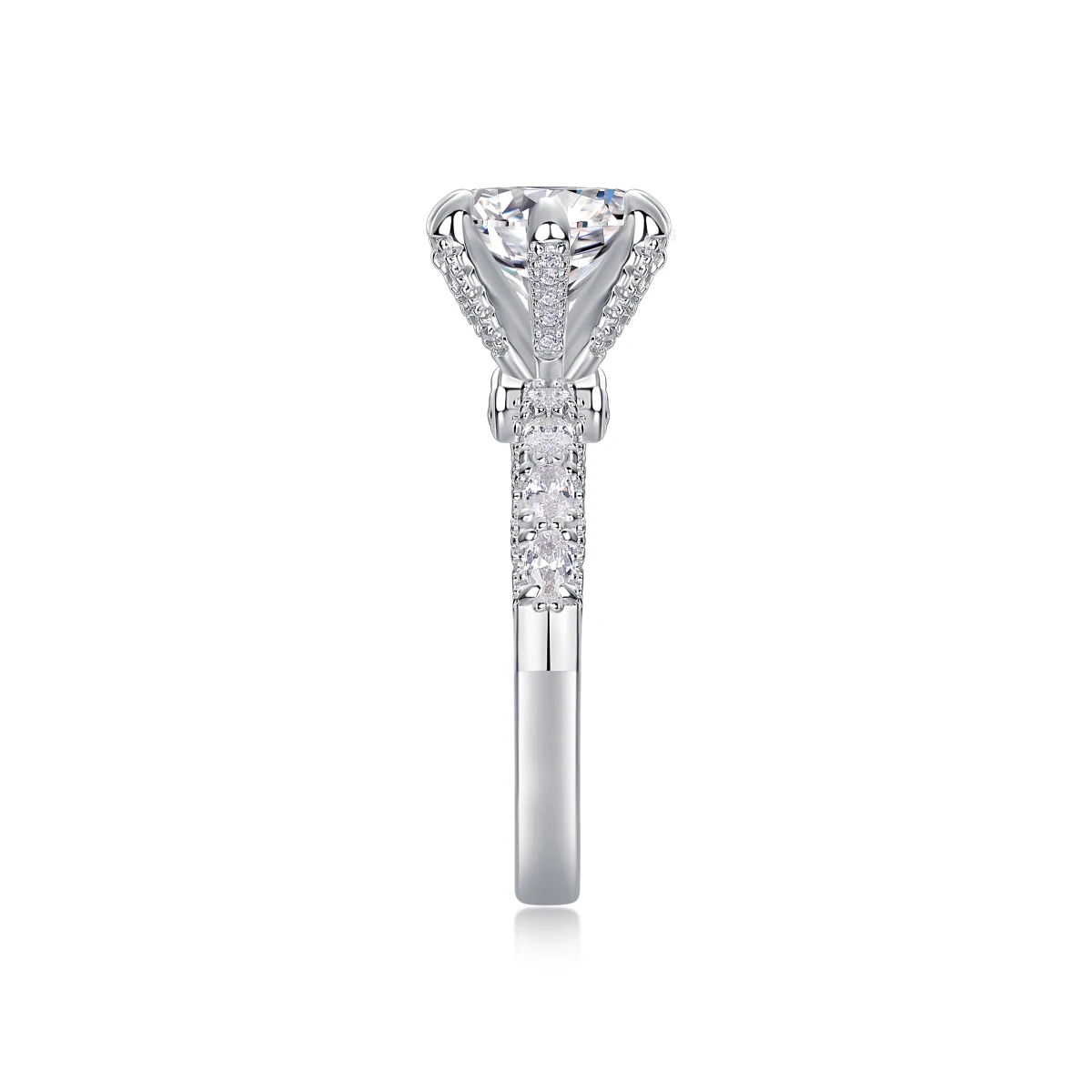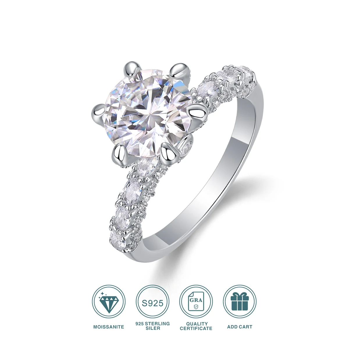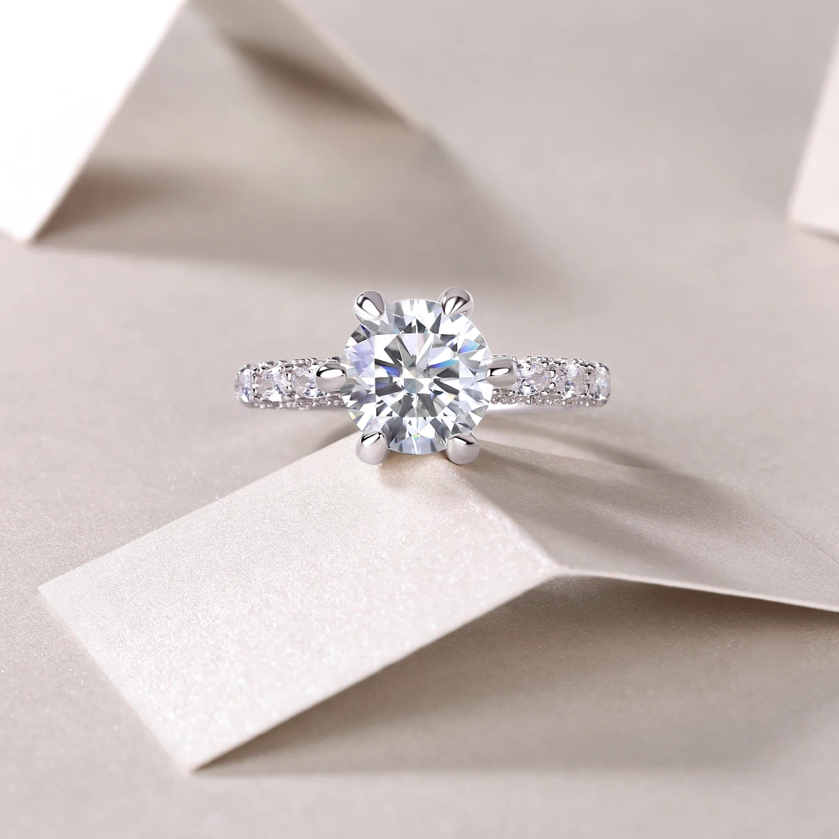 JIUZUAN 1/2/3 Carat Women's Engagement Ring Round Cut Moissanite Ring 925 Sterling Silver Classic Wedding Anniversary Ring