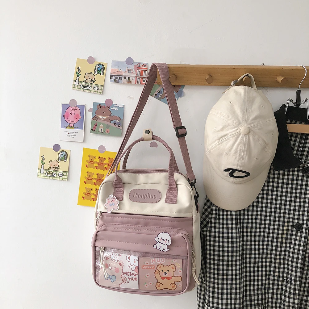 Feature: 1. Premium Material: The women girls kawaii backpack is made of high quality nylon and pvc, which is wear-resistant and good in texture, to use. 2. Large Capacity: Kawaii backpack (length: 260mm * width: 240mm * height: 90mm), the storage space of this messenger bag is big enough for your daily belongings. You can easily take your iPad, cell phone, book, wallet, makeup, etc. Perfect for school girl to carry book and stationary. 3. Unique Design: The casual bag consists of large-capacity main pockets in the front bag, which can provide enough space for all kinds of daily necessities meeting. And also the bag can match your various styles by shoulder or crossbody. 4. Kawaii Pins & Accessories: The casual students schoolbag has kawaii pins and accessories with adjustable wide long shoulder straps which can reduce the burden on the shoulders. The refined design reflects the elegant fashion and individuality of women girls and also you can decorate your bag the way you like. 5. A Perfect Gift: The JK uniform bag is suitable for a variety of places, such as dating, parties, shopping, work and school. It is a perfect gift for your wife, girlfriend, family or sister on Christmas, Valentine's Day, Halloween or friends' birthdays or anniversaries. Specification: Material: nylon +pvc Size: 260*240*90mm/10.23*9.44*3.54in Suitable for people: women Number of shoulder straps: two Usage: shoulder bag Closing mode: zipper Pattern: contrast color Occasions: daily, leisure, shopping, traveling, going to school Shoulder strap: adjustable Origin: Hebei Color: Blue/Green/Pink/Black Note: Due to the different monitor and light effect, the actual color of the item might be slightly different from the color showed on the pictures. Thank you! Please allow 1-2cm measuring deviation due to manual measurement. ![]()