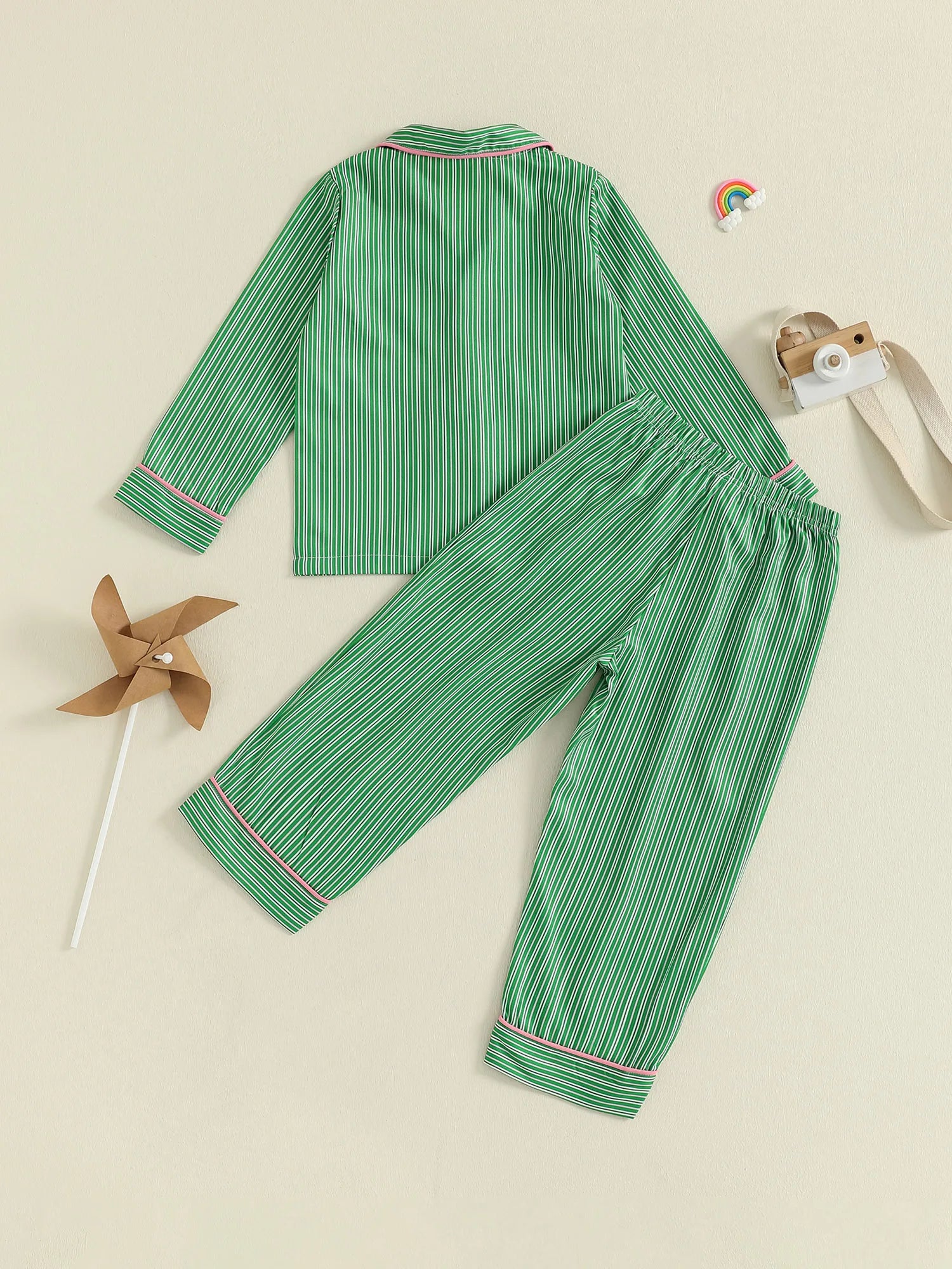 Little Girl Boy Pajama Set, Striped Long Sleeve Tops and Elastic Waist Pants 2 Piece Sleepwear OutfitSize (cm)