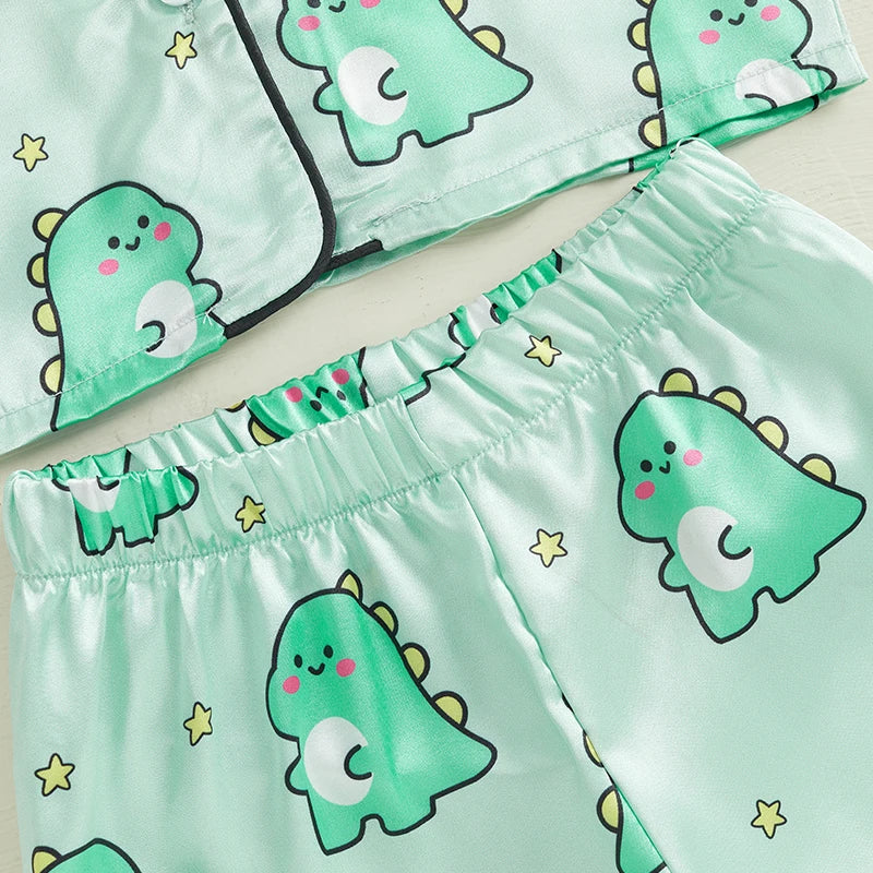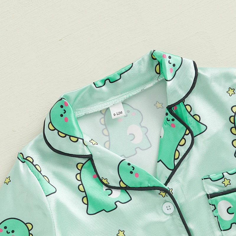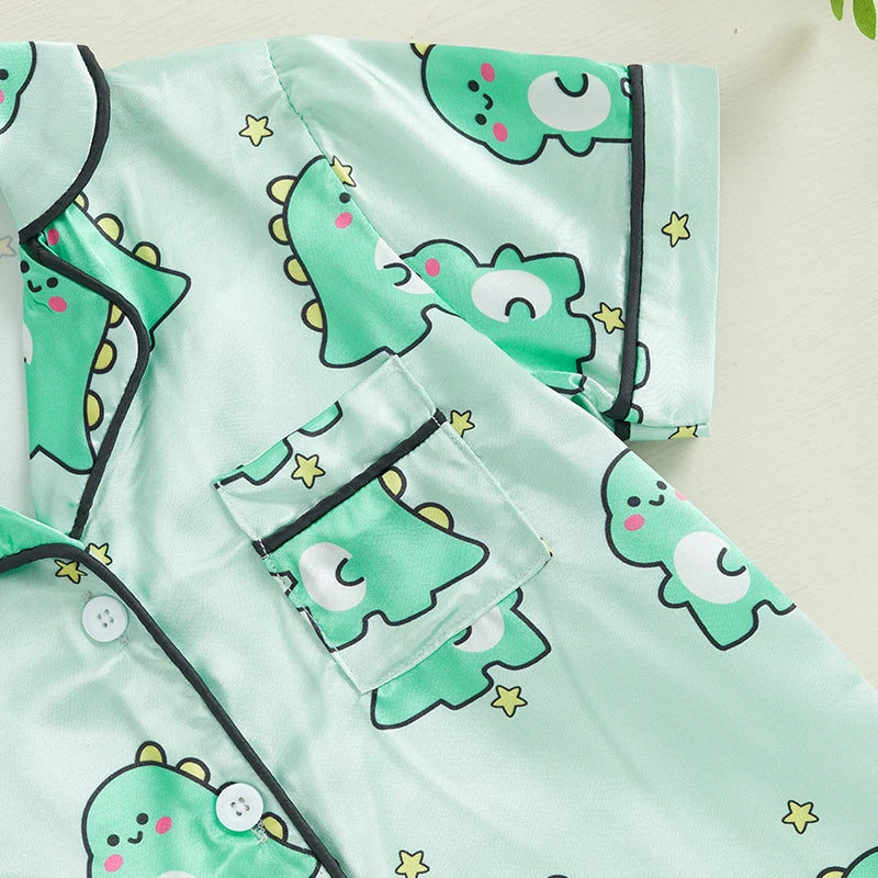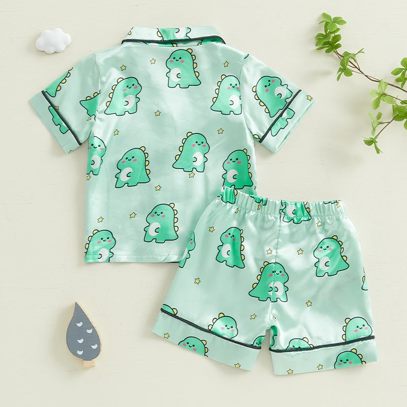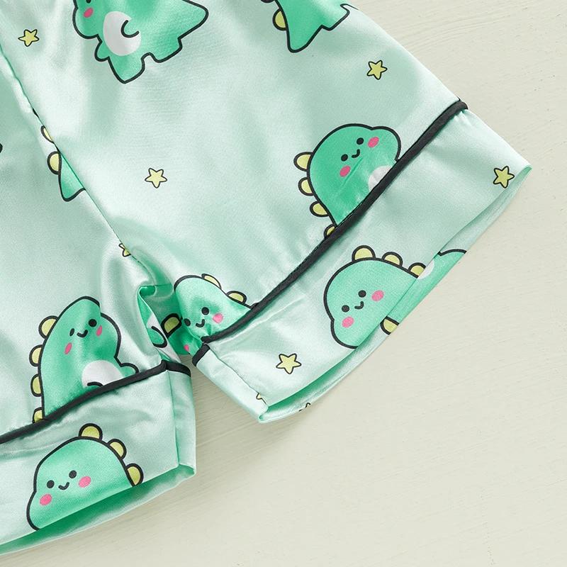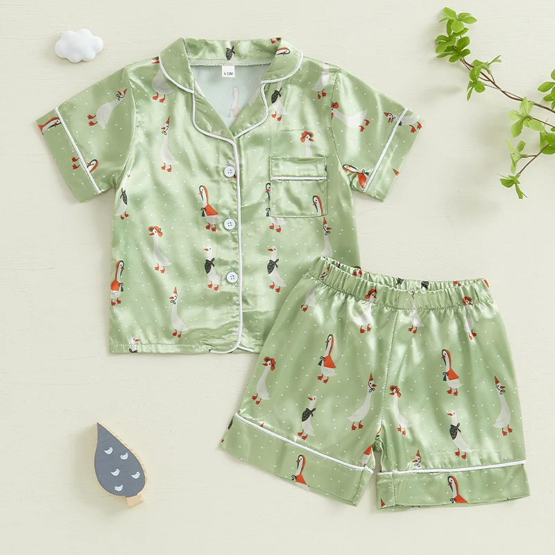 Toddler Boys Girls Summer Pajamas Set Cartoon Dinosaur Goose Pattern Button Down V Neck Short Sleeve Tops and Shorts Lounge Wear 2 Pcs SetSize(cm)