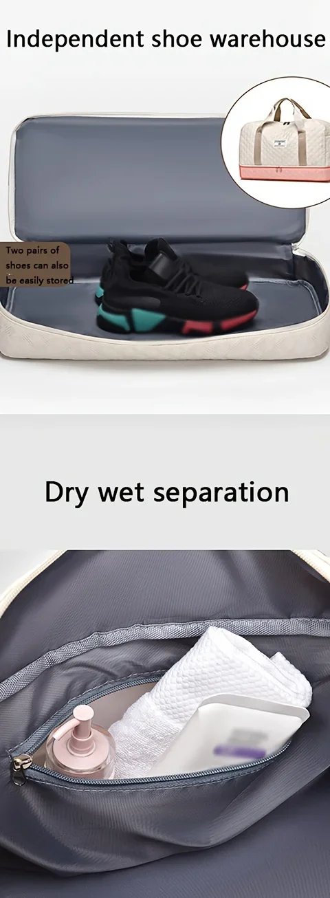【Dry Wet Separated Tote Bag】Built-in waterproof wet pocket. The high density water resistant material can help you to separate dry items and wet items,if you have wet clothes or towel,you can put it in this crossbody bag.