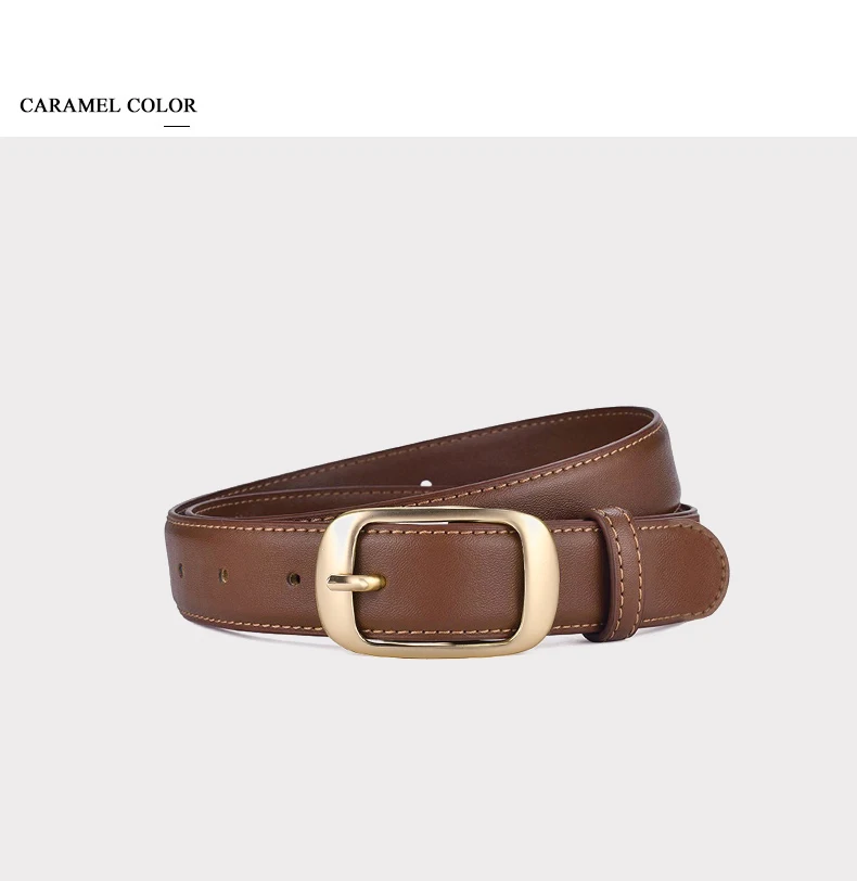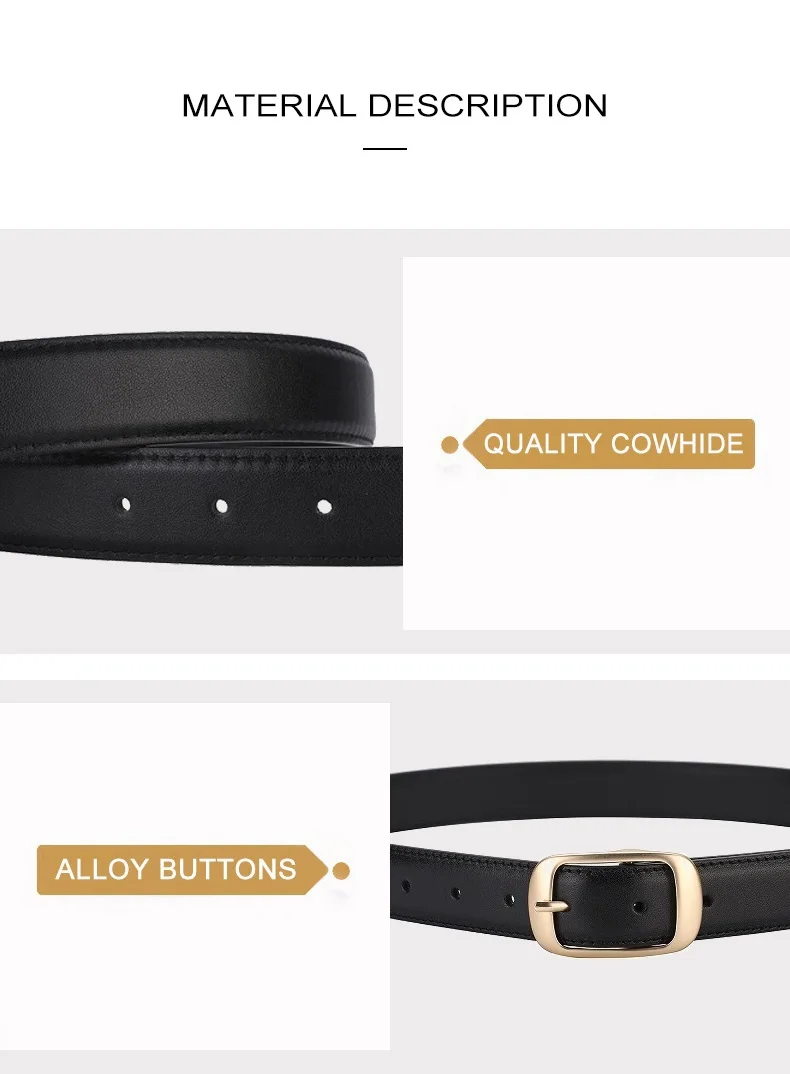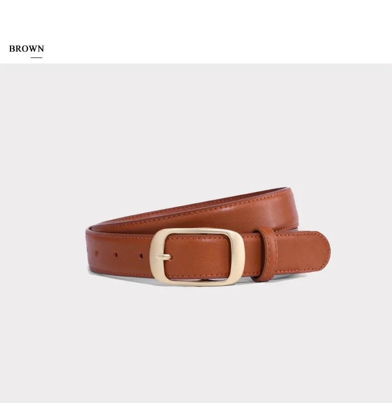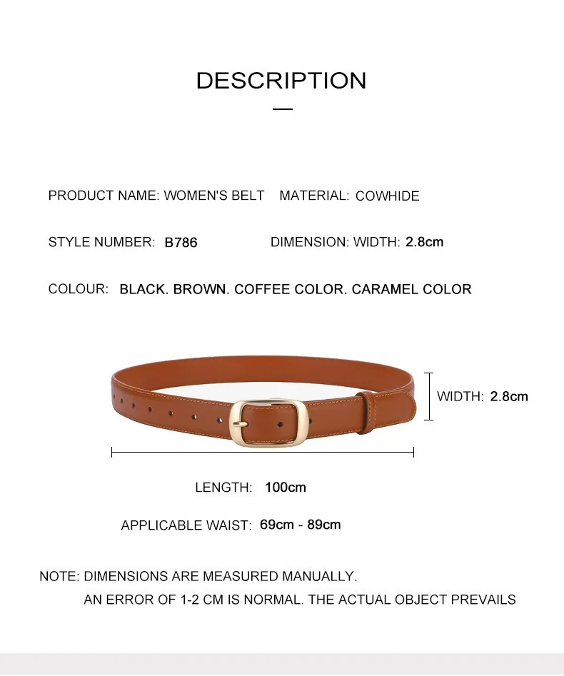 Luxury Genuine Leather Wide Belt Ladies Fashion Simple Matching Jeans Gold Buckle Belt Women 2.8cm Wide Cowhide Brown Belt