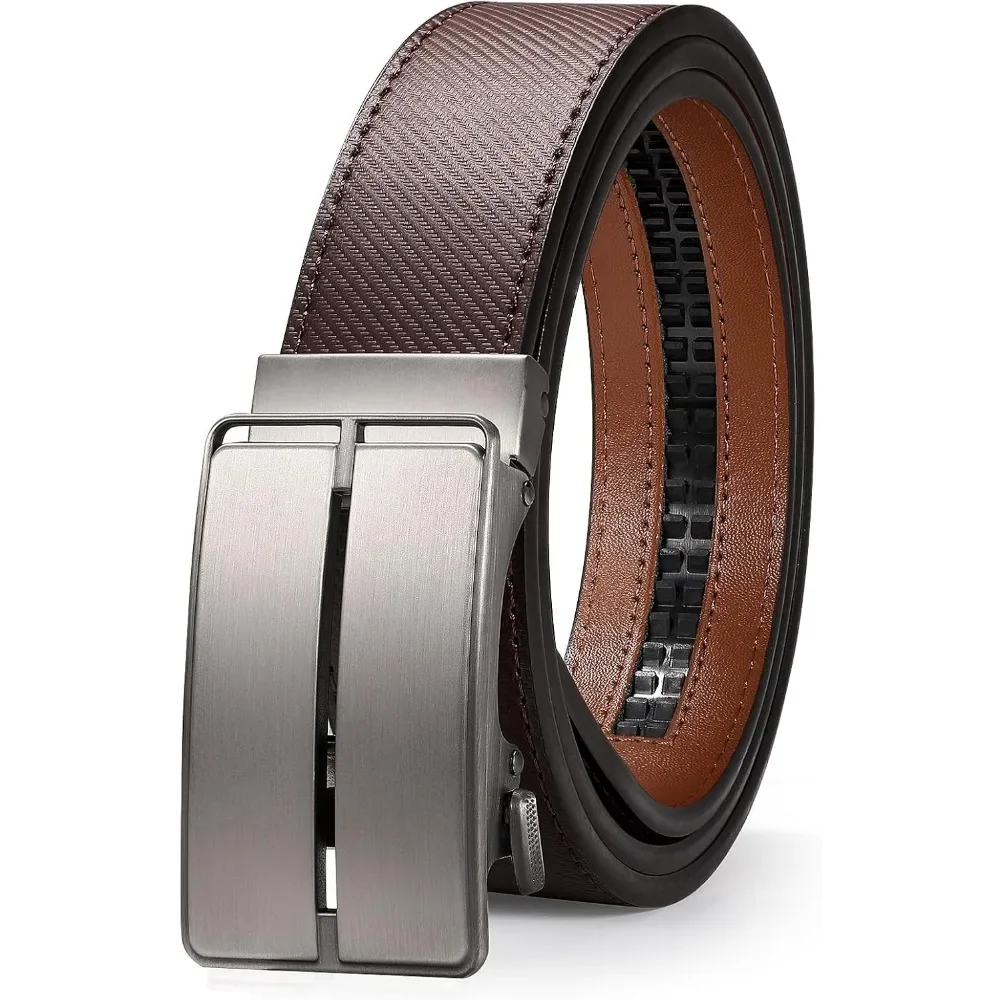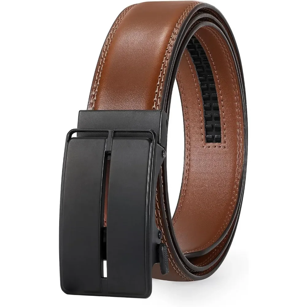 Mens Belt Leather Ratchet Belt For Men Automatic Ratchet Buckle 1 3/8" Slide Belt for Dress Pant