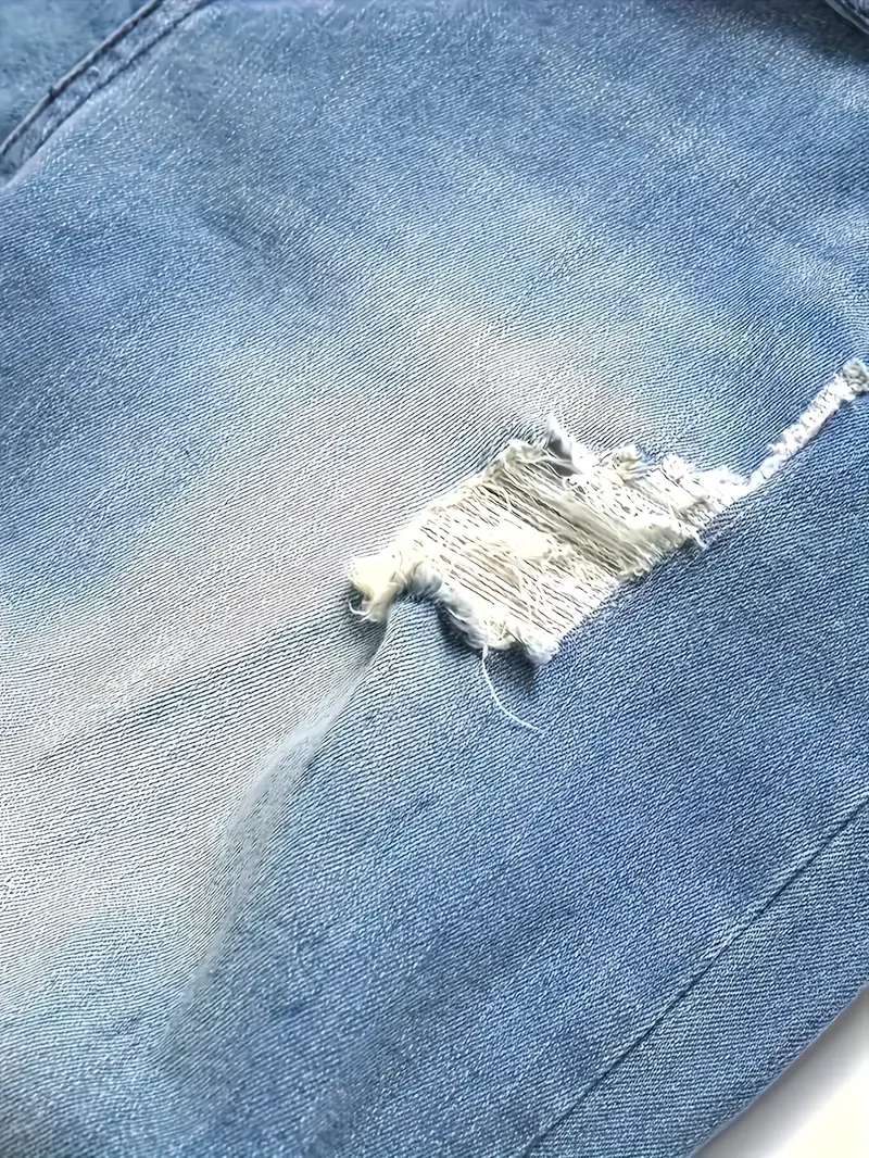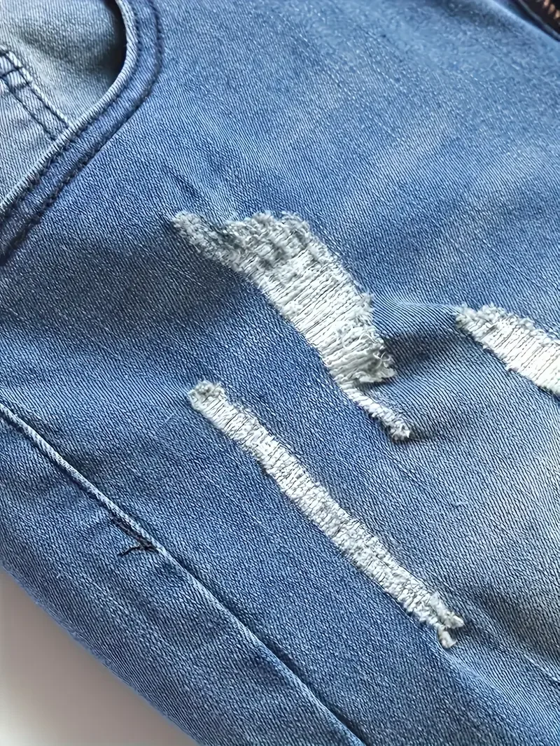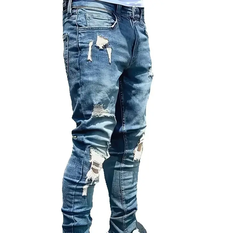 Men'S Slim Fit Distressed Jeans - Stretch Denim, Ripped Detail, Mid-Rise, Street Style, Light Blue, All-Season Casual Wear, Stre