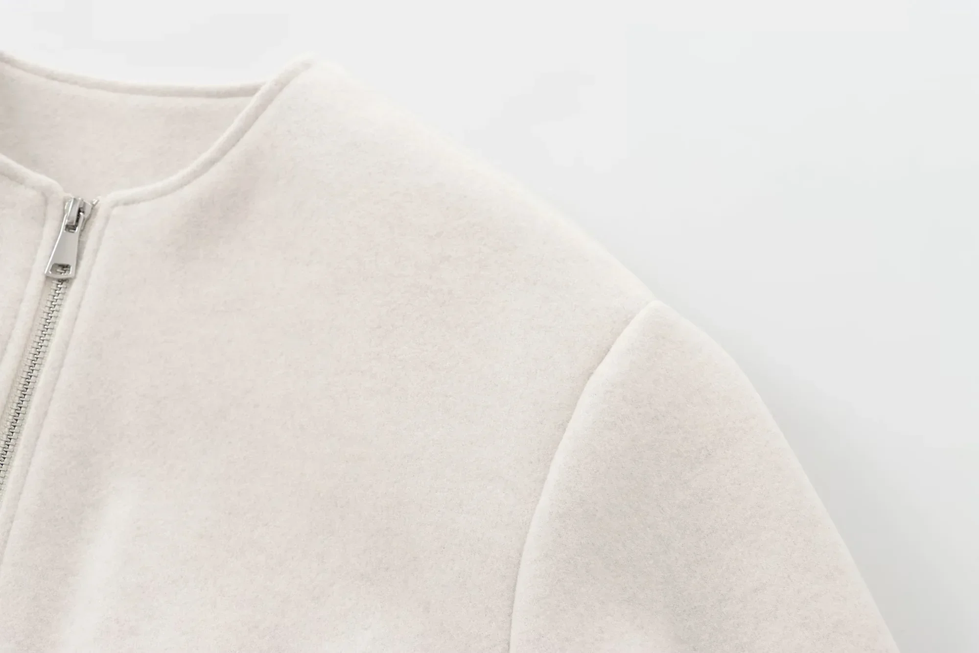 Outerwears Cropped Bomber Jacket Women Autumn Long Sleeve Faux Wool Coats For Woman Winter Zip Up Gray Beige Short Coats
