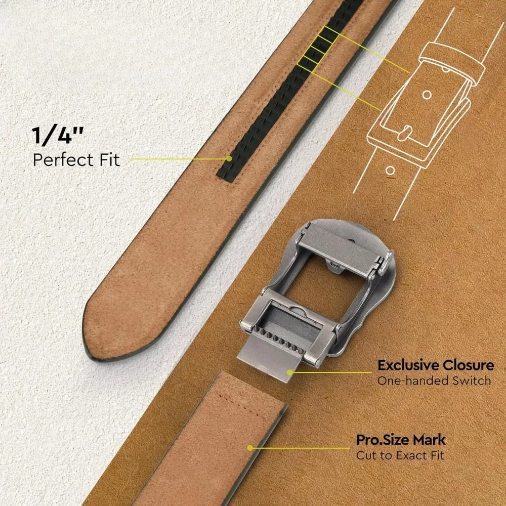 - •【Effortless Buckling】: Say goodbye to the bulky buckles of traditional cowboy belts for men. The PlusZis Western Leather Ratchet Belt offers ultimate convenience—just slide it into the western-style buckle for an automatic lock. This user-friendly design makes it easy for both men and women to wear and adjust without hassle.