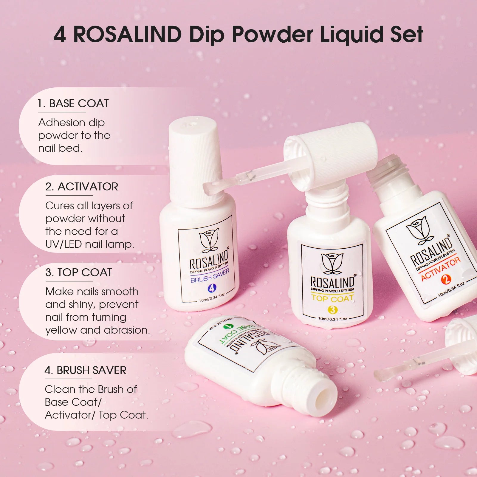 ROSALIND 6 Colors Dip Powder Nail Dip Powder Colors Liquid Set with Base&Top Dip Nails Powder Starter Kit