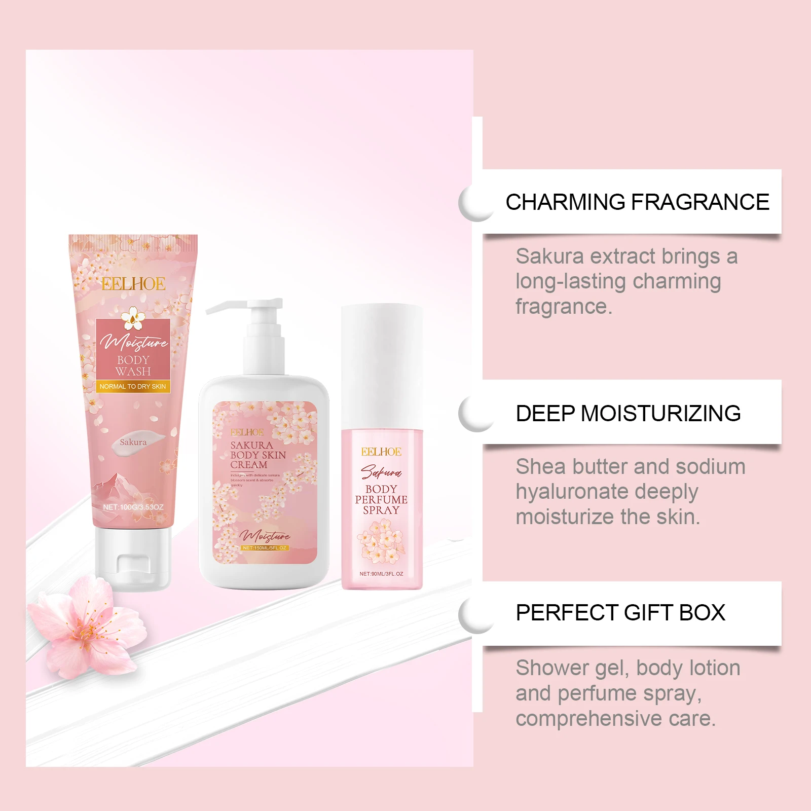 Sakura Body Hydrating Fragrance Set, Moisturizing Body Care Kits, Gentle Cleansing Skincare, Nourishing and Fragrant