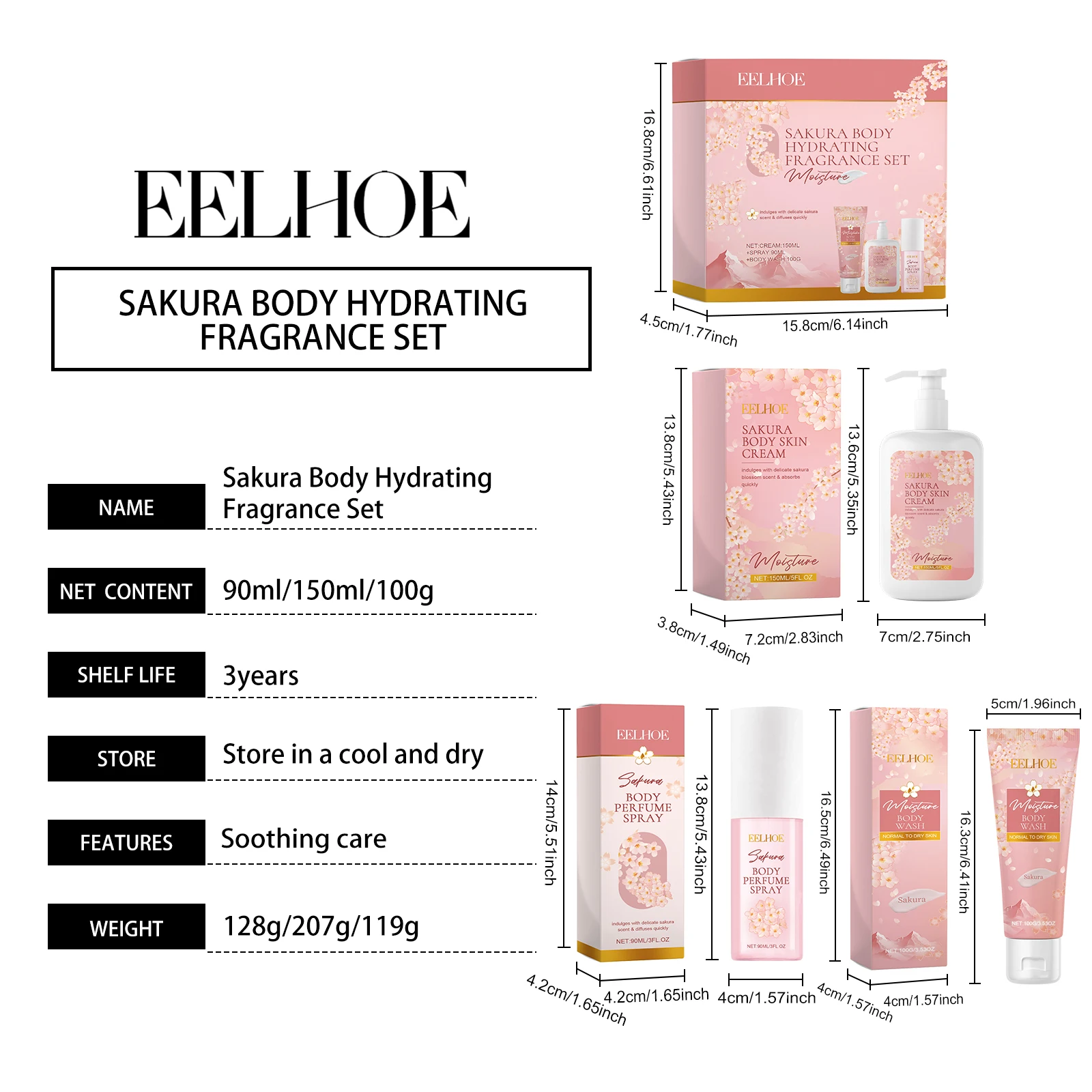 EELHOE SAKURA BODY WASH:100G*1,EELHOE SAKURA BODY SKIN CREAM:150ML*1,EELHOE SAKURA BODY PERFUME SPRAY:90ML*1