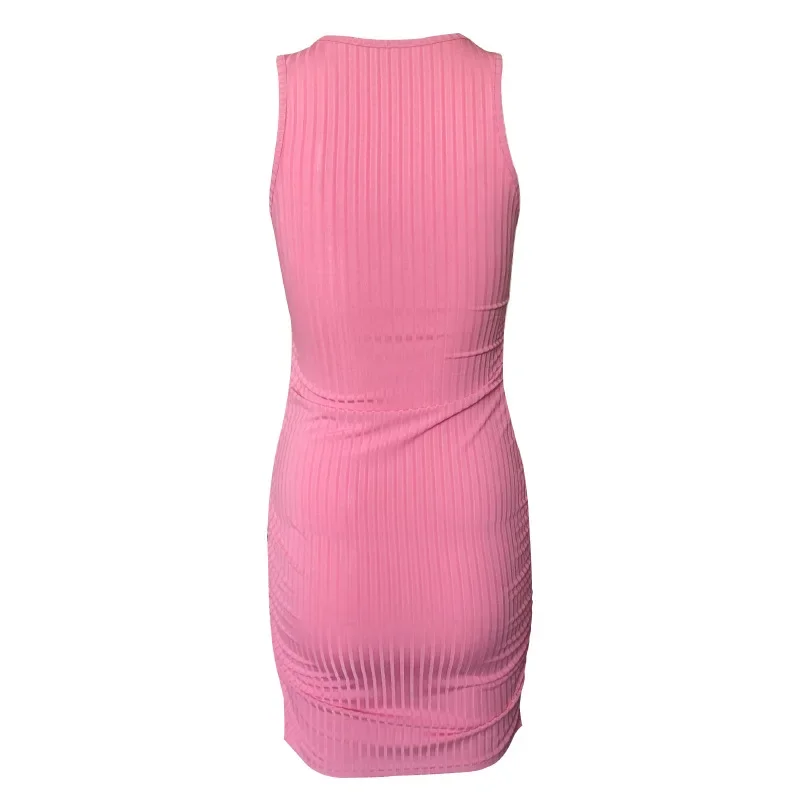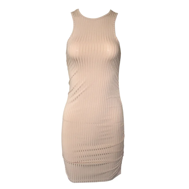 Sexy Stripes Thread Knitting Slim Bodycon Dress Women Sleeveless Solid Color Skinny Mini Dress Elegant Club Party Vestidos
