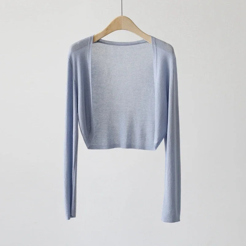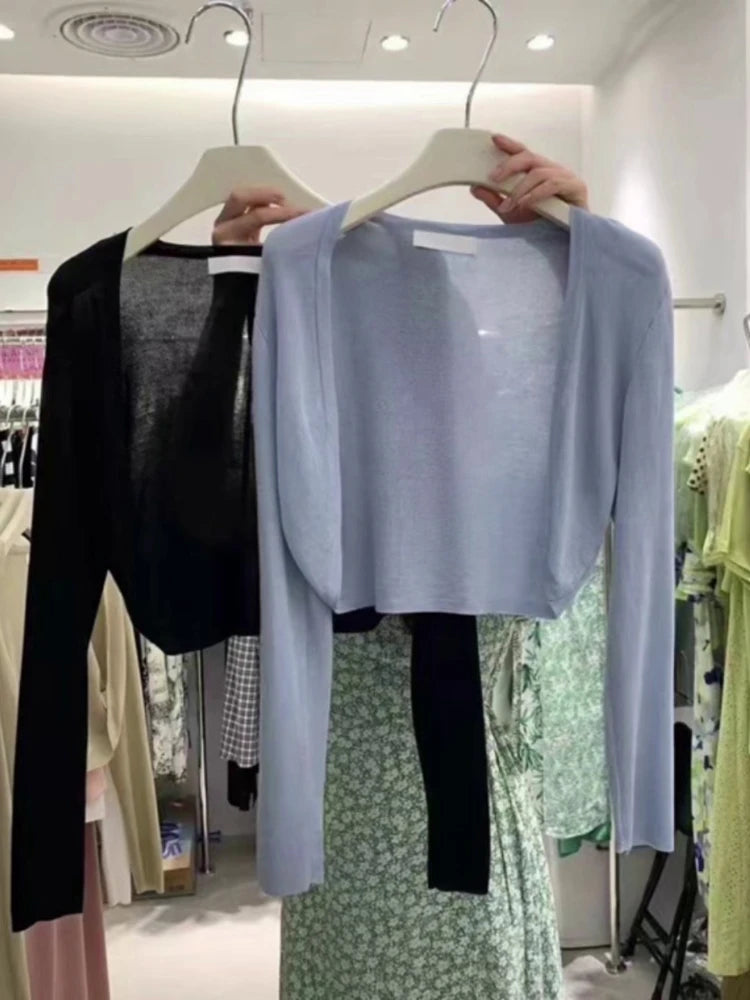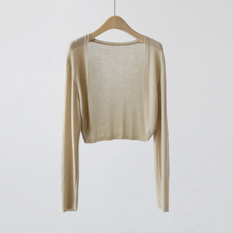 Short Ice Silk Knitted Sun Protection Cardigan Women's Thin Summer Suspender Skirt Layered Gauze Jacket Air-conditioned Cover Up