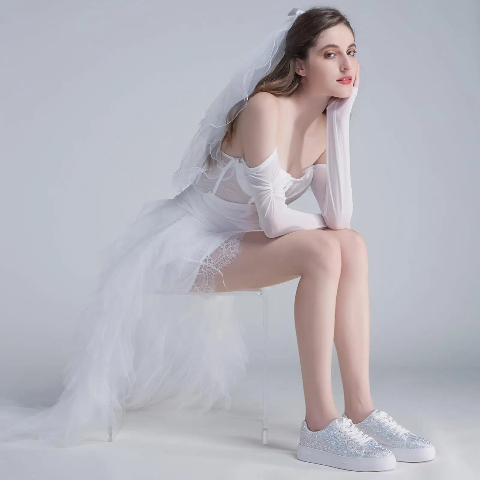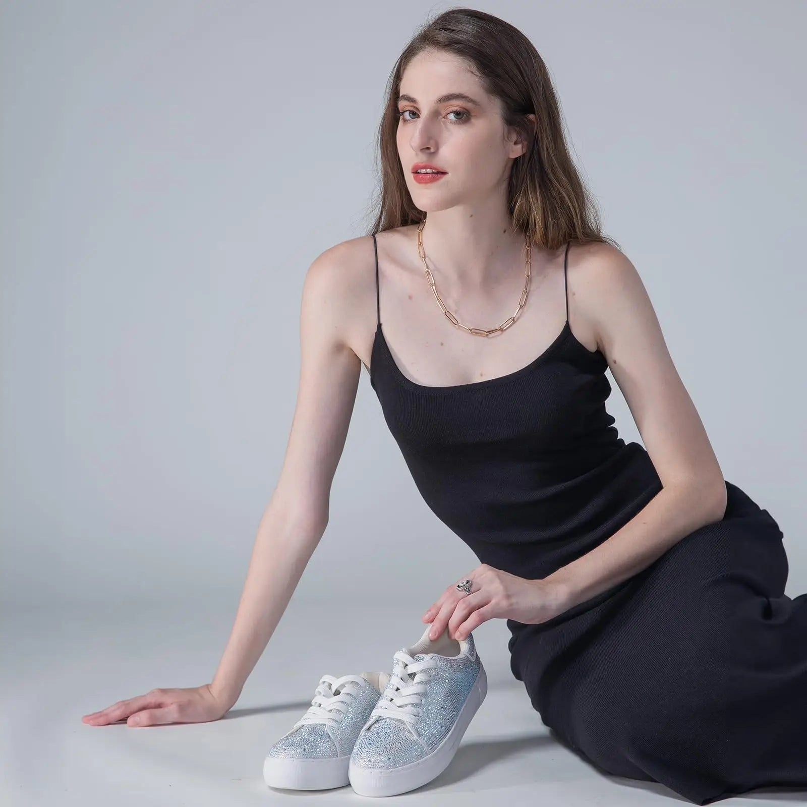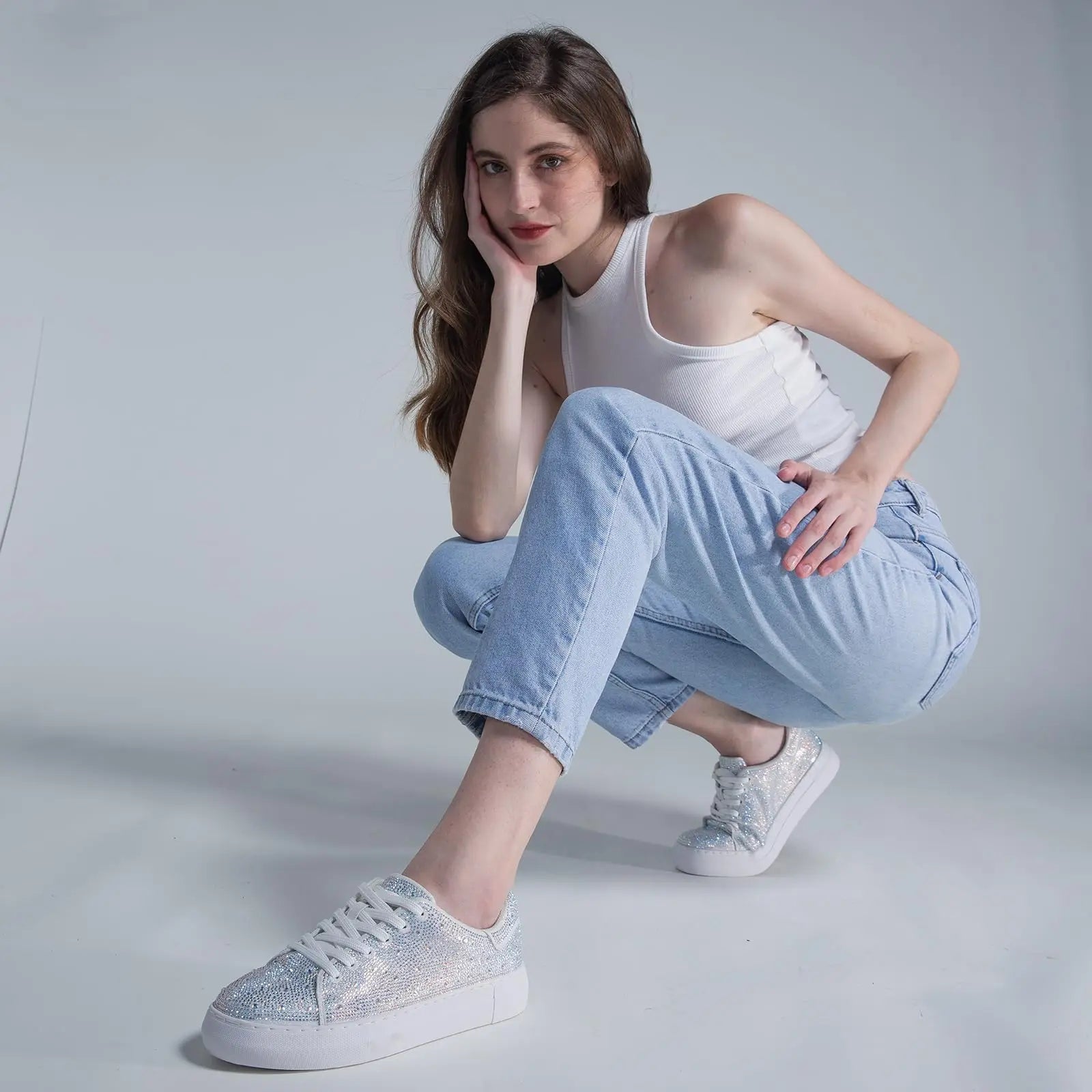 Sparkle Rhinestone Sneakers for Women Bling Sneakers Rhinestone Sneakers White Shoe Glitter Fashion Bedazzled Platform Tennis Sh