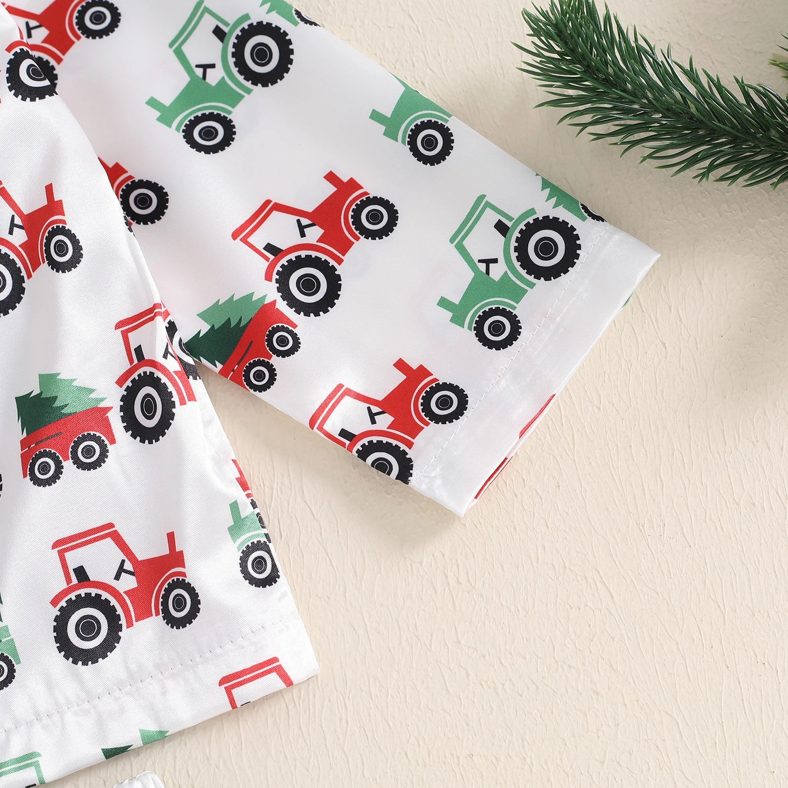 Toddler Boy Satin Pajama Set, Tractor Print Long Sleeve Button Down Tops Elastic Waist Pants 2 Piece Set for Fall