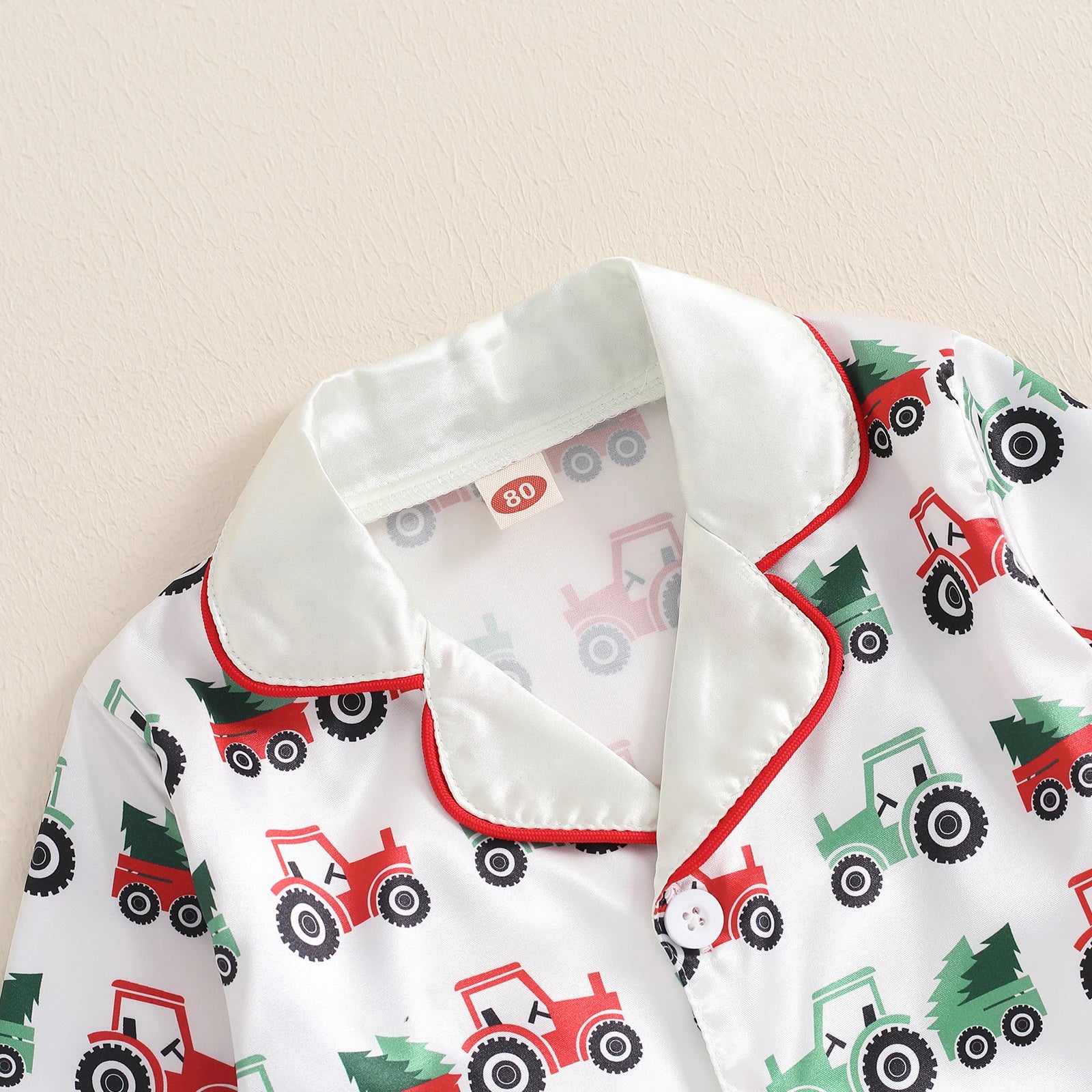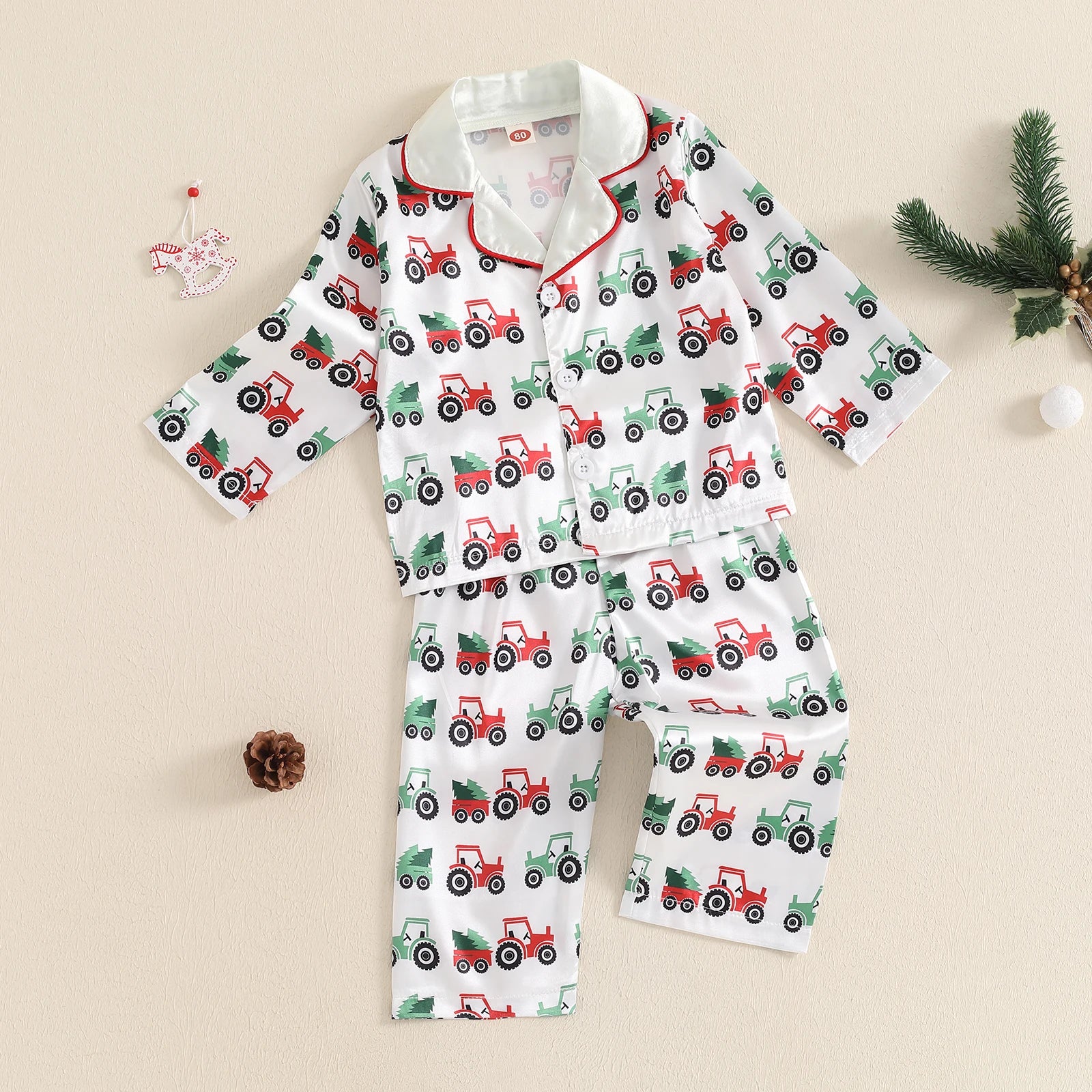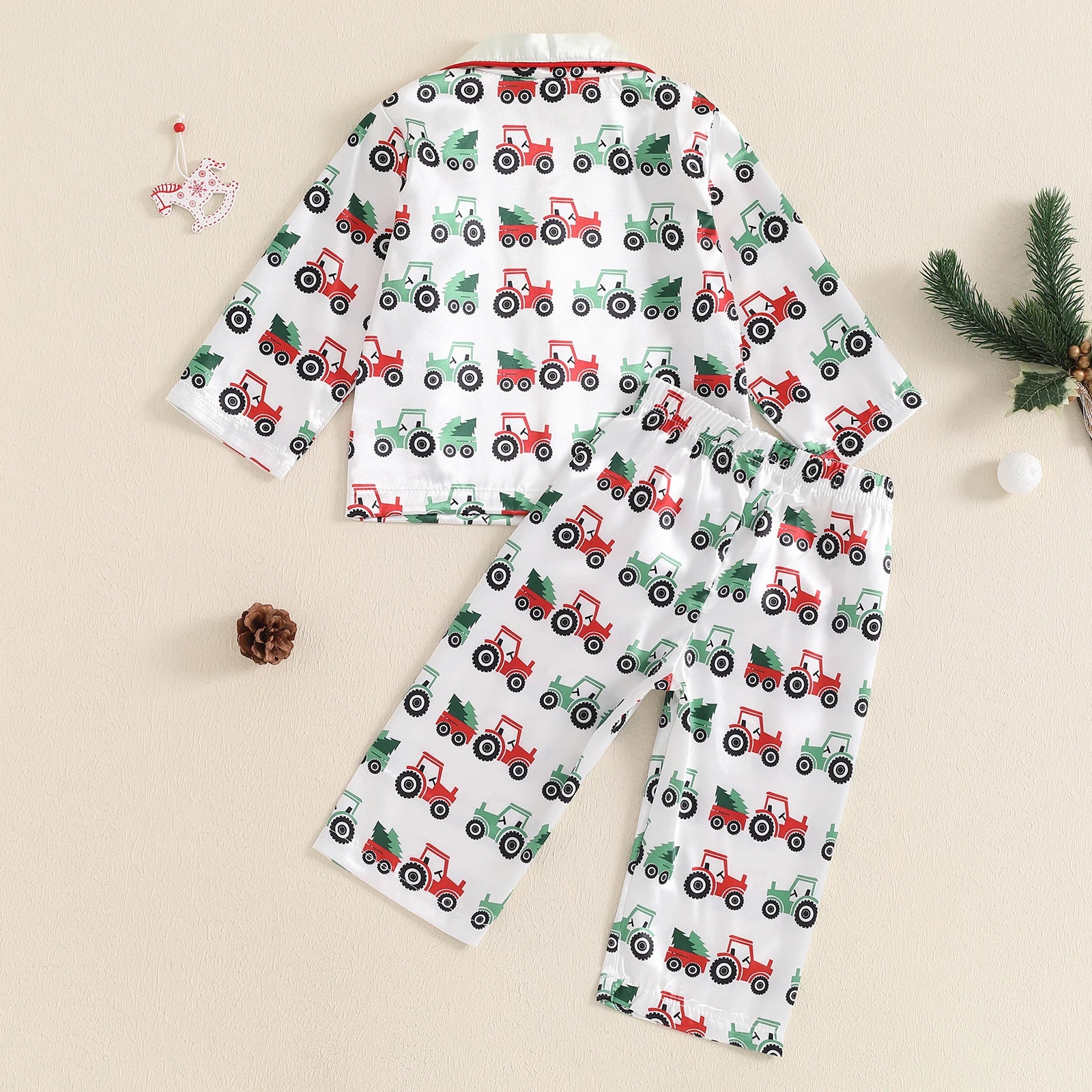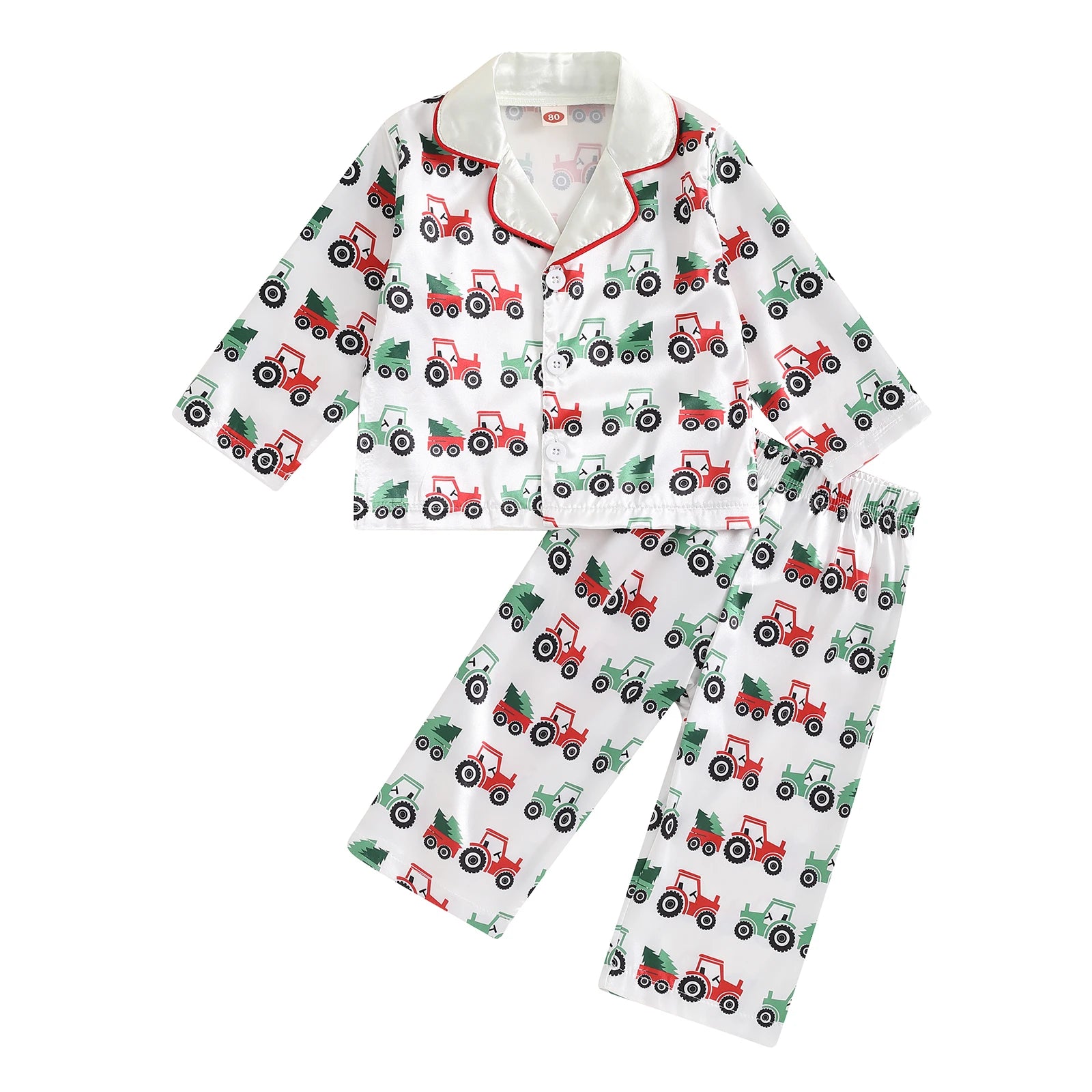 Toddler Boy Satin Pajama Set Tractor Print Long Sleeve Button Down Tops Elastic Waist Pants 2 Piece Set for Fall