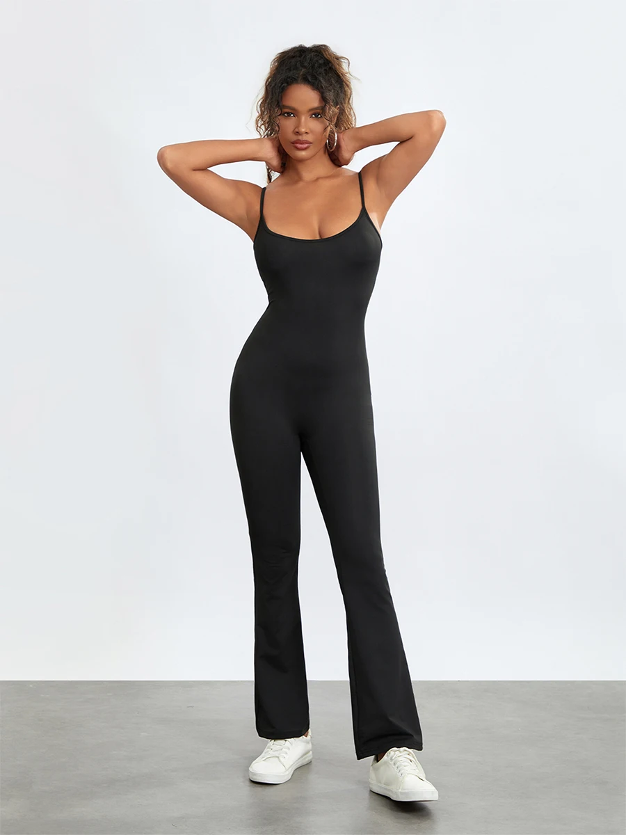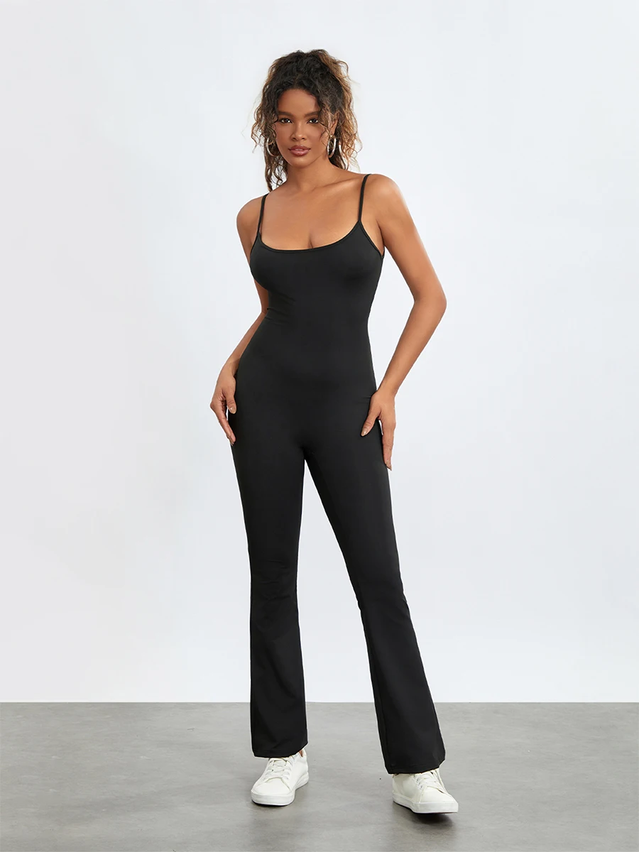 Women s Summer Long Fitted Jumpsuit Black Sleeveless Backless Cami Club Bodysuit