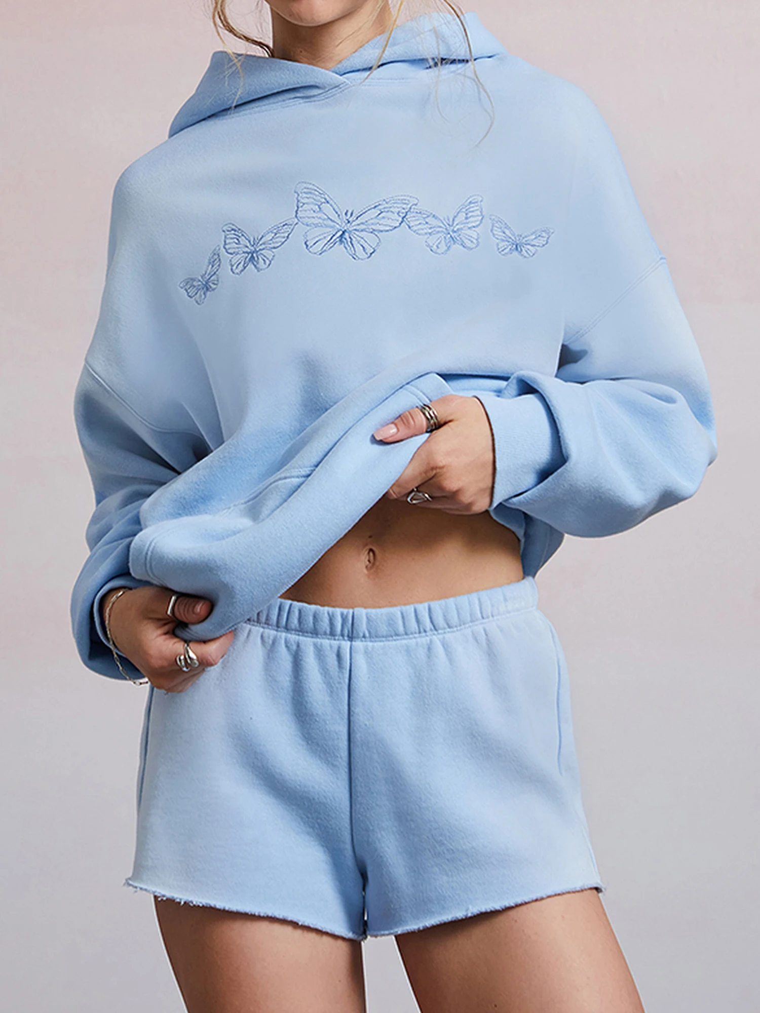 Womens Winter Hoodies Stylish Butterfly Embroidered Casual Loose Fit Long Sleeve Hooded SweatshirtSize (cm)