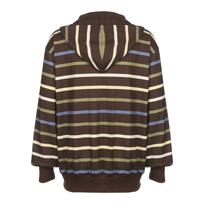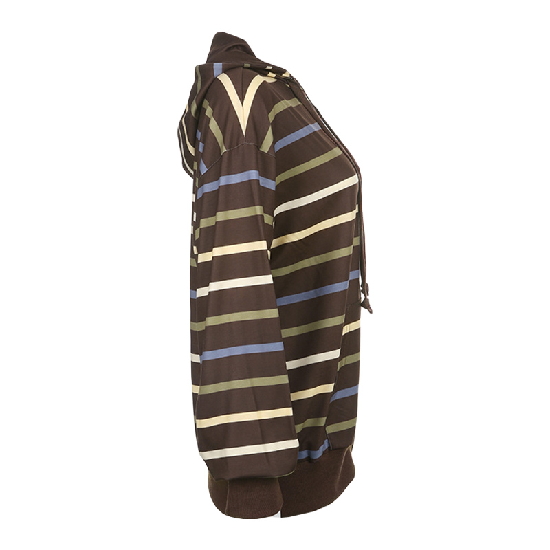 Women Zip Up Drawstring Hoodie Casual Striped Long Sleeve Sweatshirt Jacket Autumn StreetwearFeatures