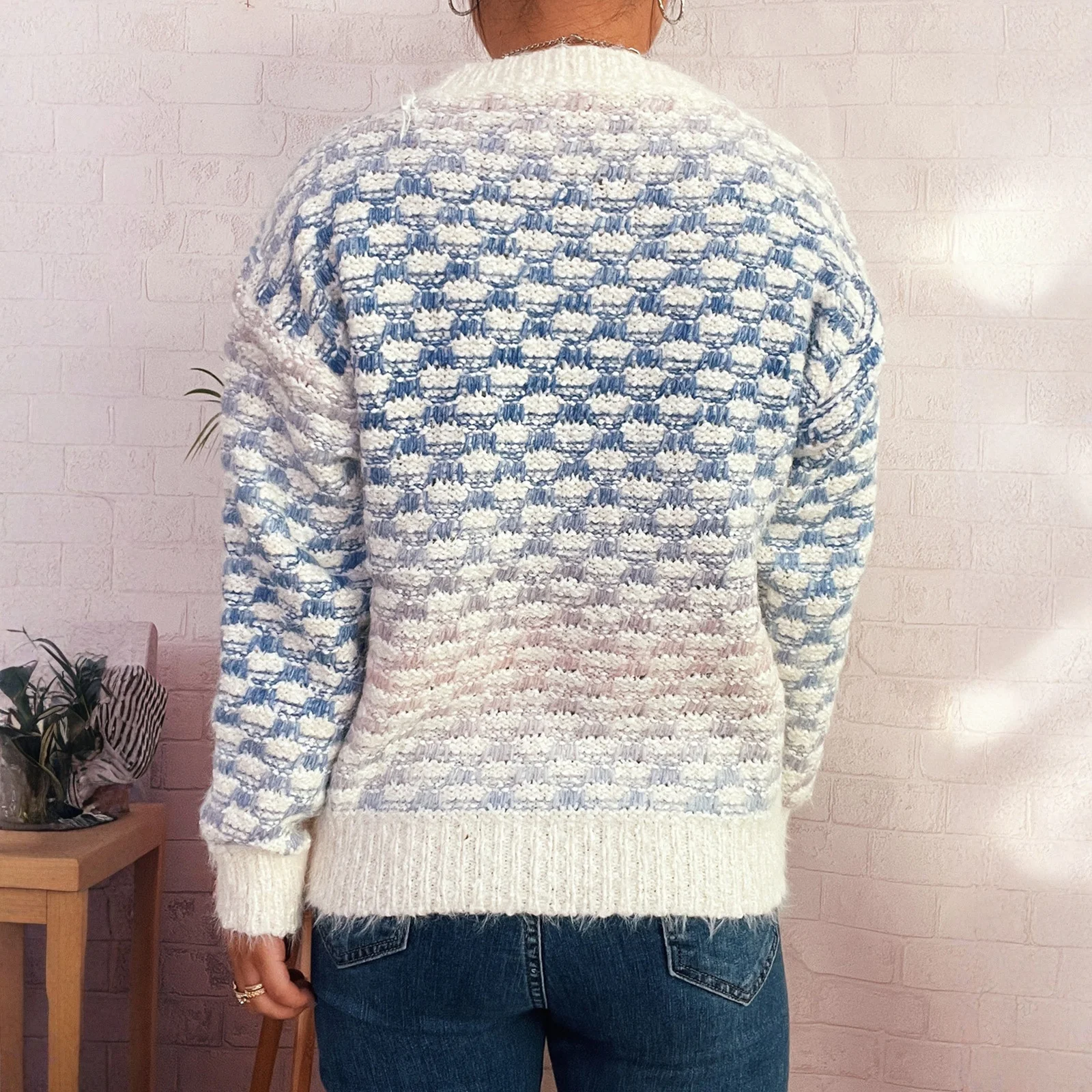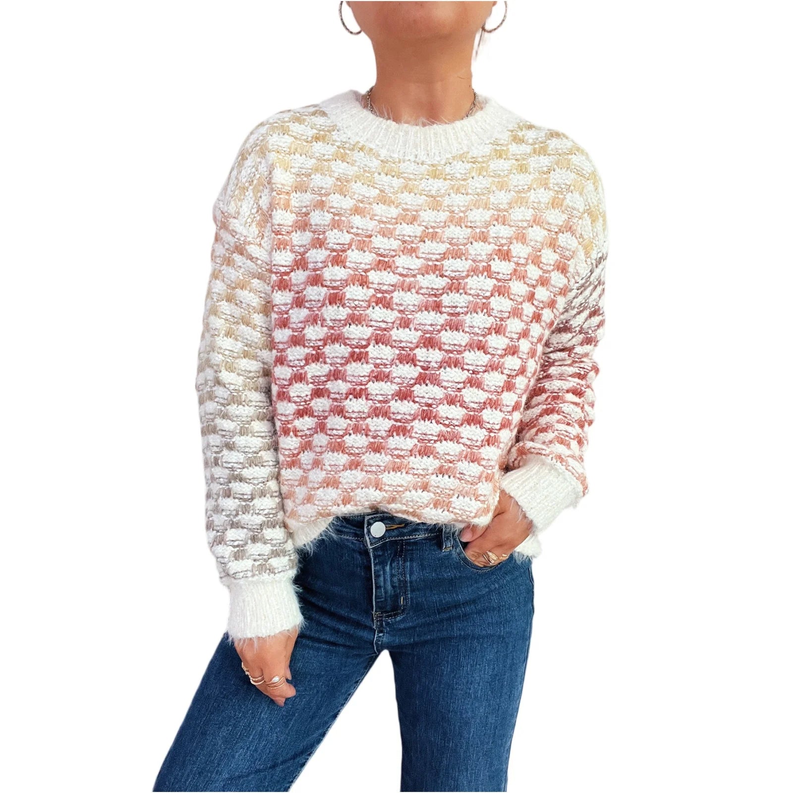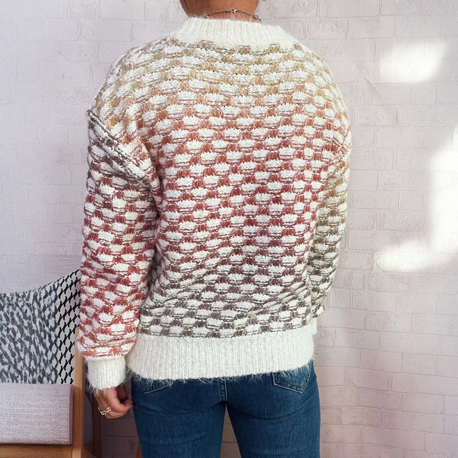 Women'S Casual Loose Pattern Gradient Color Long Sleeve Round Neck Pullover Knit Sweater Winter Clothes Woman Ropa De Mujer