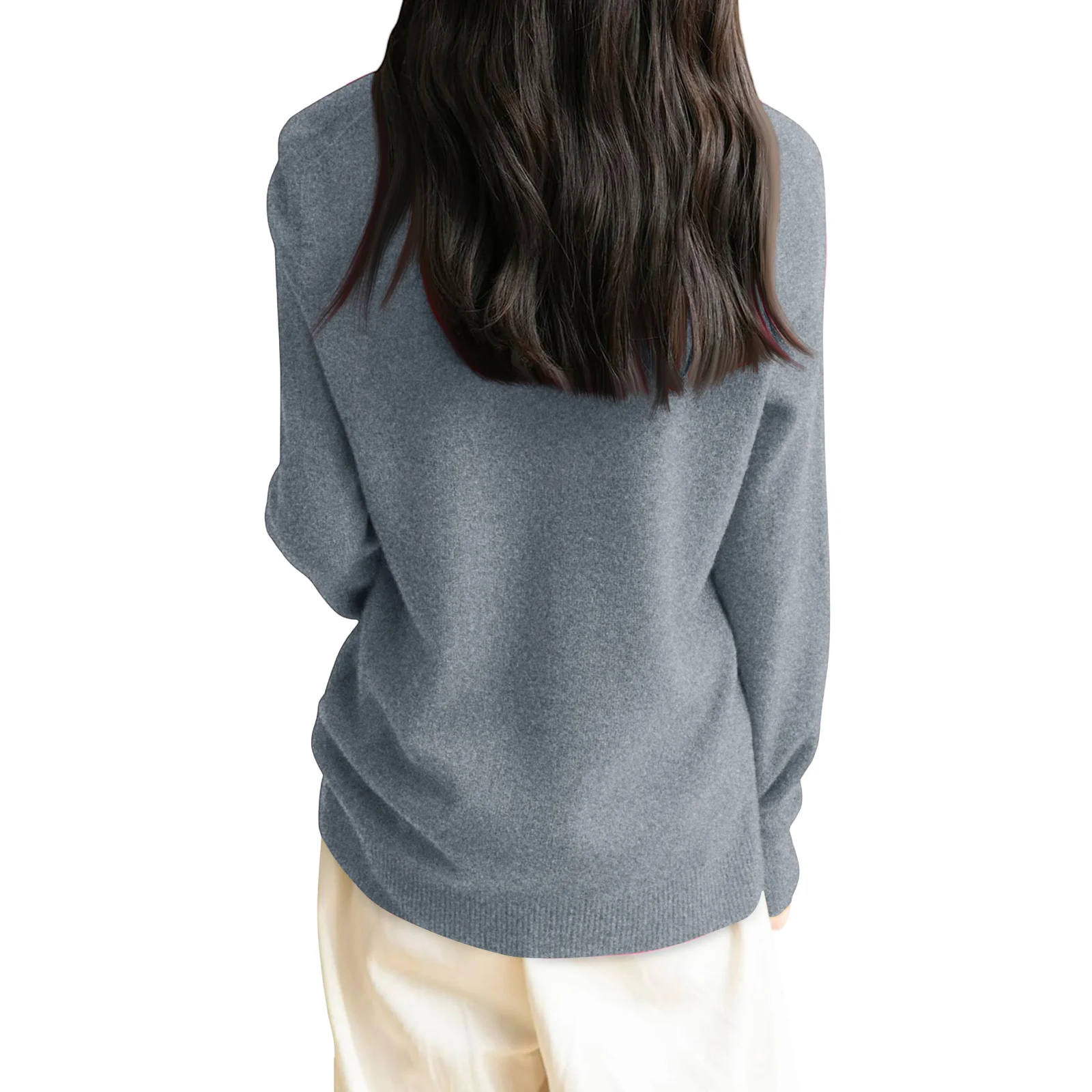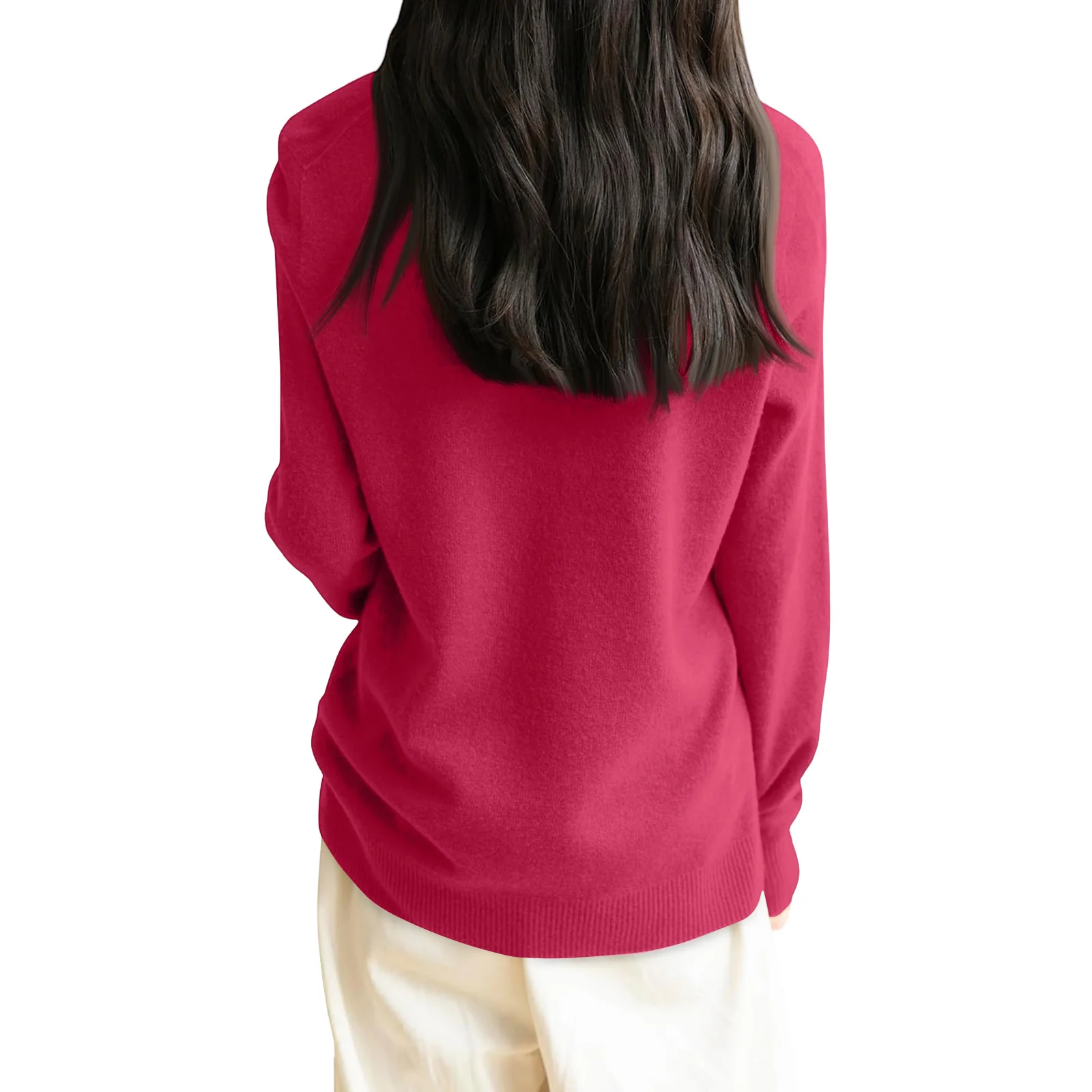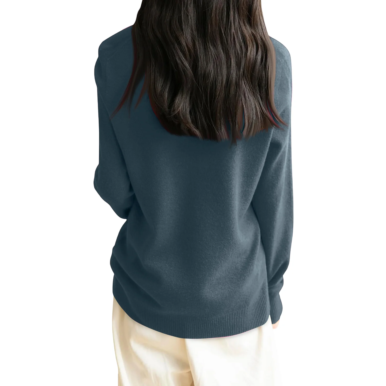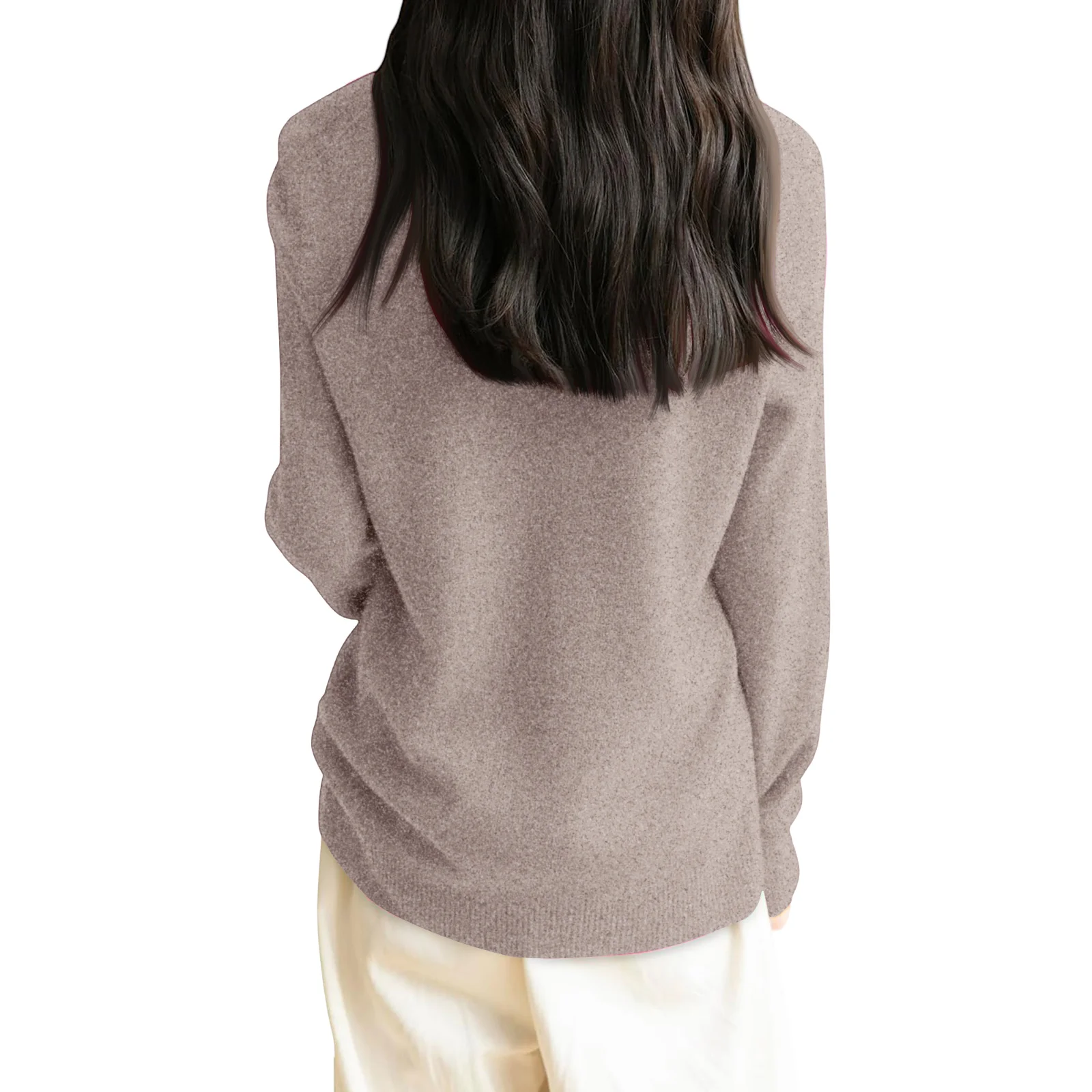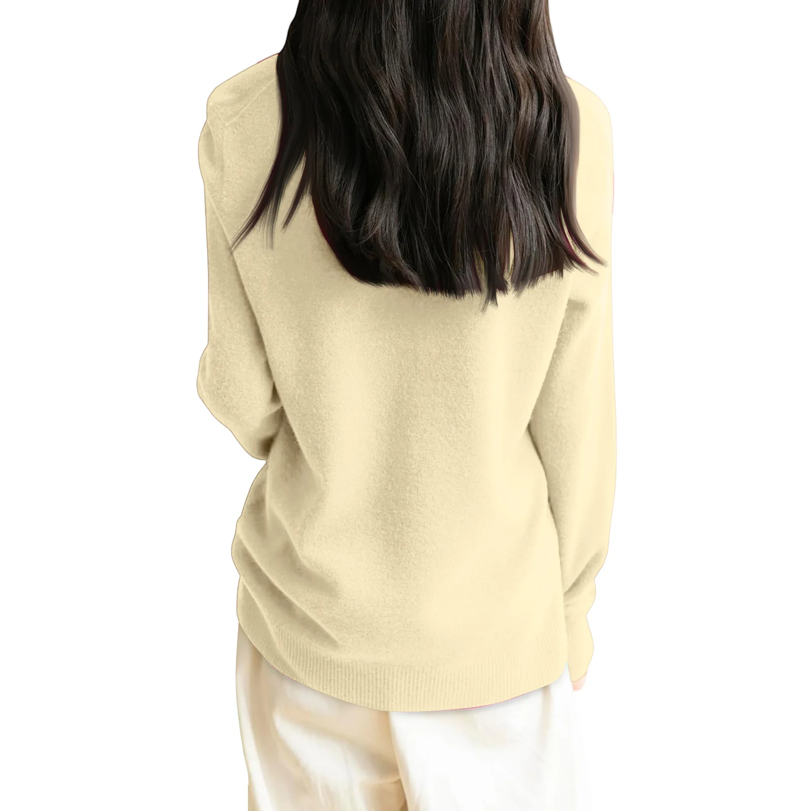 Women's Fashion Flat-Knit V-Neck Pullover Sweater Solid Color Long-Sleeve Top