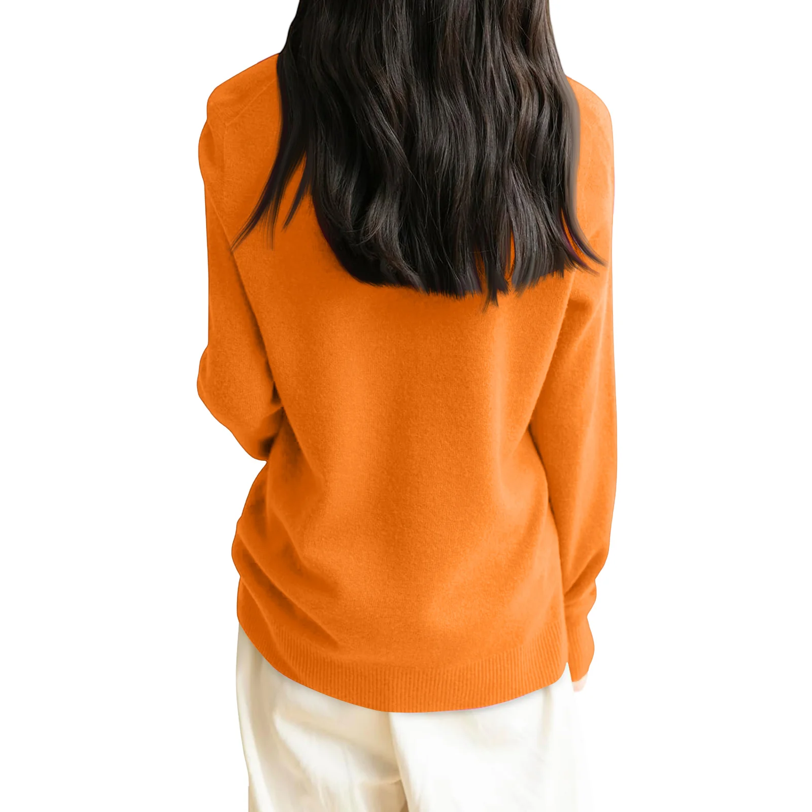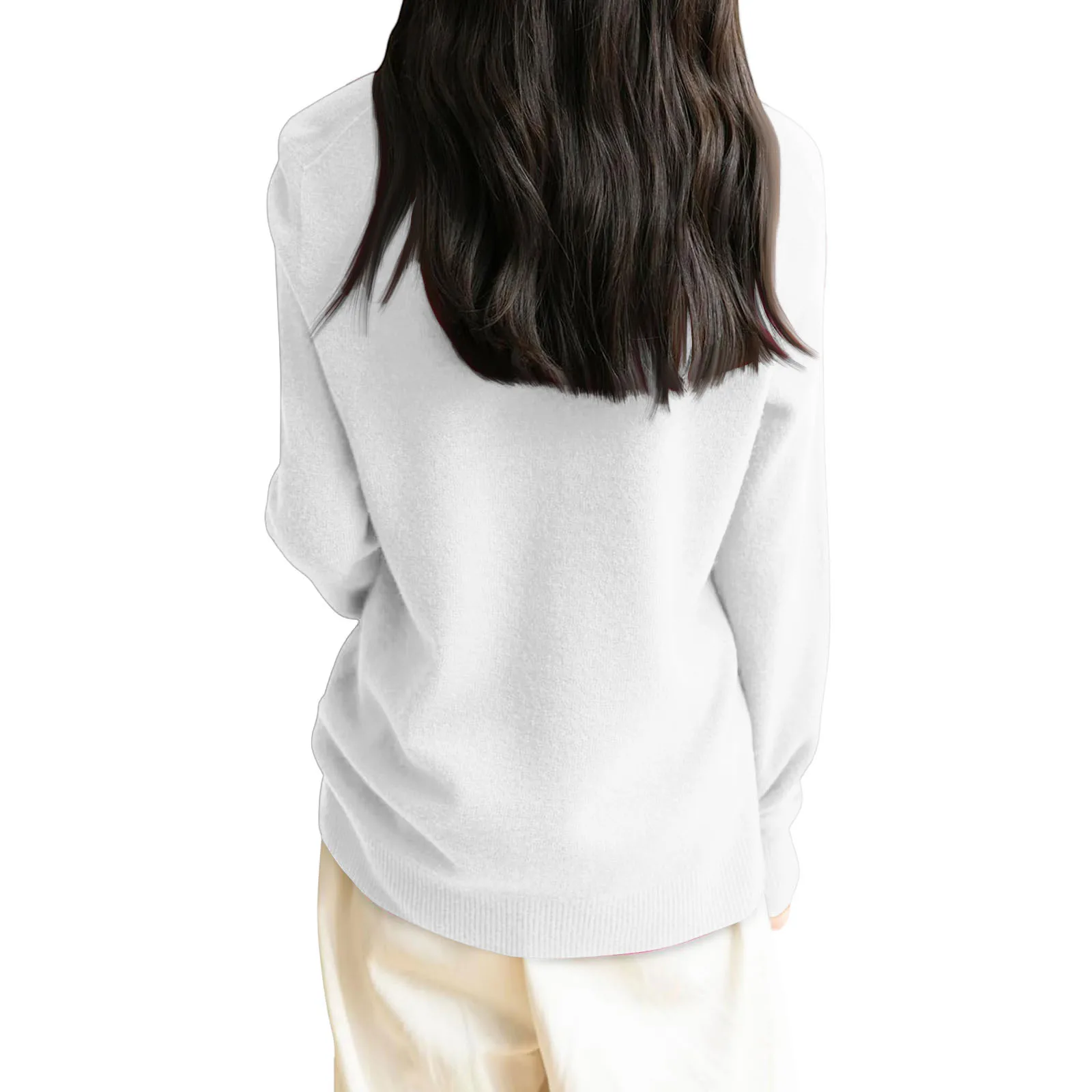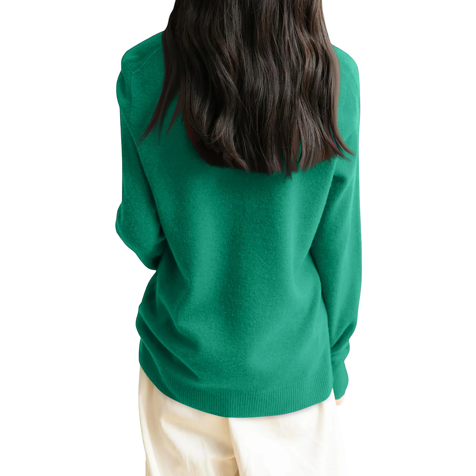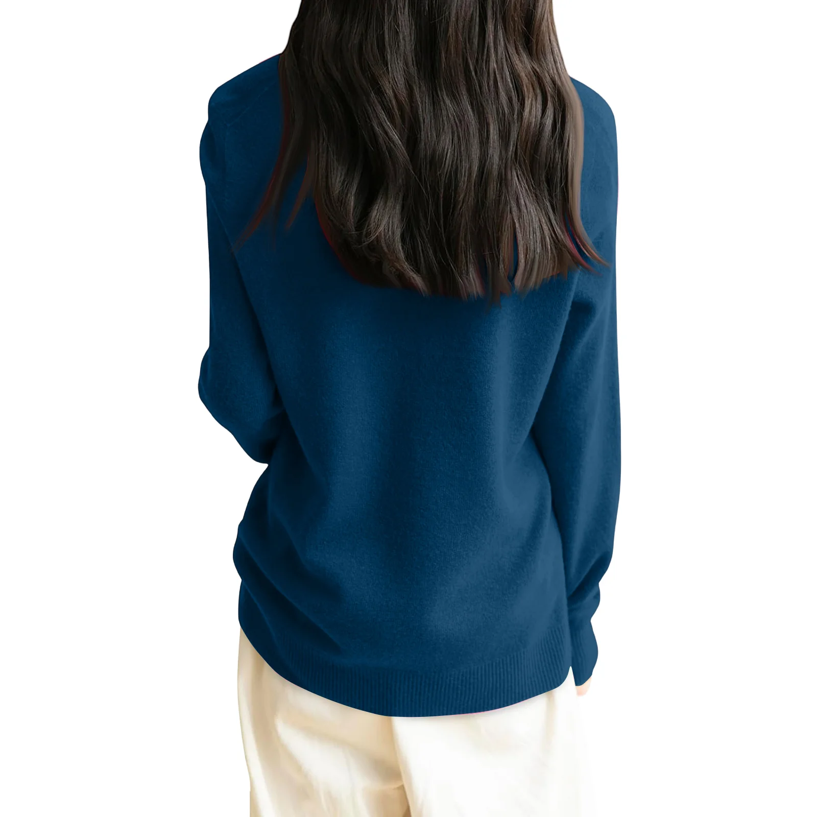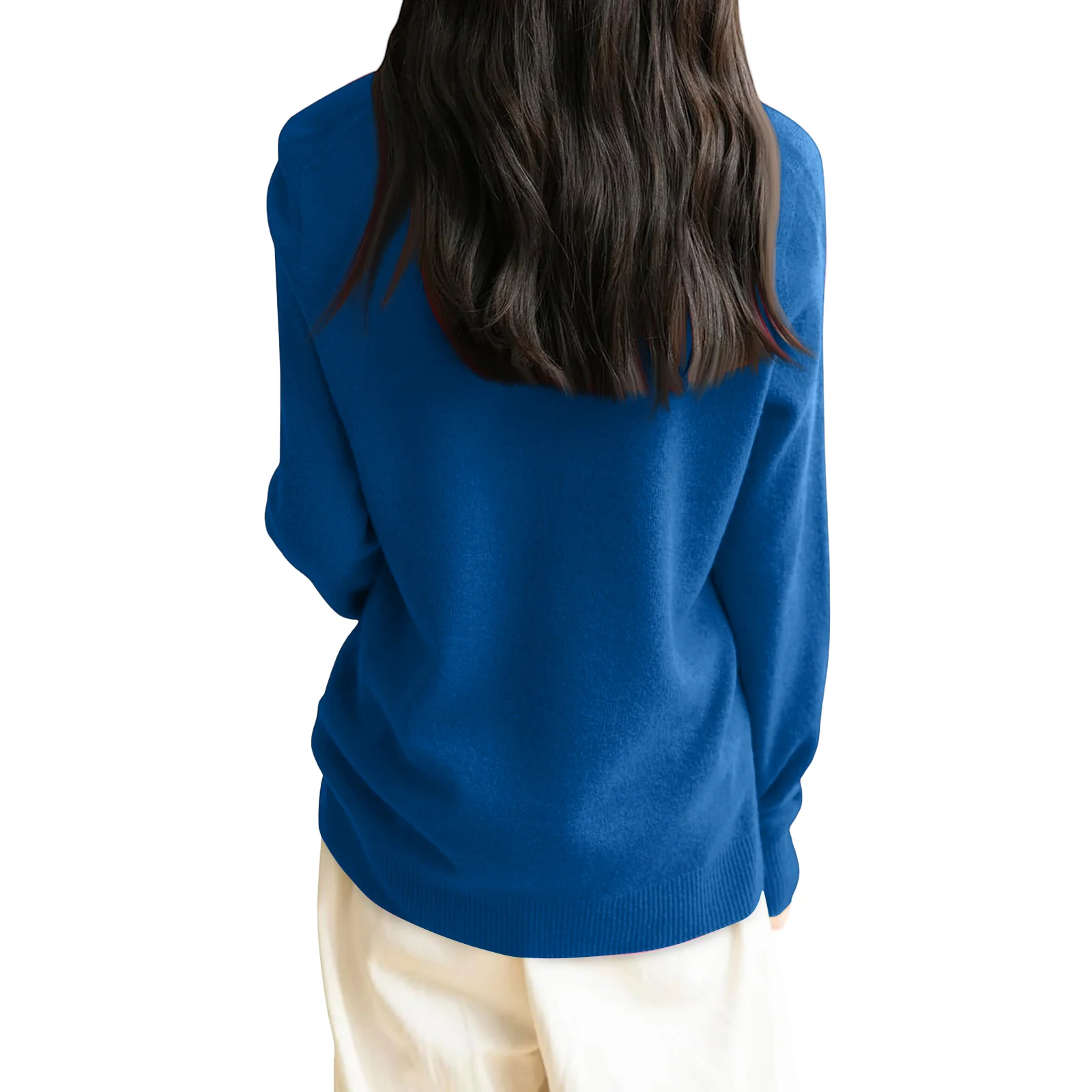Women's Fashion Flat-Knit V-Neck Pullover Sweater Solid Color Long-Sleeve Top
