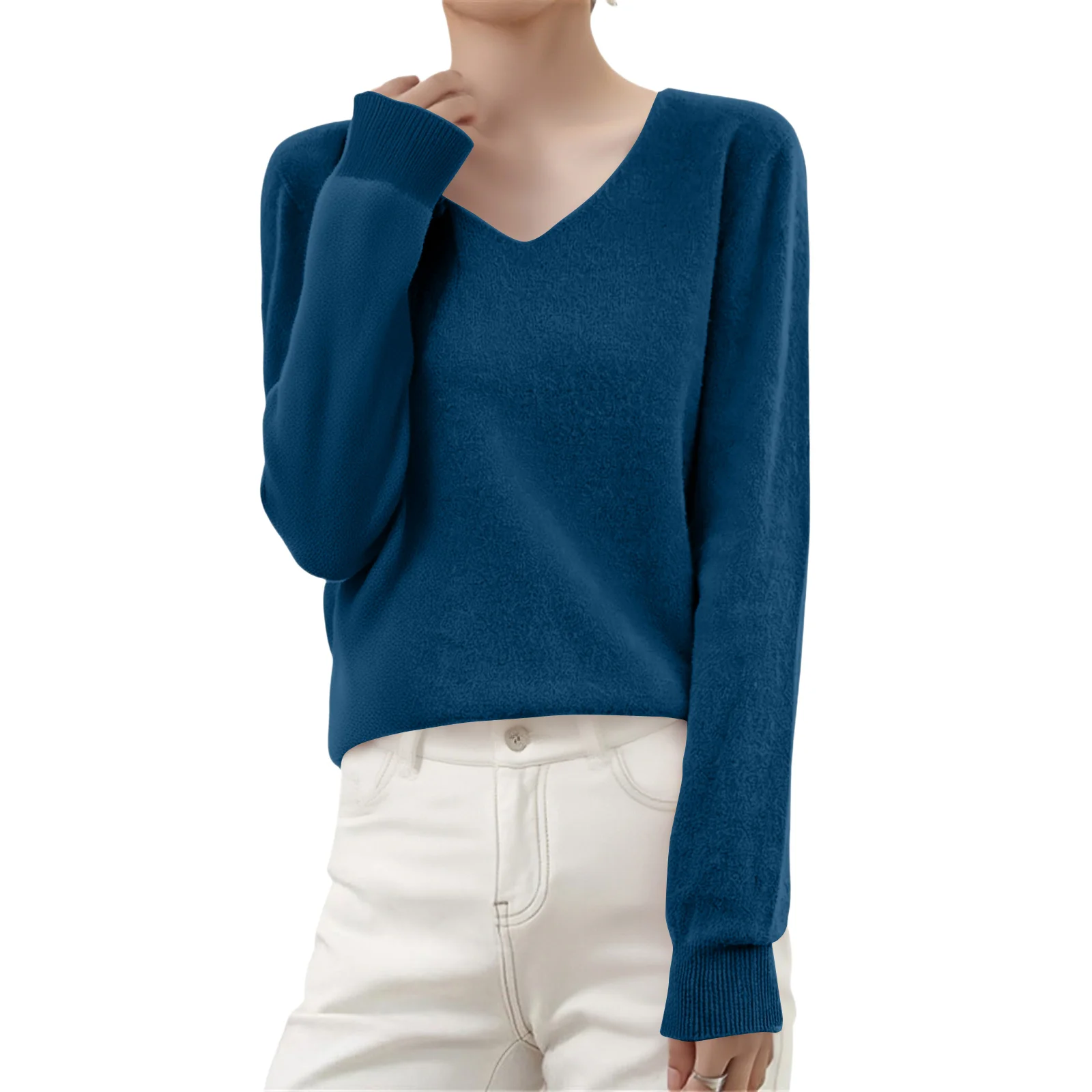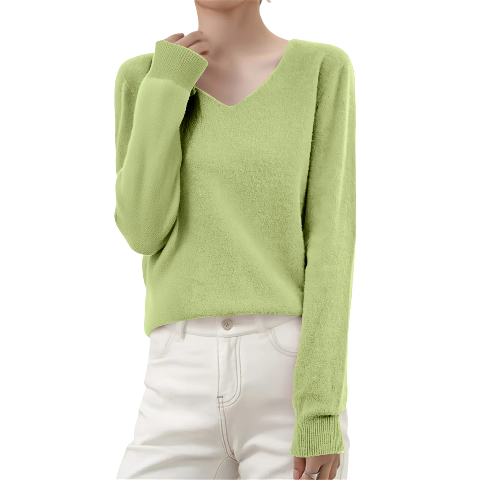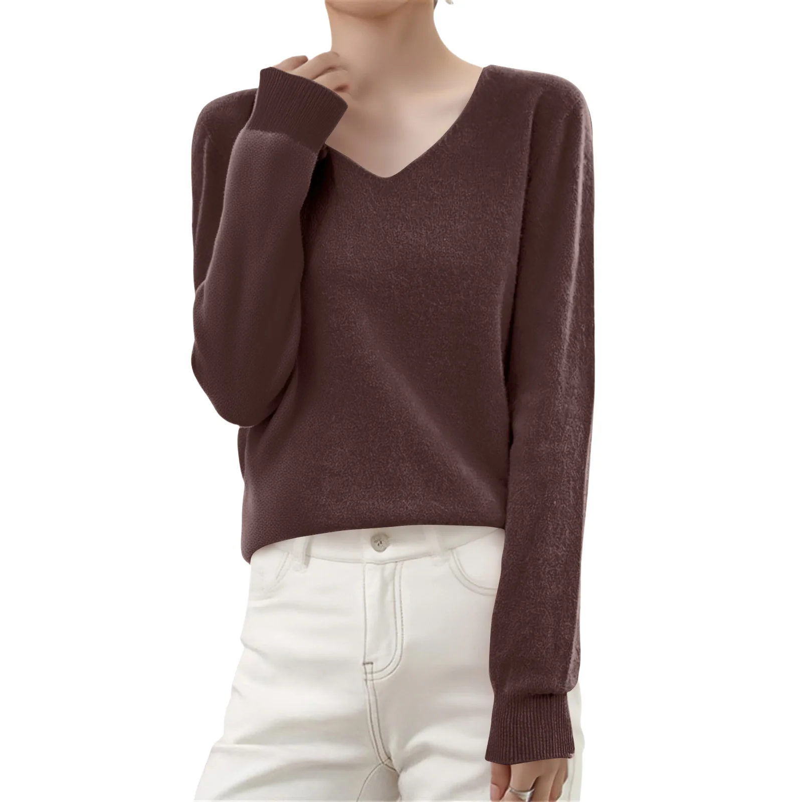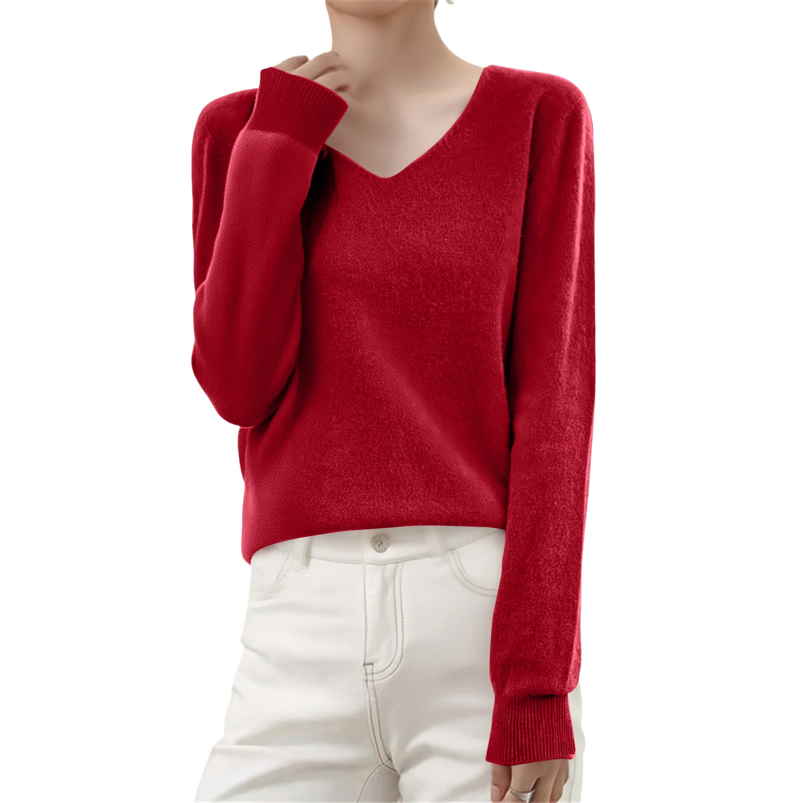 Women'S Fashion Flat-Knit V-Neck Pullover Sweater Solid Color Long-Sleeve Top Pulls Femmes Woman Clothes Sweater For Woman
