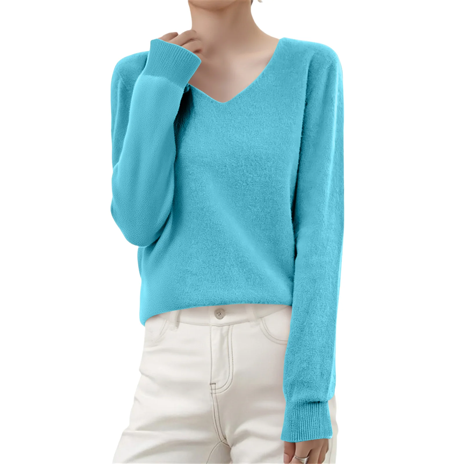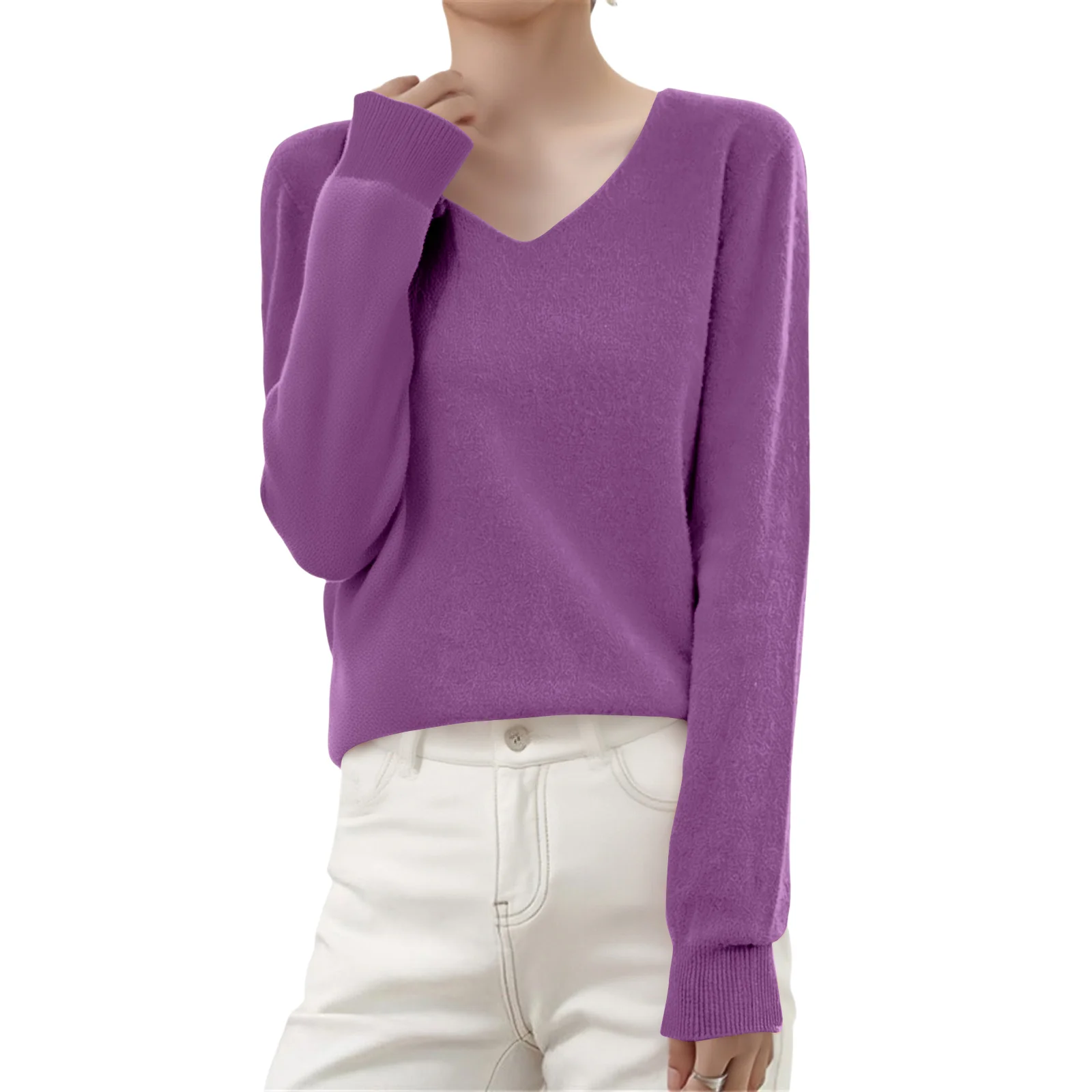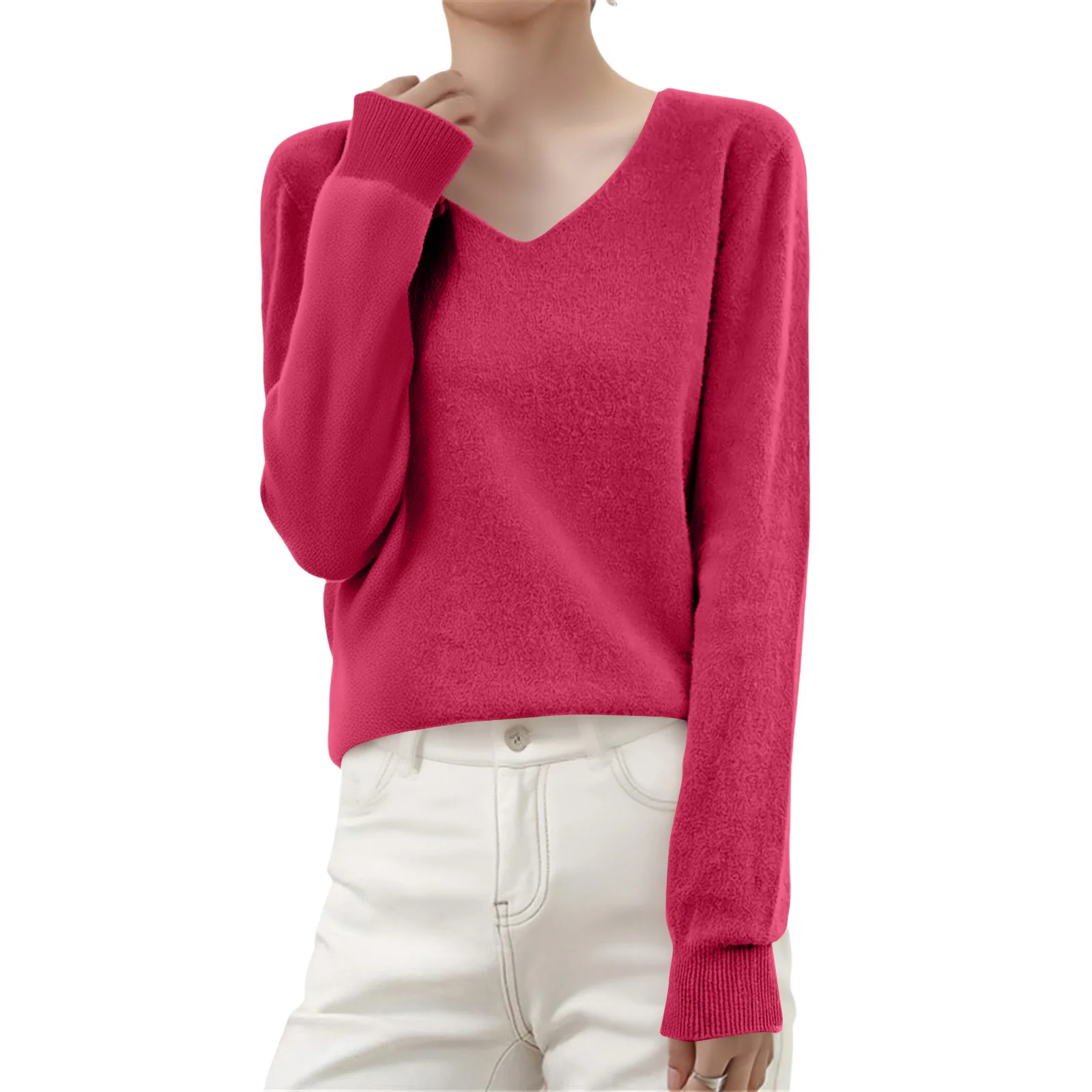 Women'S Fashion Flat-Knit V-Neck Pullover Sweater Solid Color Long-Sleeve Top Pulls Femmes Woman Clothes Sweater For Woman