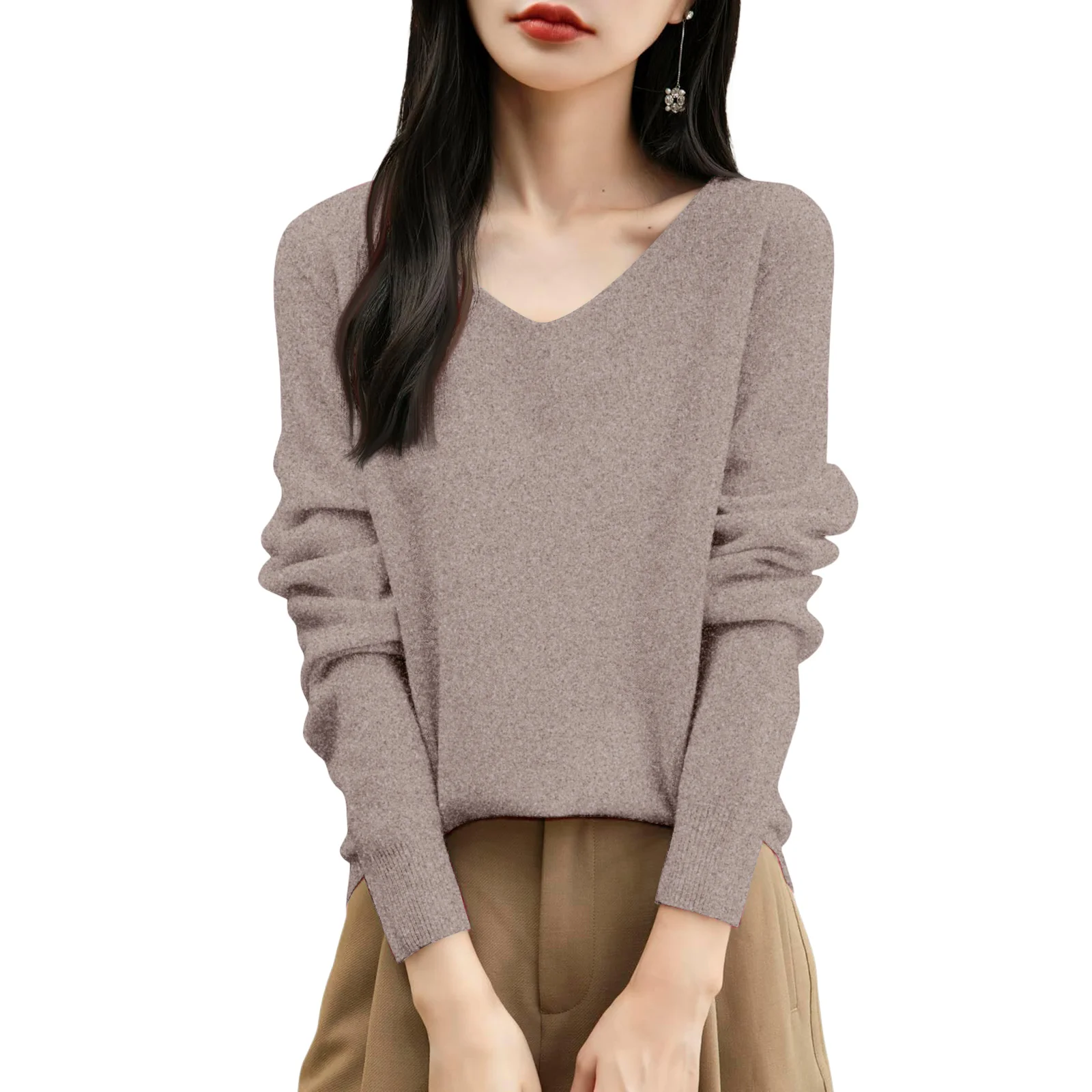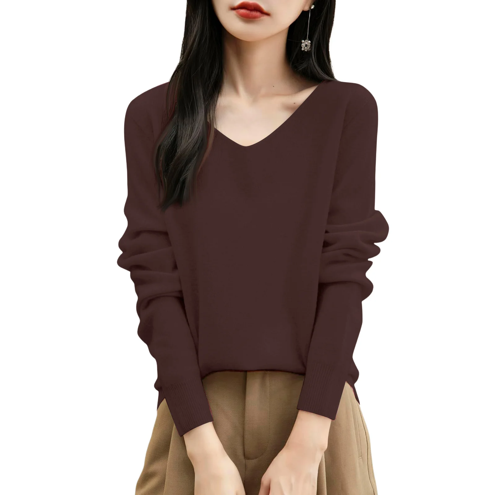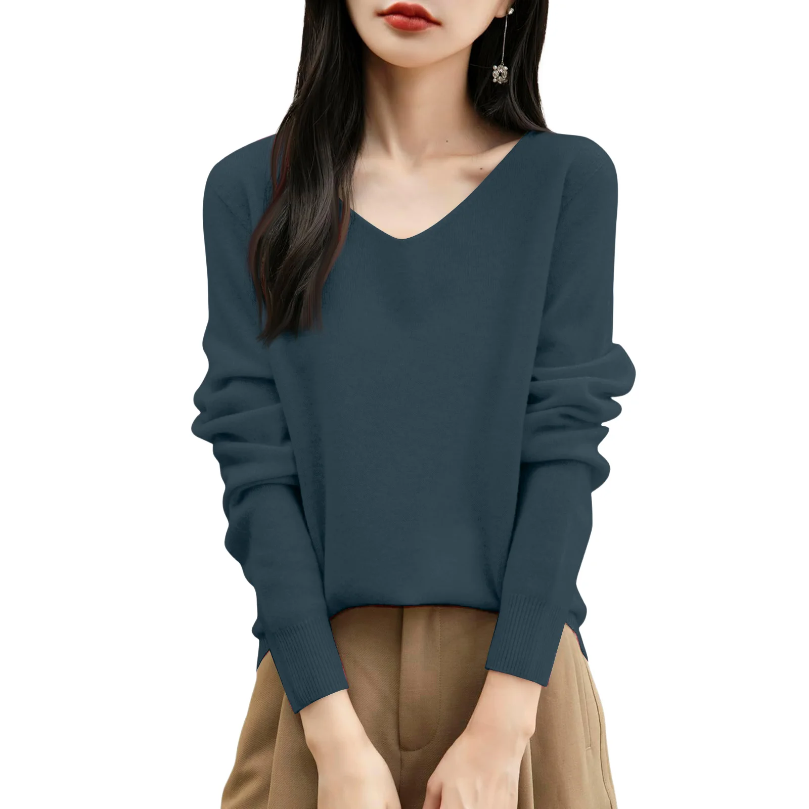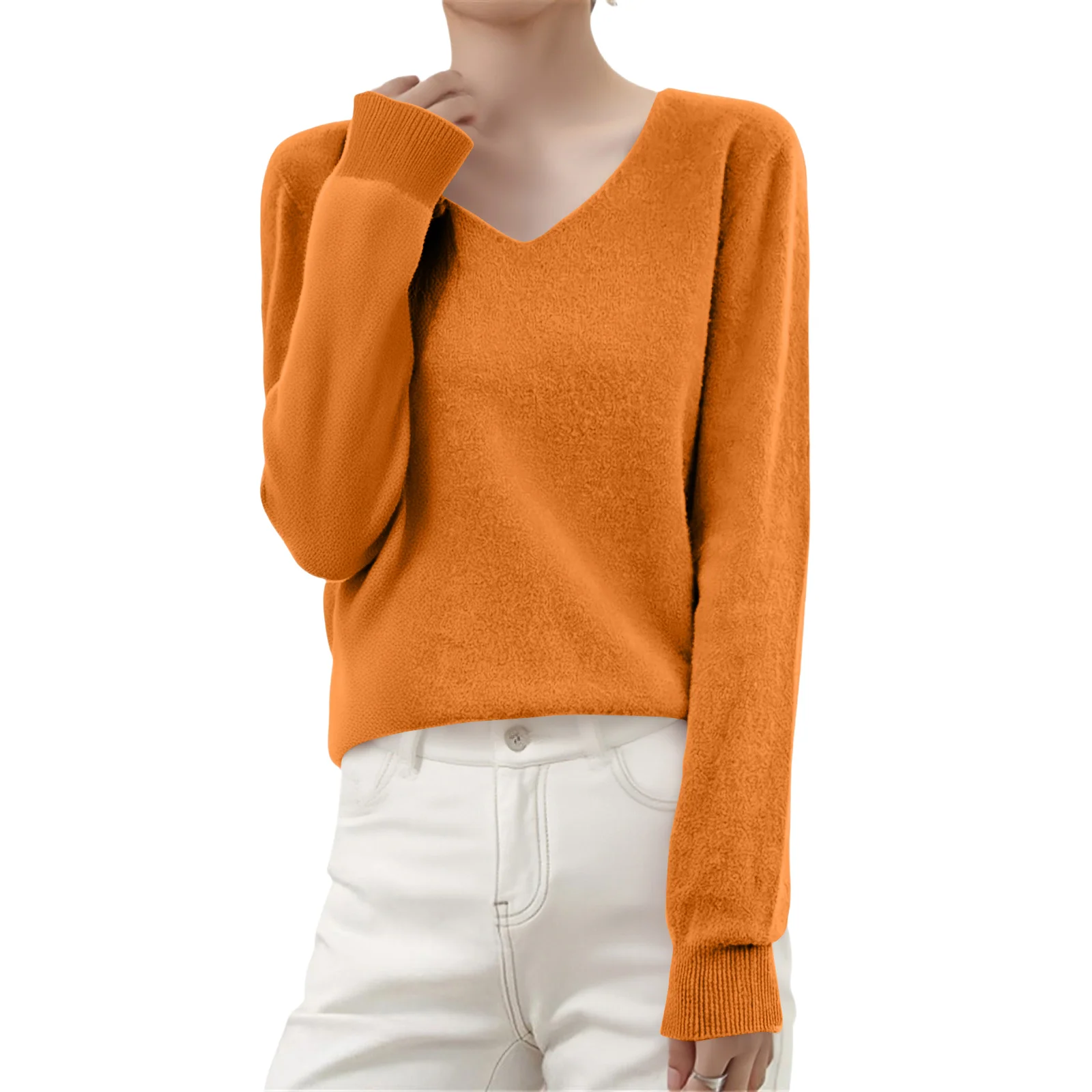 Women'S Fashion Flat-Knit V-Neck Pullover Sweater Solid Color Long-Sleeve Top Pulls Femmes Woman Clothes Sweater For Woman